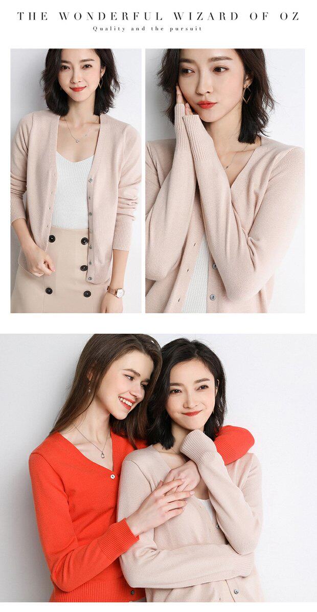 Осенний шерстяной кашемировый кардиган, рубашка, трикотажная куртка, короткий свитер, V-образный вырез