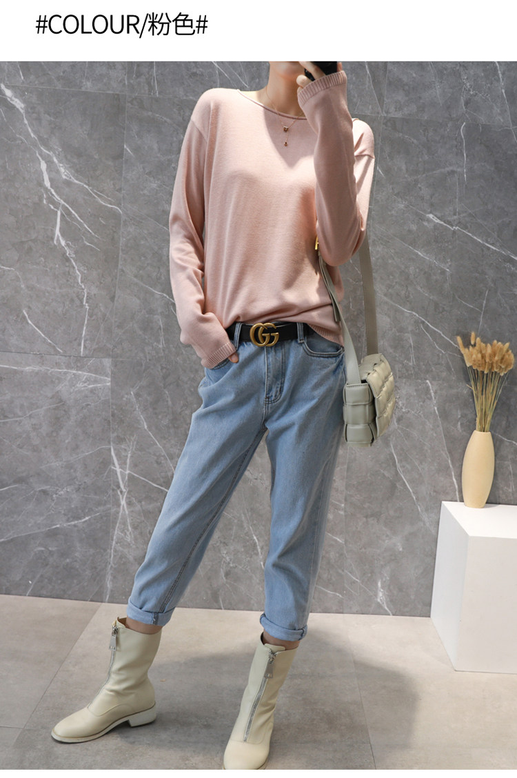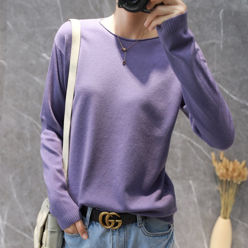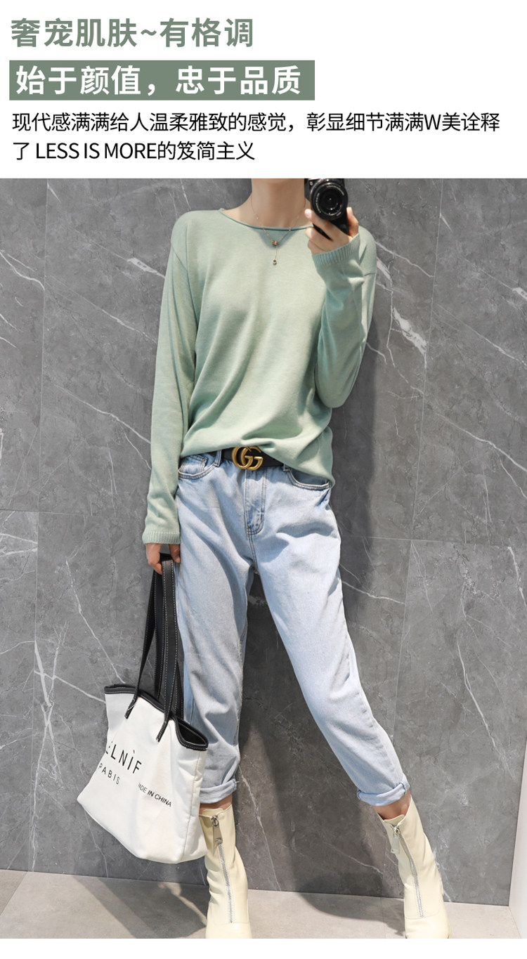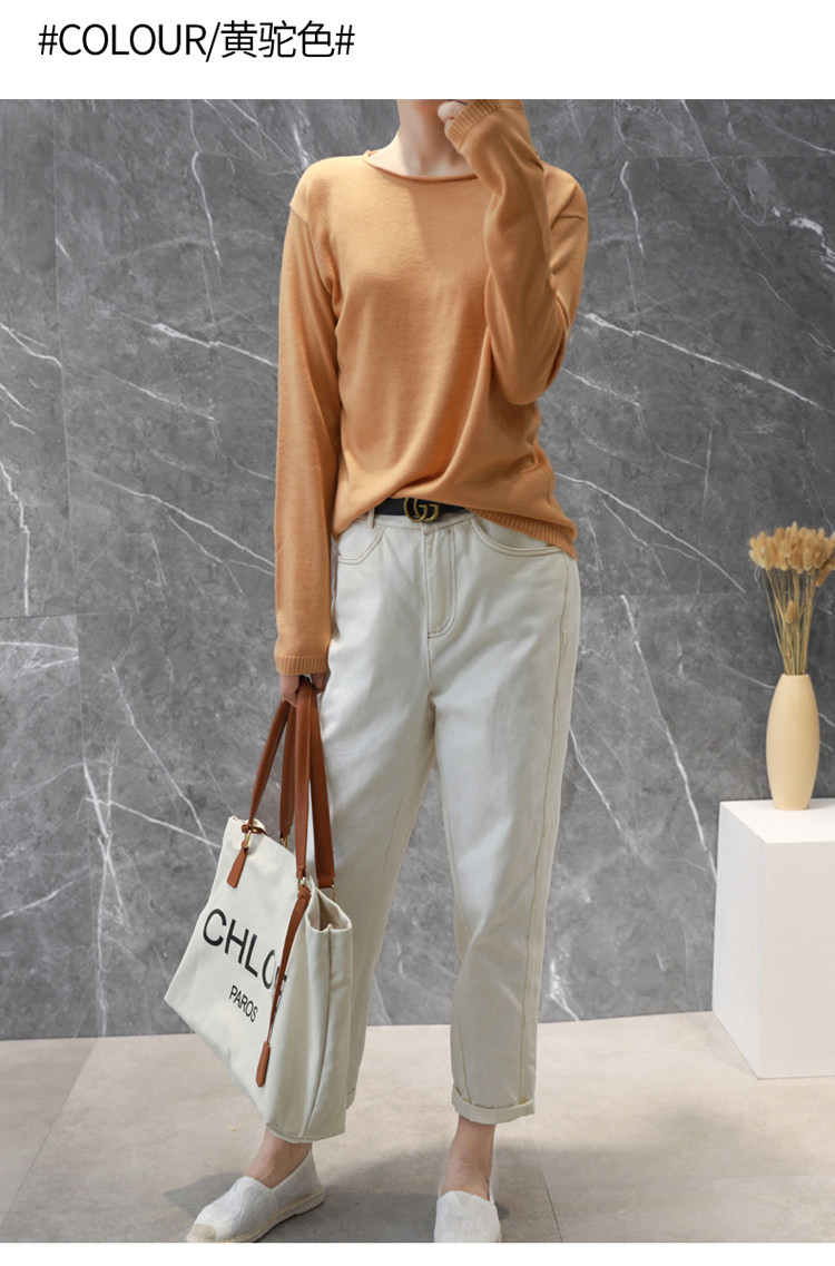 Демисезонный кашемировый короткий трикотажный свитер с круглым воротником, облегающий крой