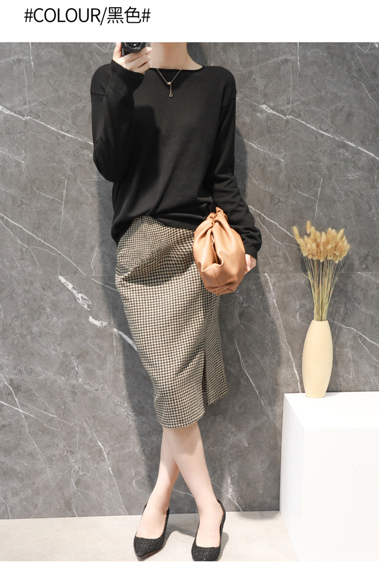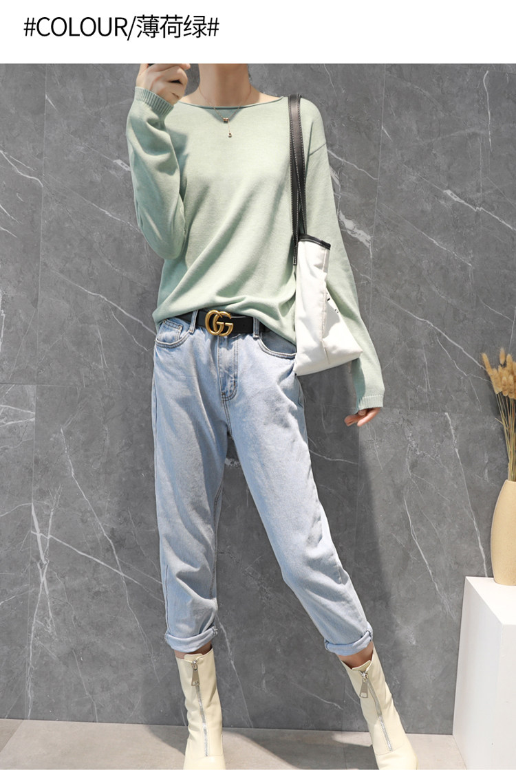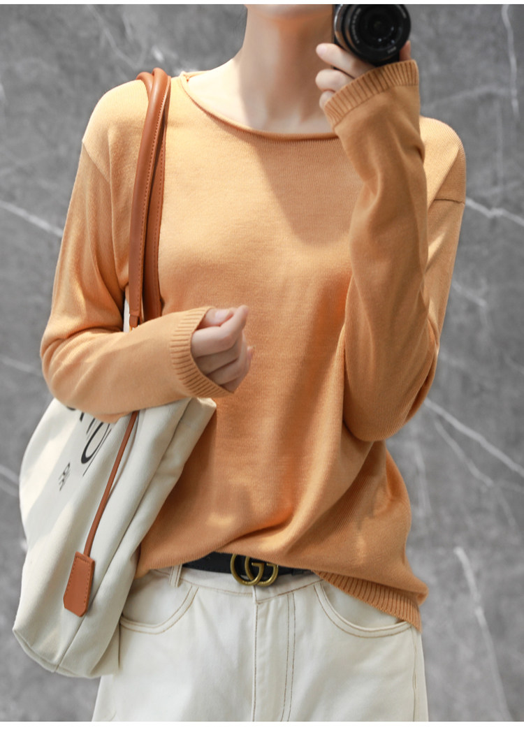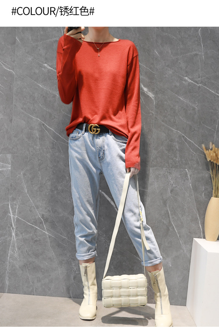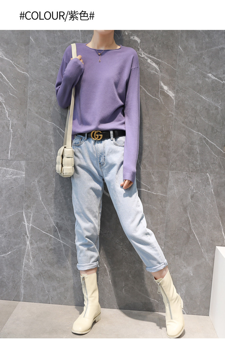 Демисезонный кашемировый короткий трикотажный свитер с круглым воротником, облегающий крой