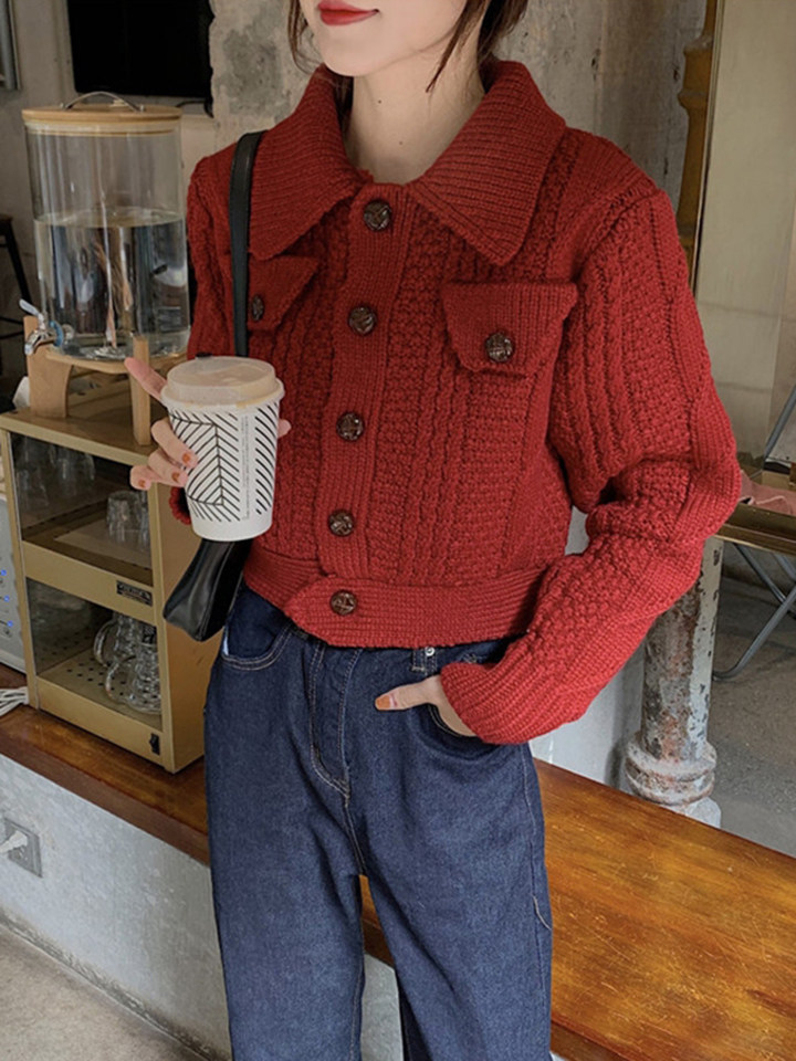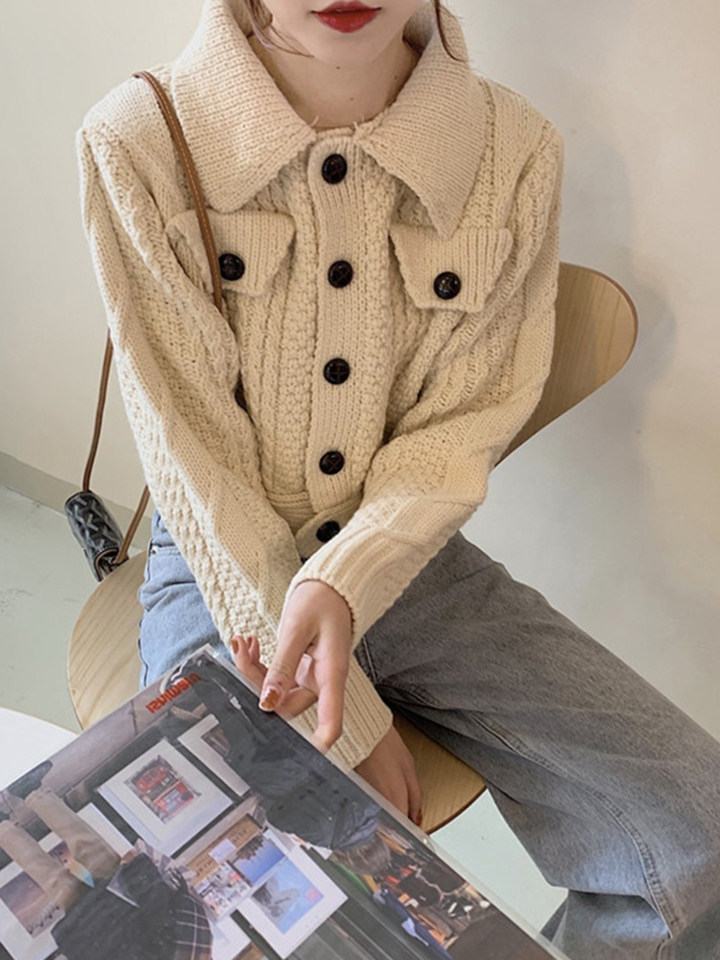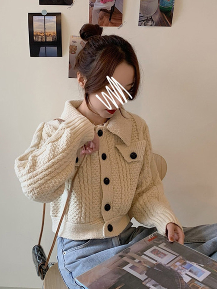 Демисезонный свитер, ретро короткий трикотажный кардиган, куртка, оверсайз, увеличенная толщина