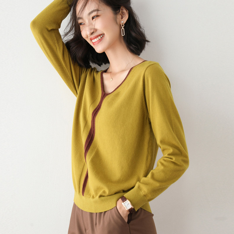 Осенний кашемировый шерстяной трикотажный свитер, оверсайз, V-образный вырез, большой размер