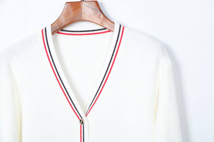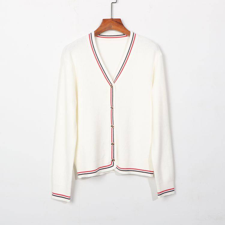 Осенний трикотажный свитер, кардиган, белая куртка, V-образный вырез, в западном стиле
