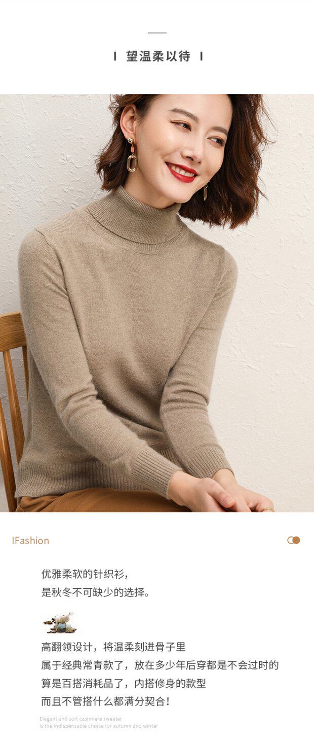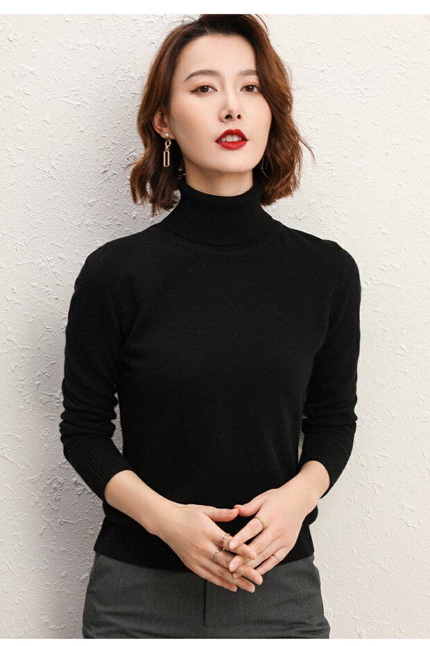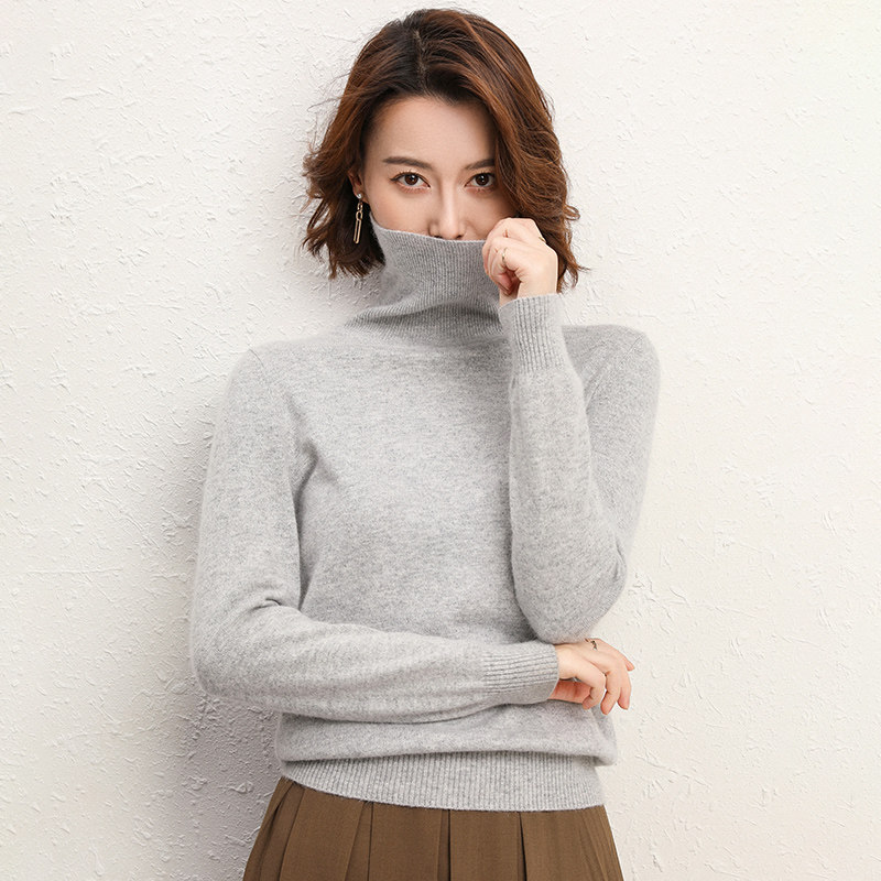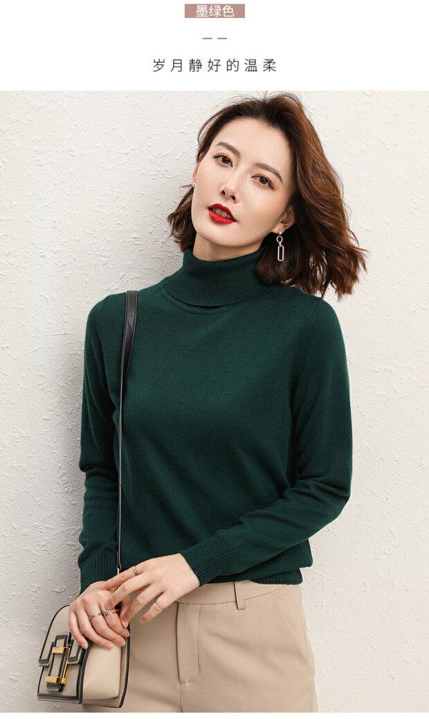 Осенний кашемировый шерстяной базовый трикотажный свитер, облегающий крой