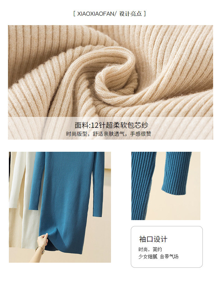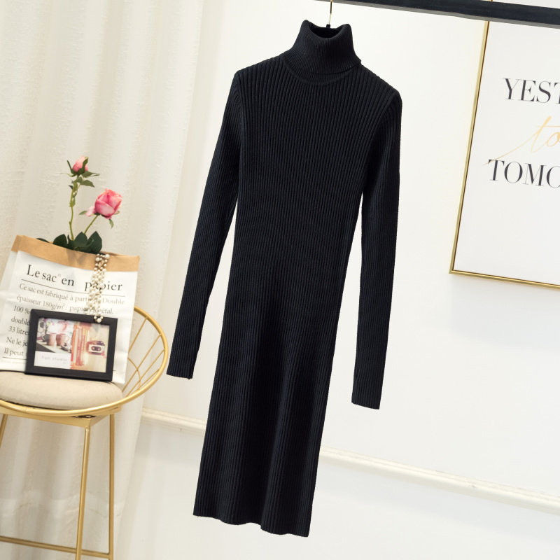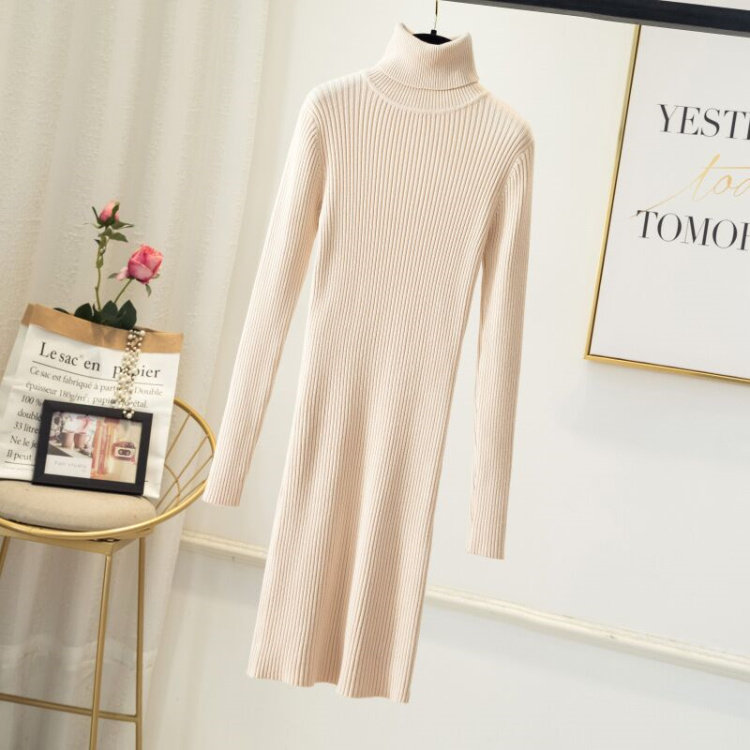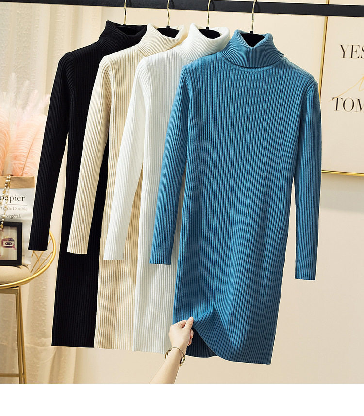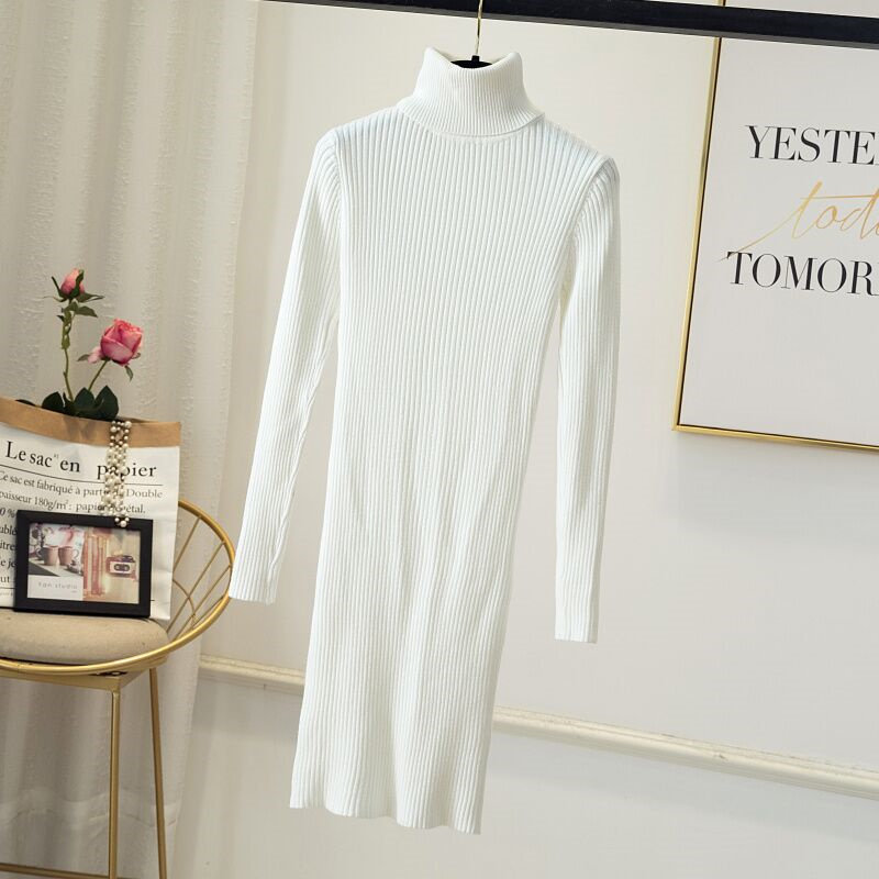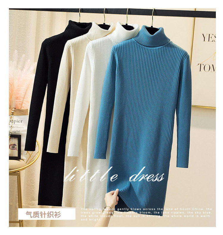 Демисезонный свитер, длинный трикотажный лонгслив, платье, увеличенная толщина, средней длины, в обтяжку