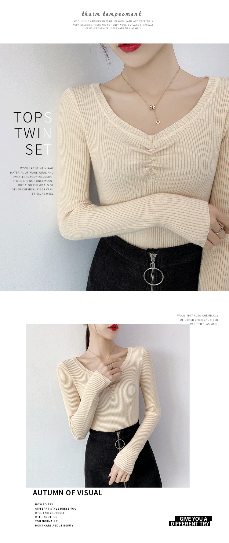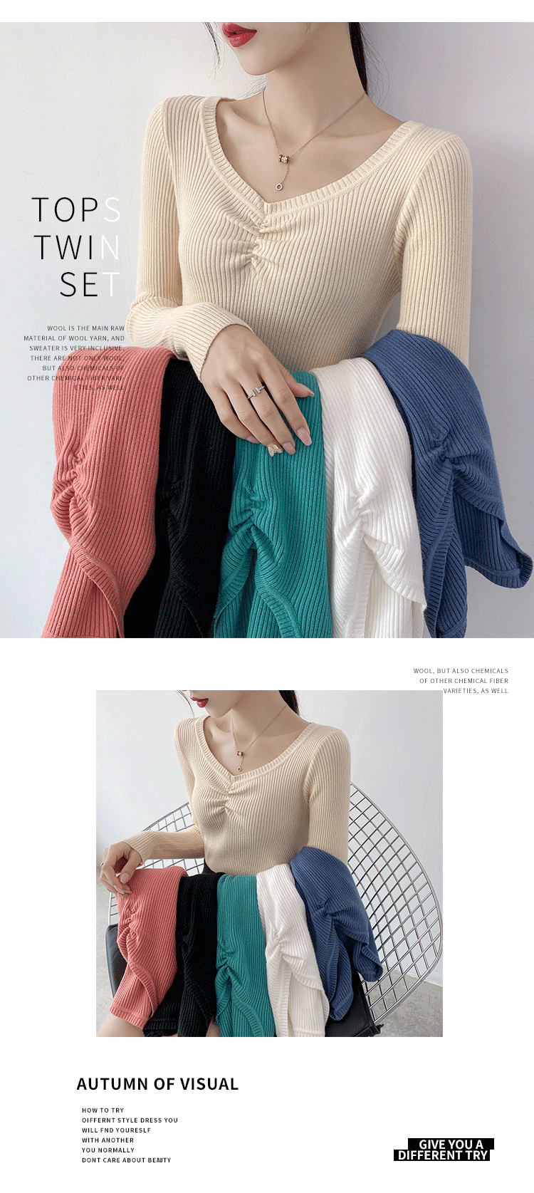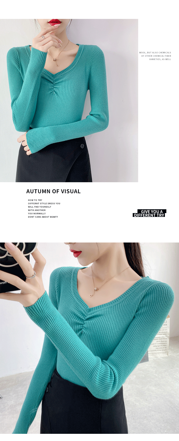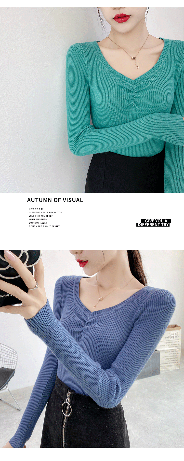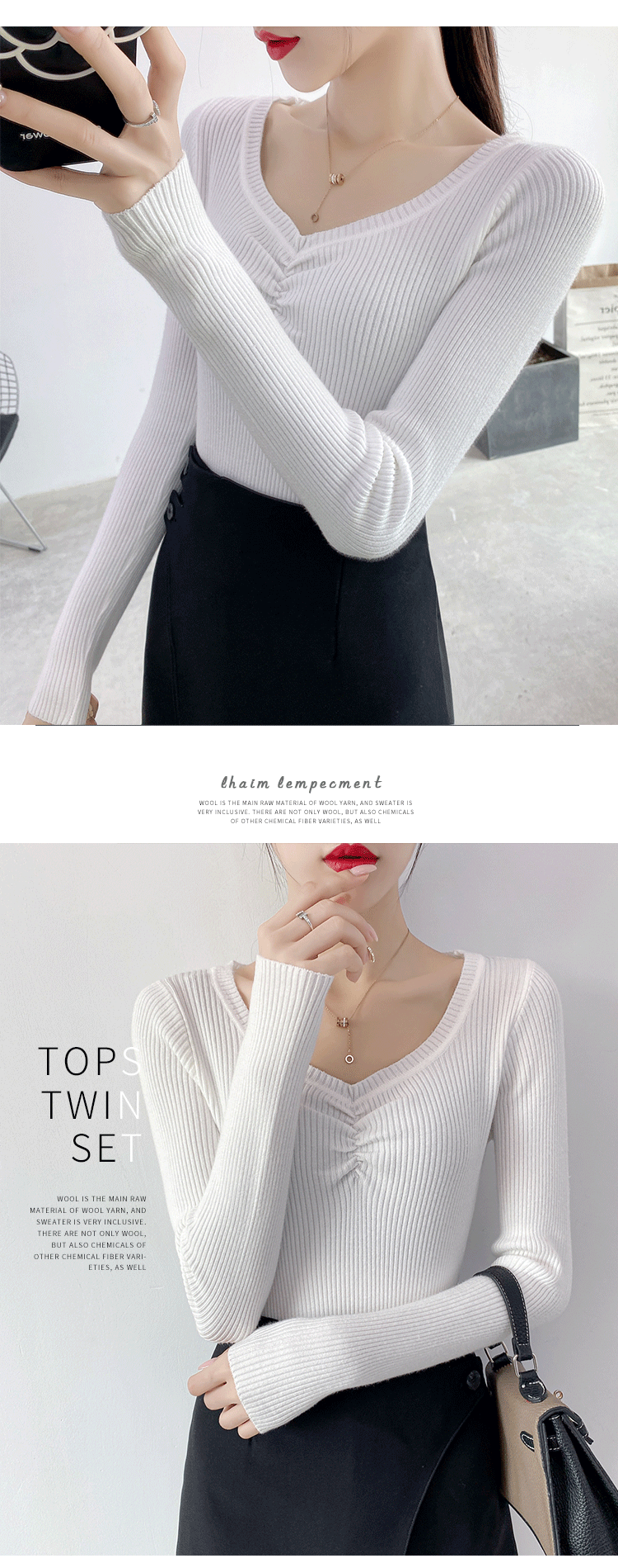 Демисезонный приталенный свитер, тонкий трикотажный короткий лонгслив, в обтяжку, V-образный вырез