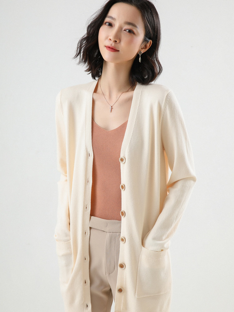 Осенний кардиган, шерстяная куртка, трикотажная рубашка, 2020, средней длины, V-образный вырез, оверсайз