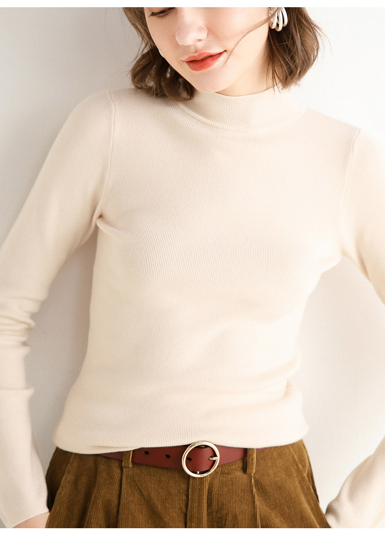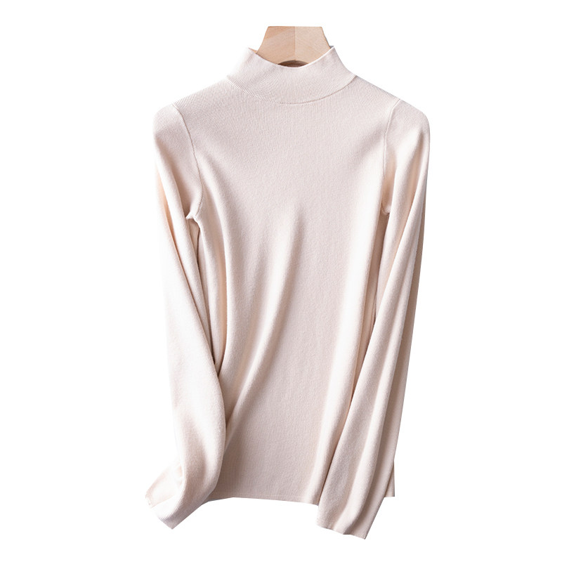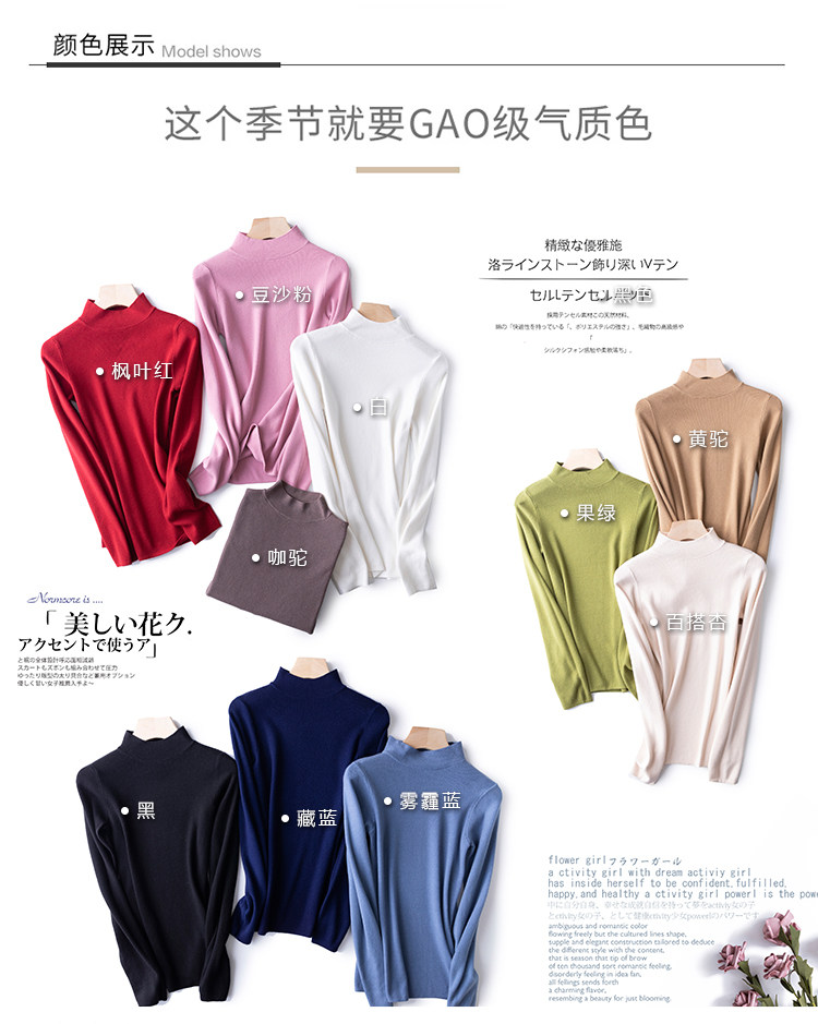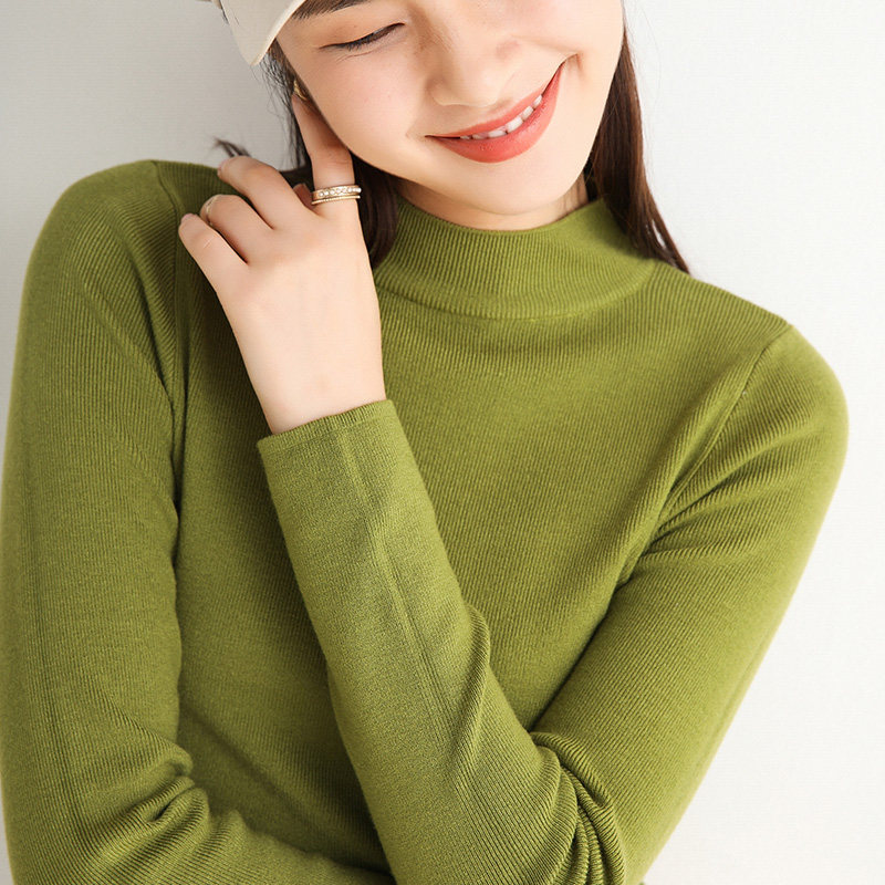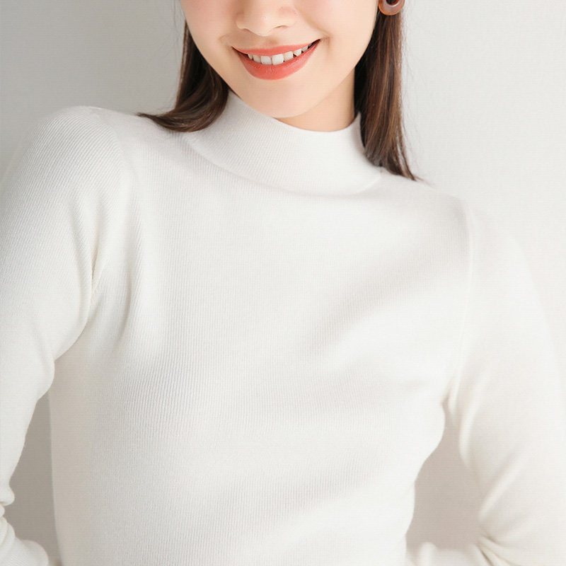 Шерстяной трикотажный свитер, демисезонный базовый приятный телу лонгслив, 2020, в корейском стиле, высокий воротник, в обтяжку, облегающий крой