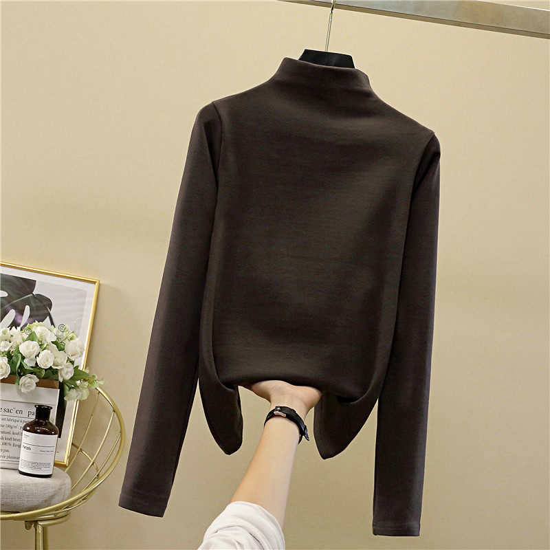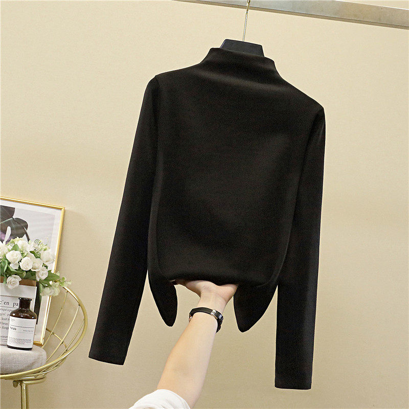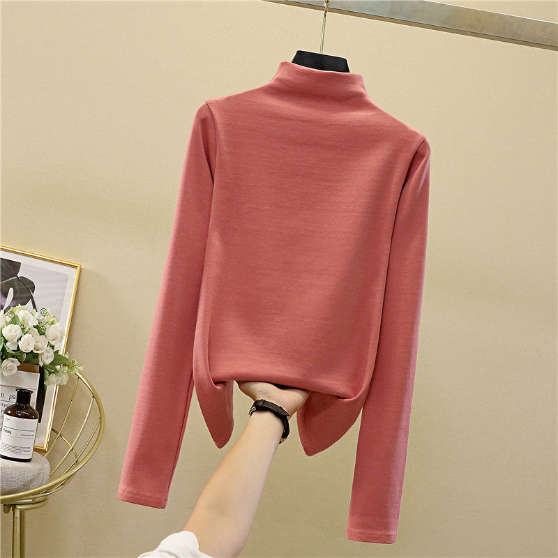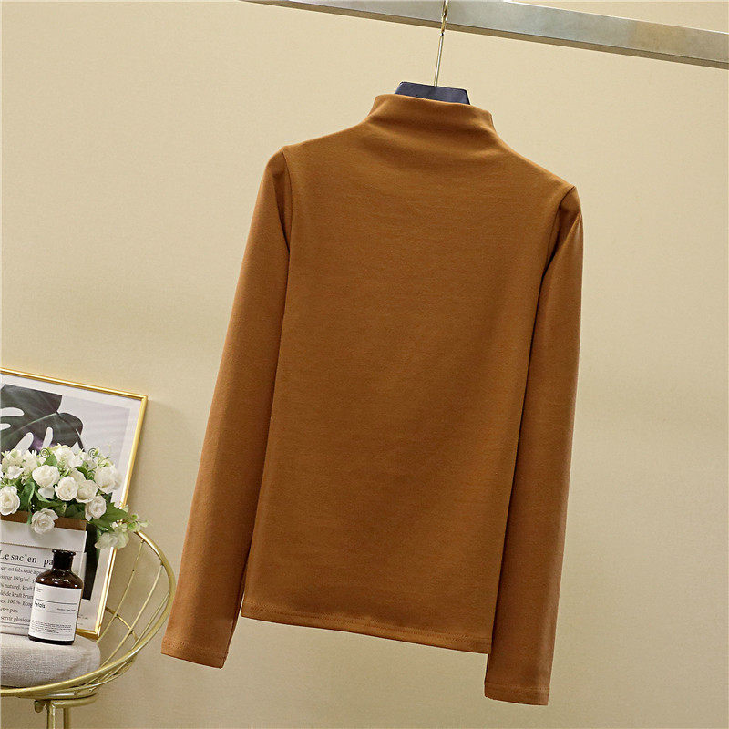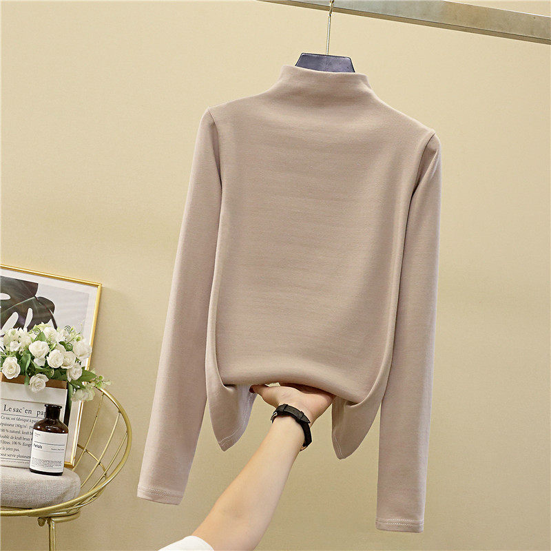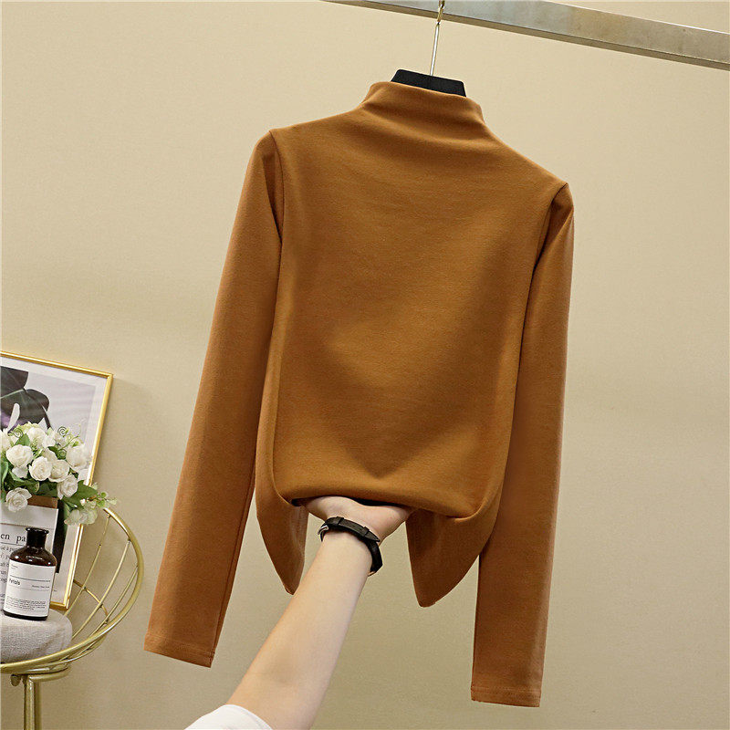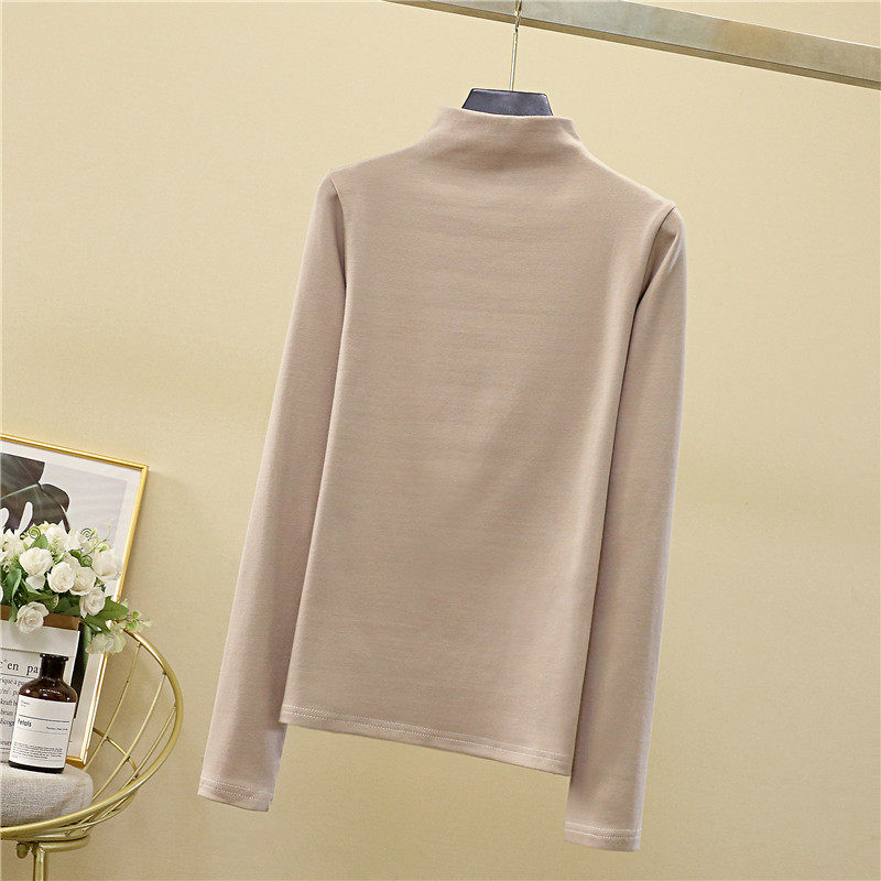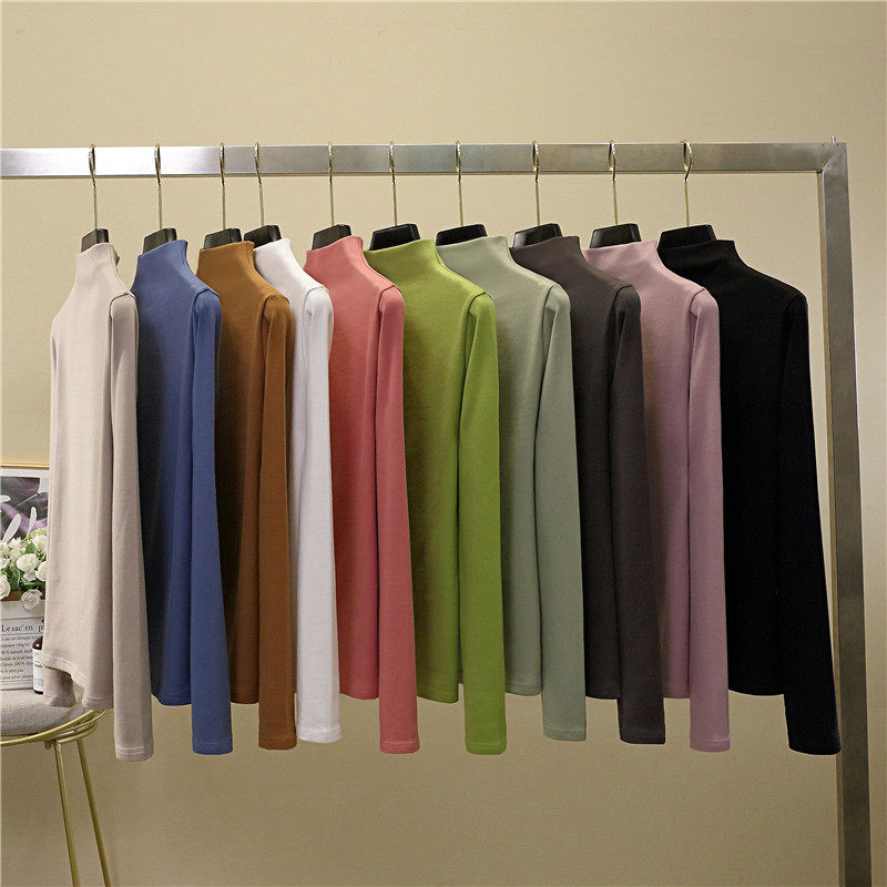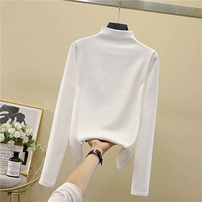Осенний демисезонный базовый приятный телу белый лонгслив, коллекция 2022, высокий воротник, в западном стиле