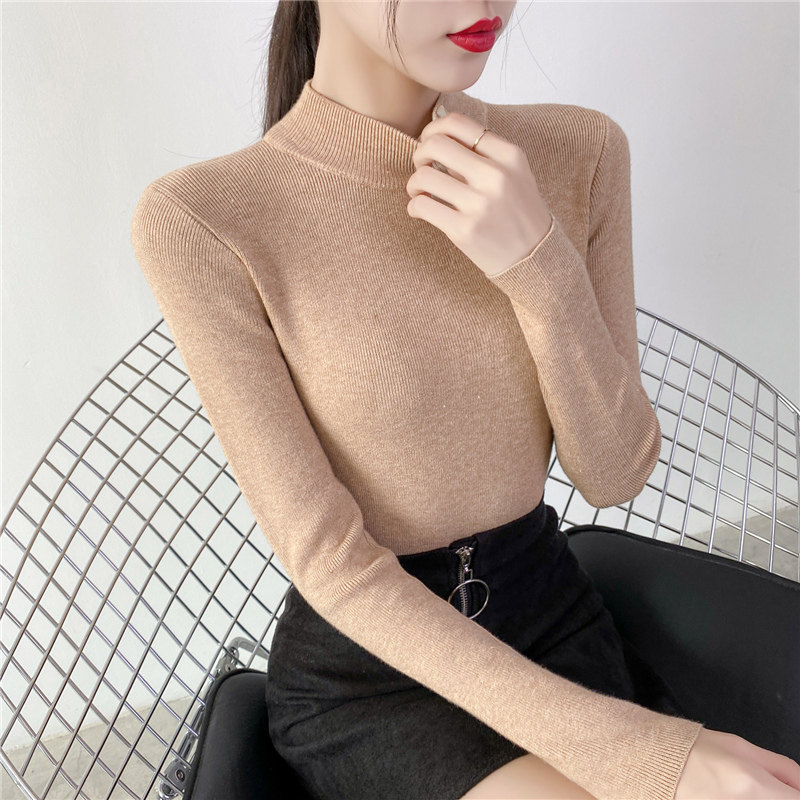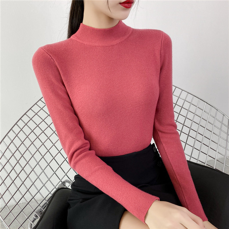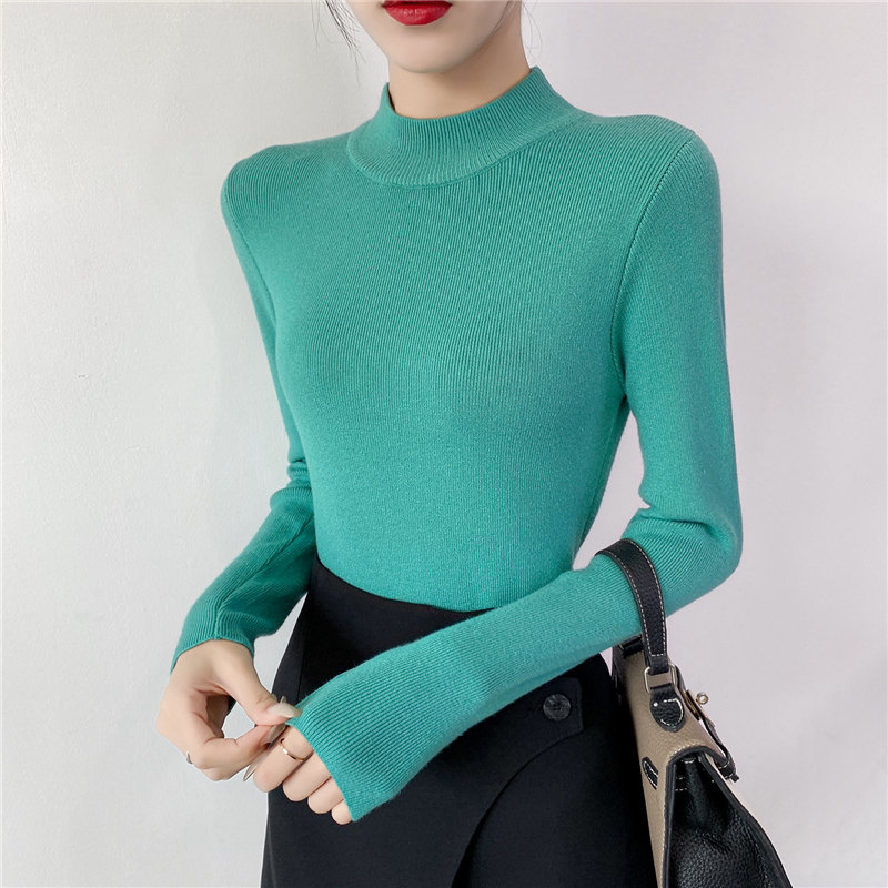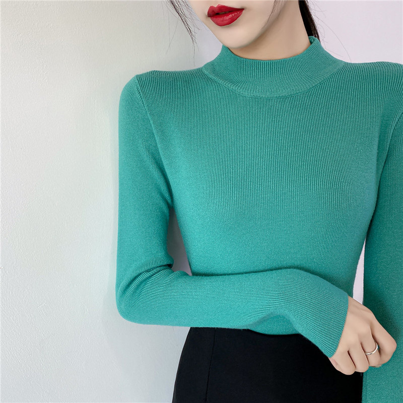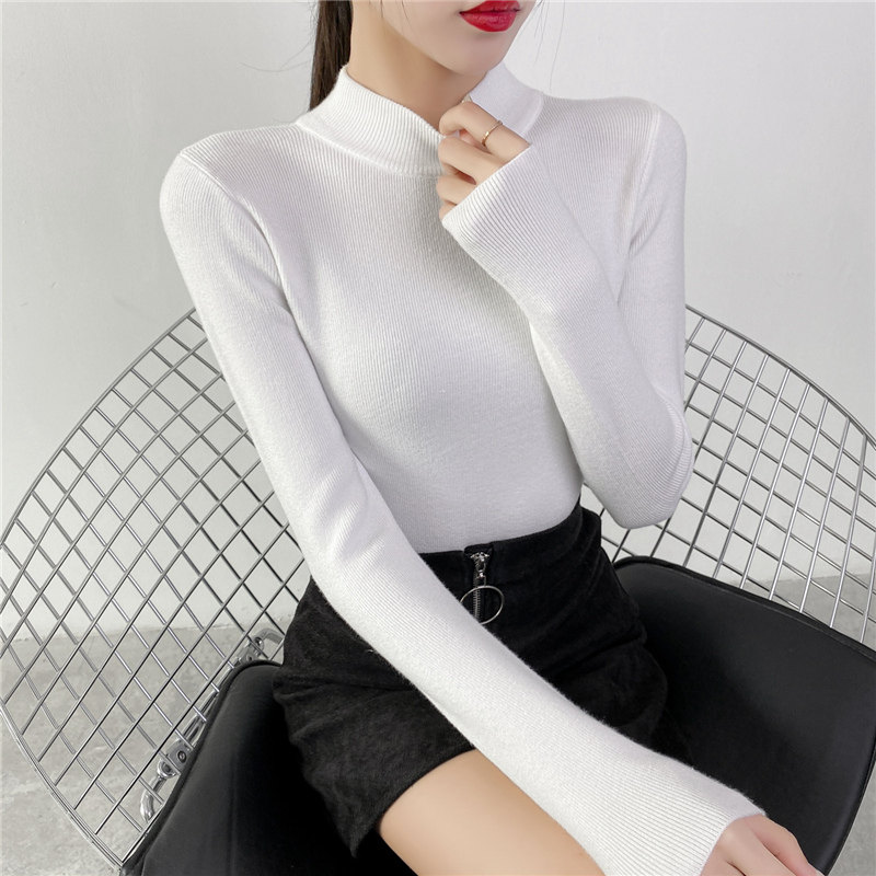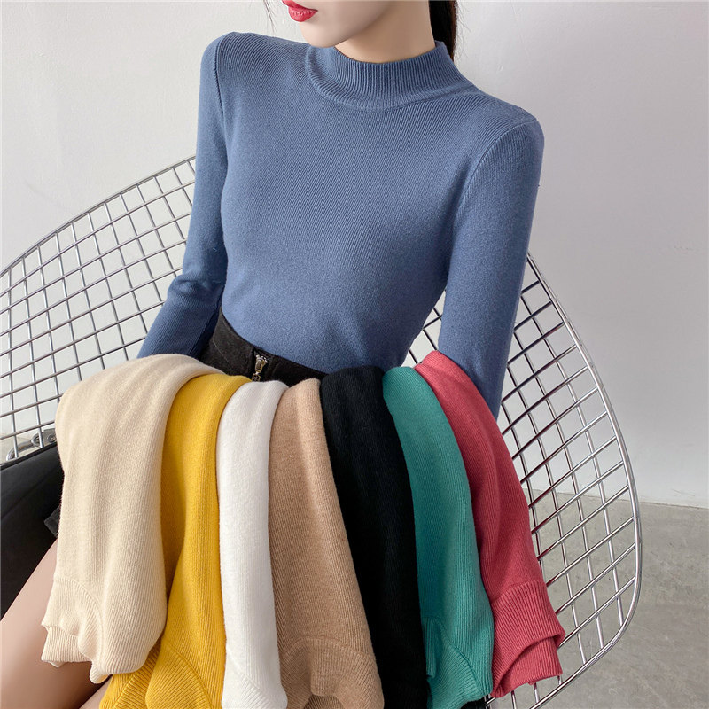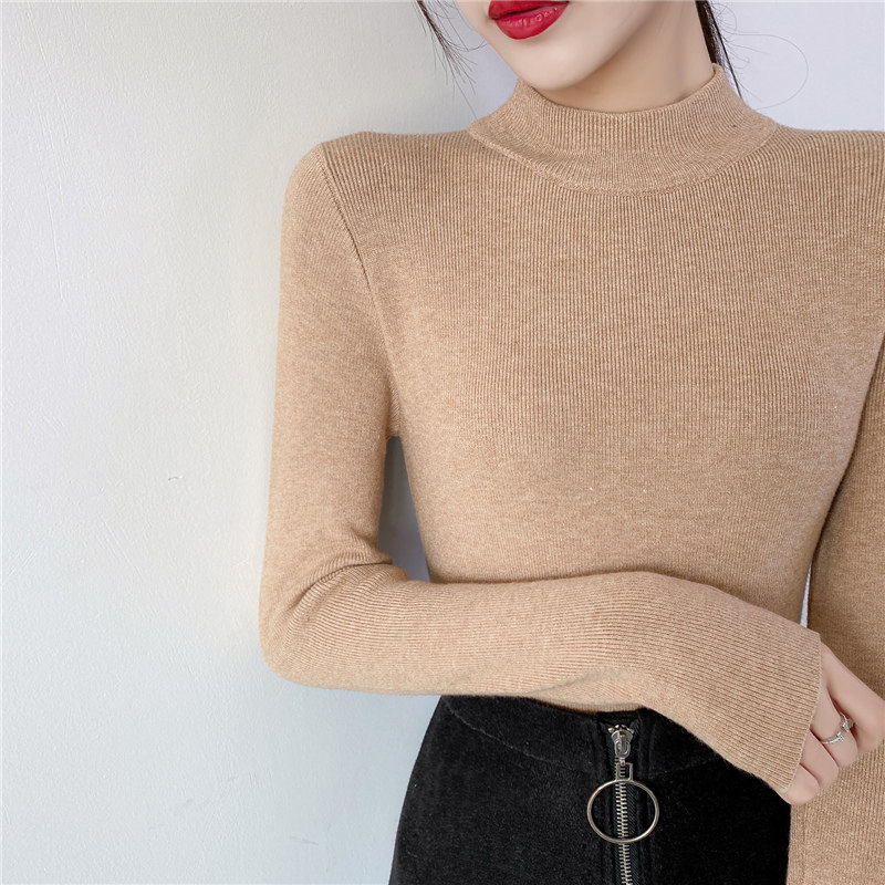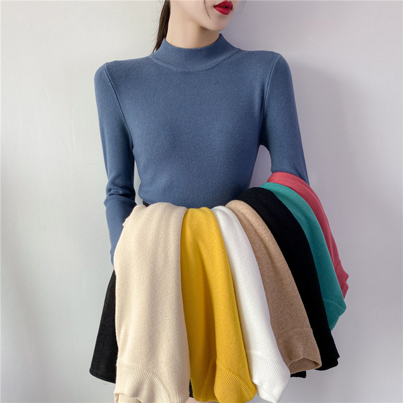 Осенний приталенный трикотажный лонгслив, базовый демисезонный свитер, 2020 года, высокий воротник