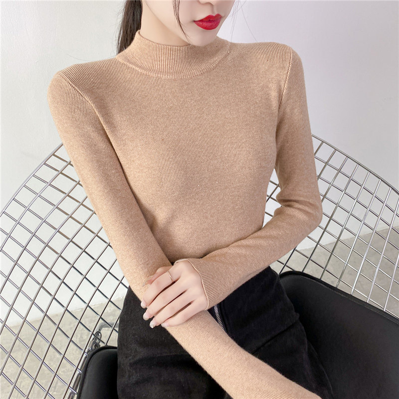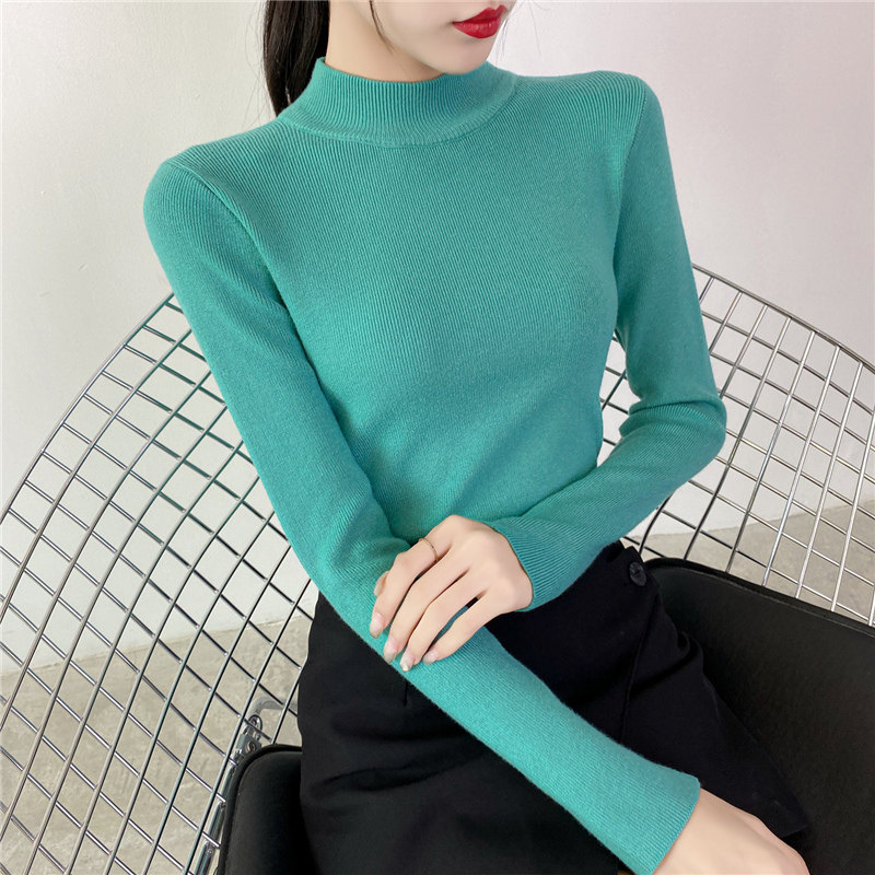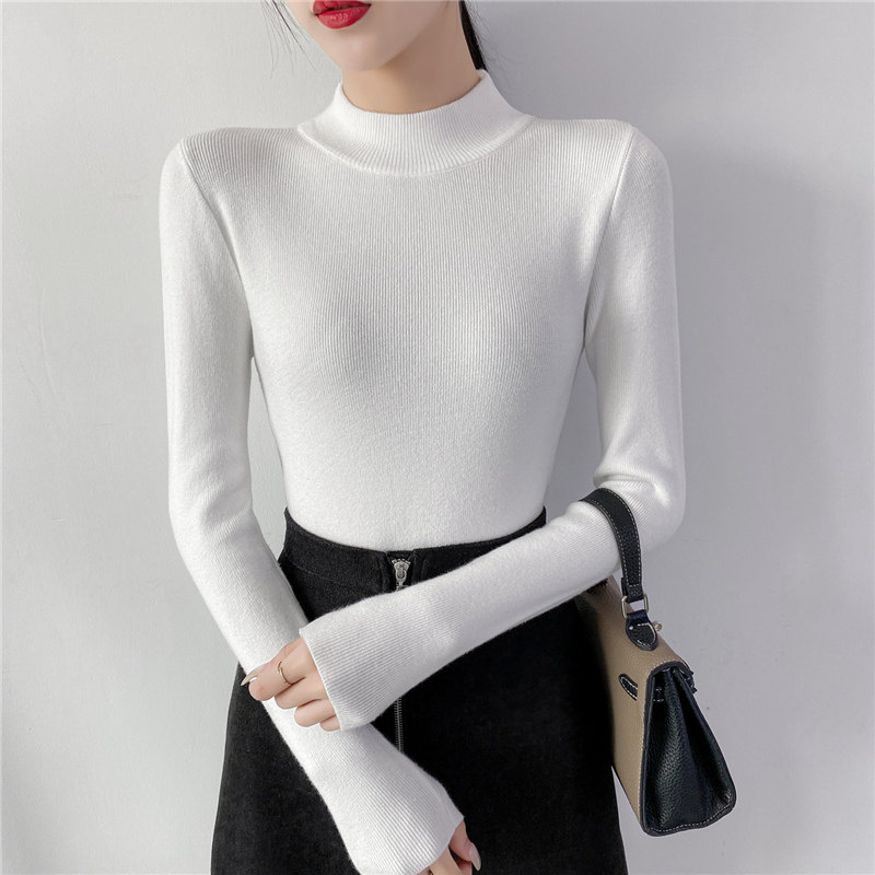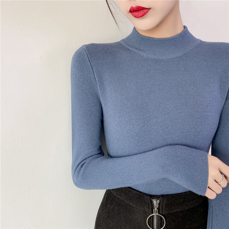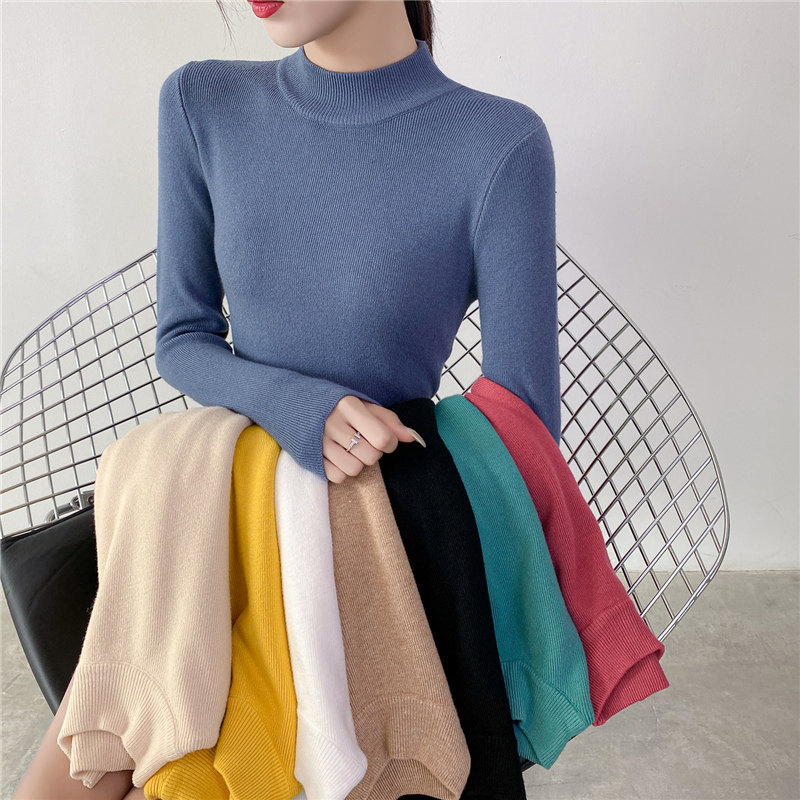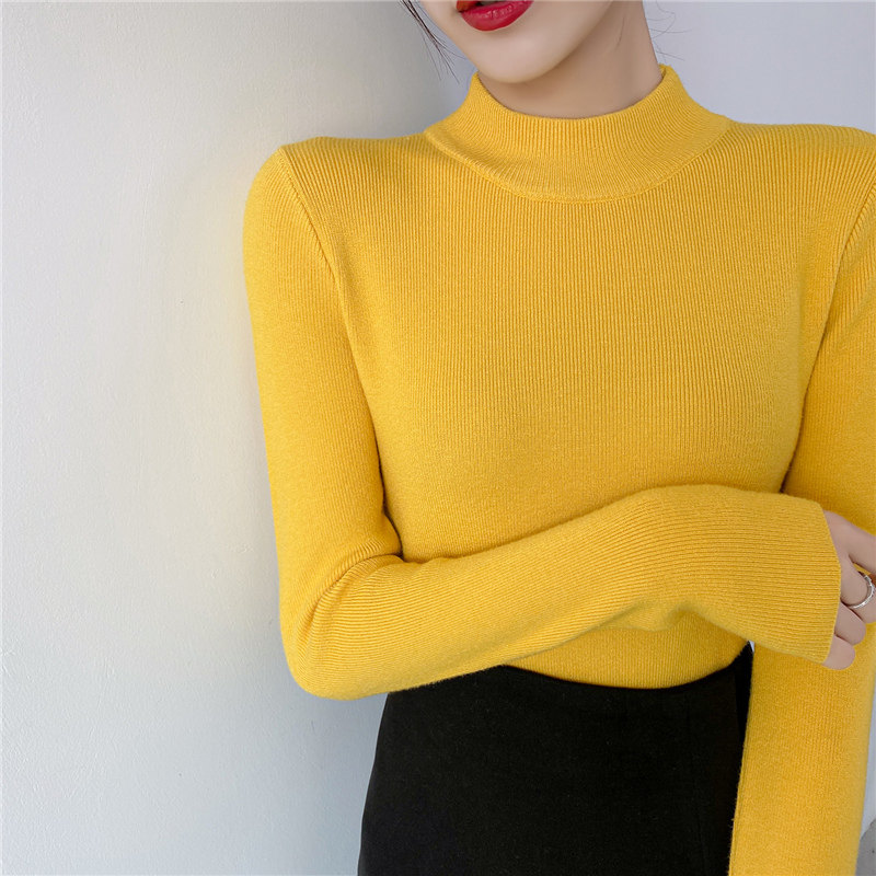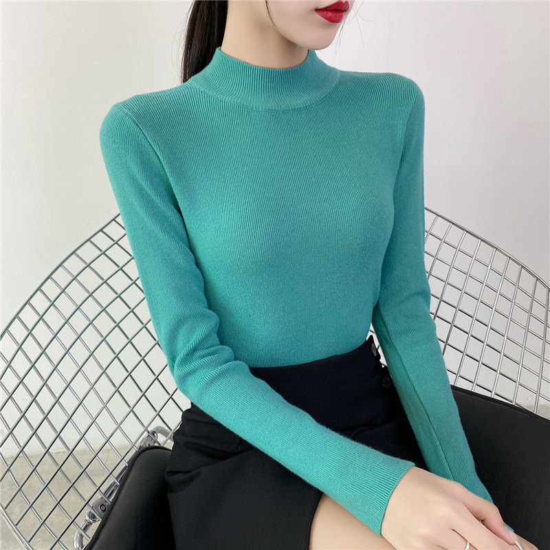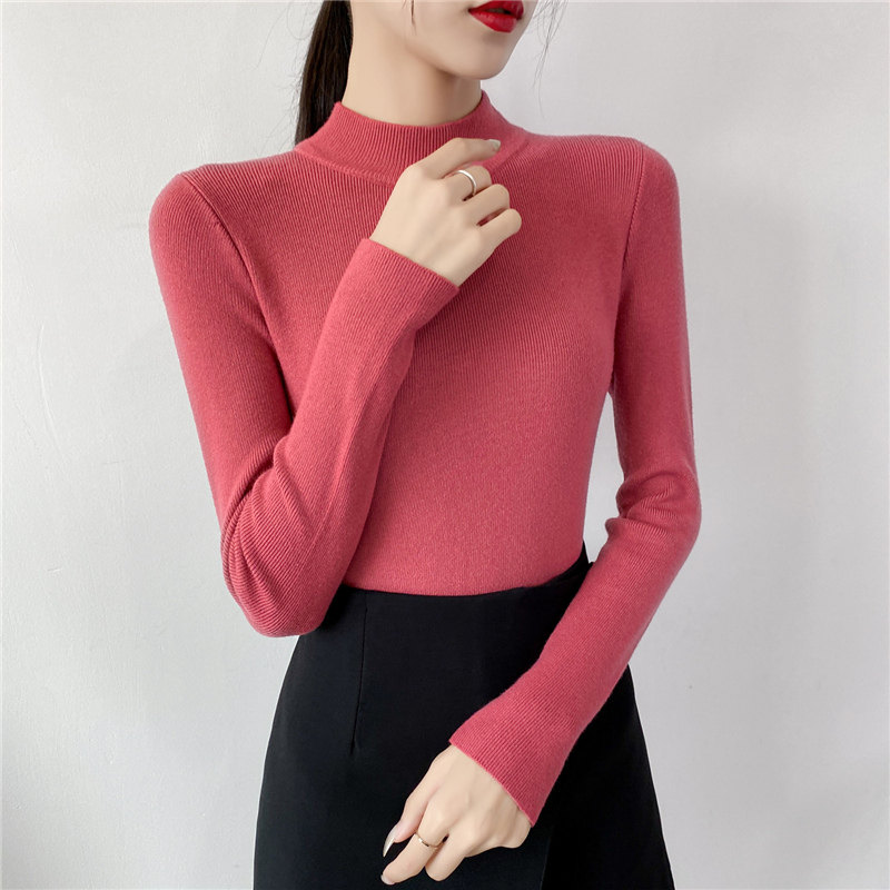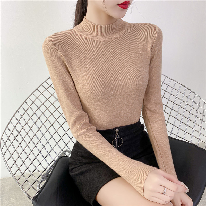 Осенний приталенный трикотажный лонгслив, базовый демисезонный свитер, 2020 года, высокий воротник