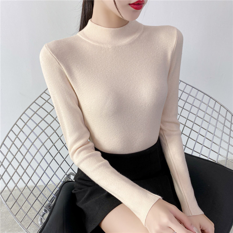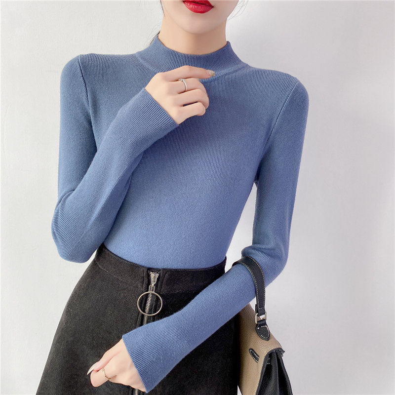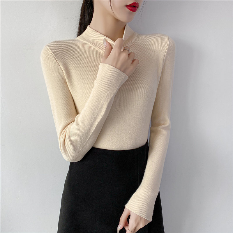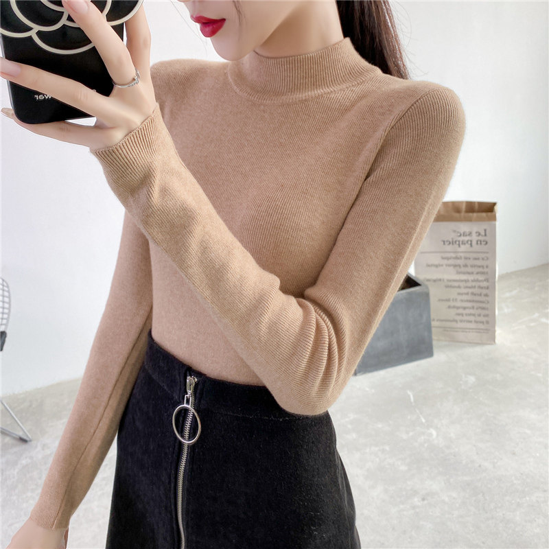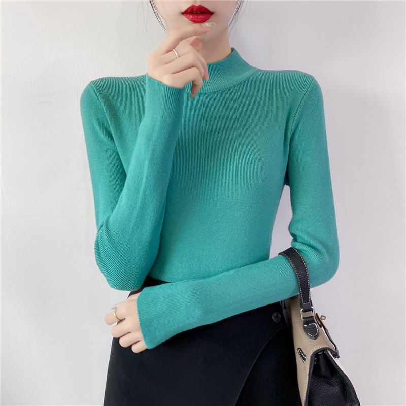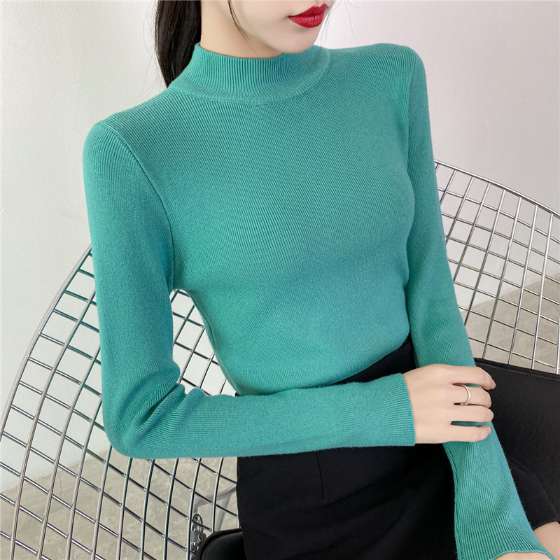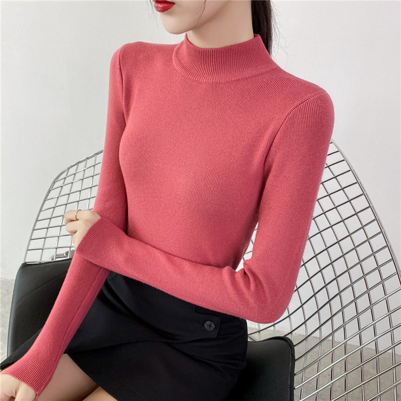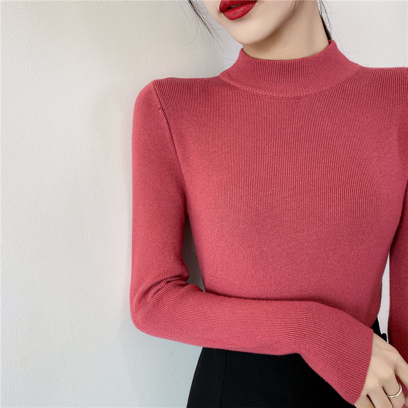 Осенний приталенный трикотажный лонгслив, базовый демисезонный свитер, 2020 года, высокий воротник