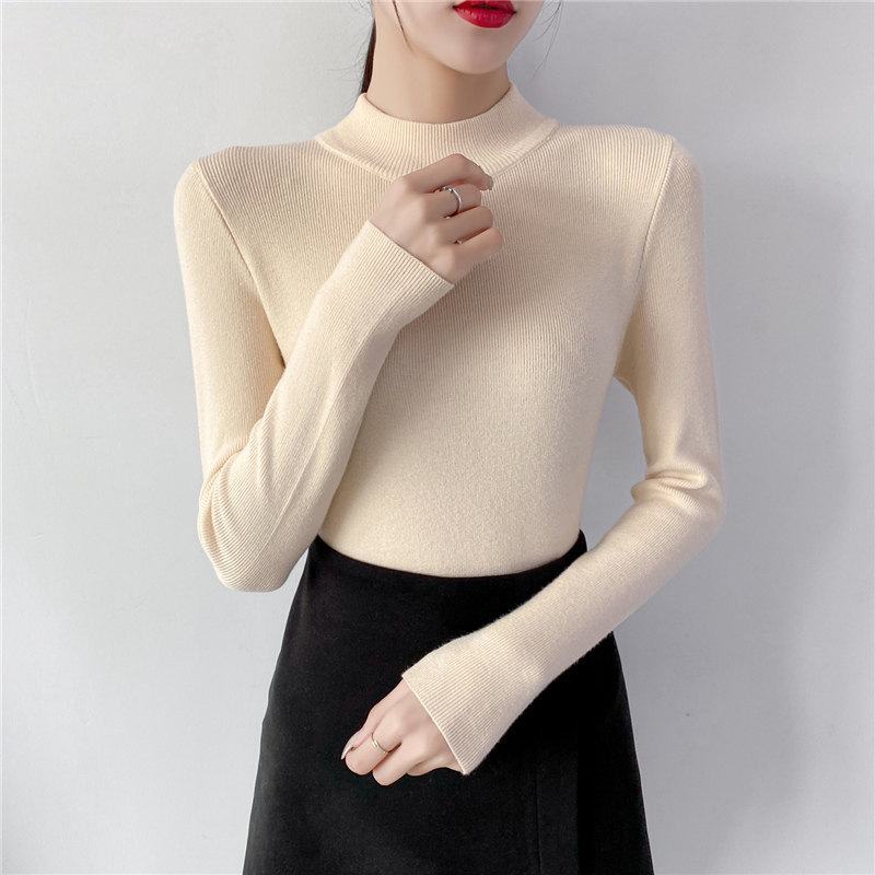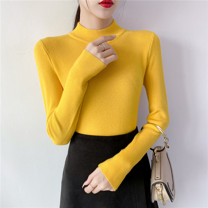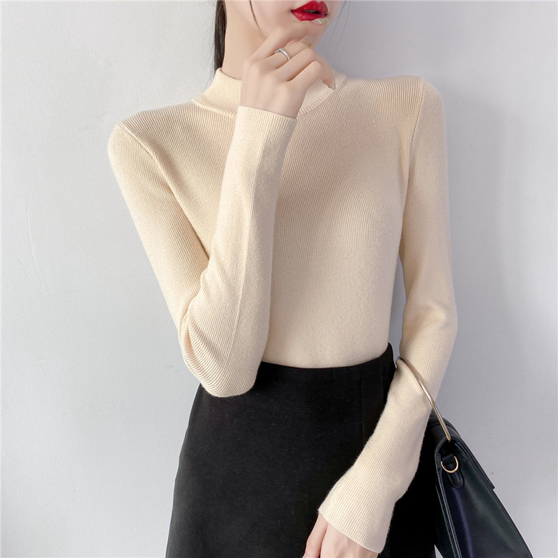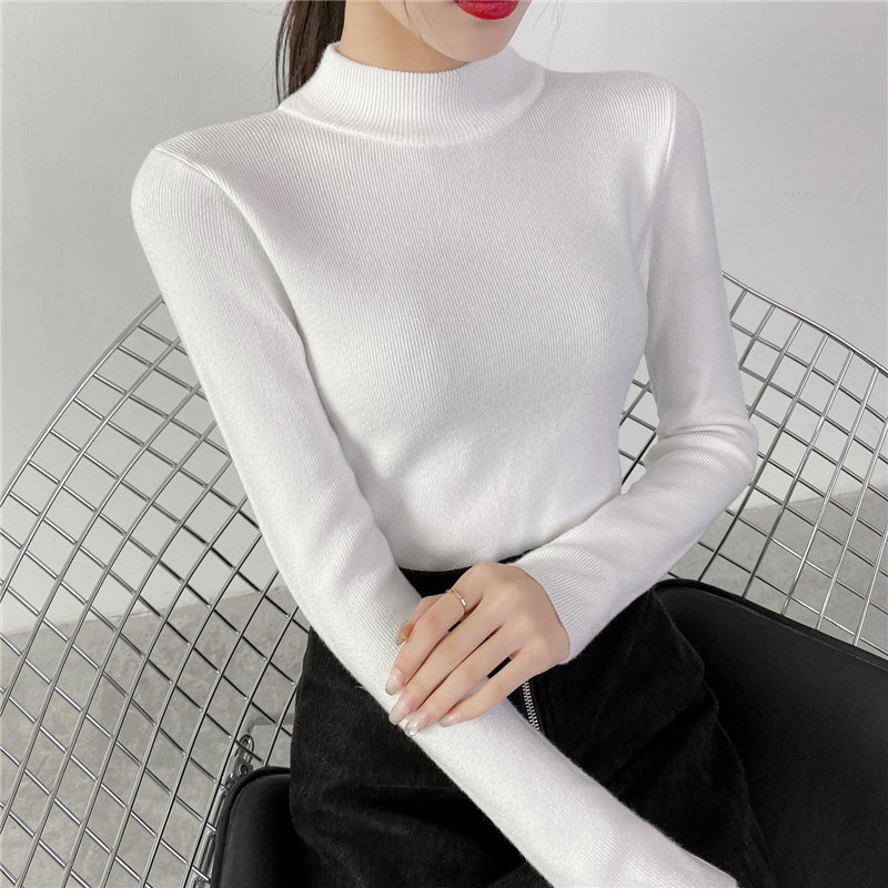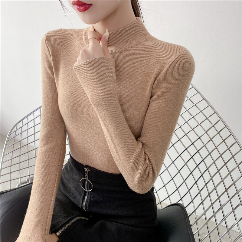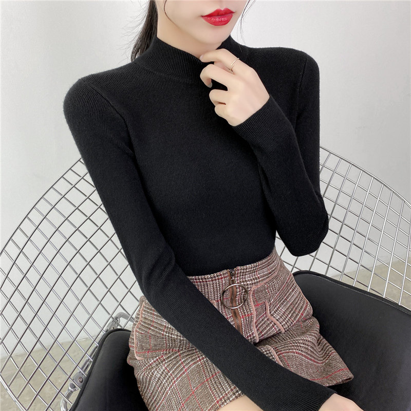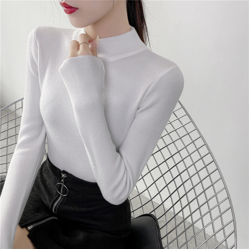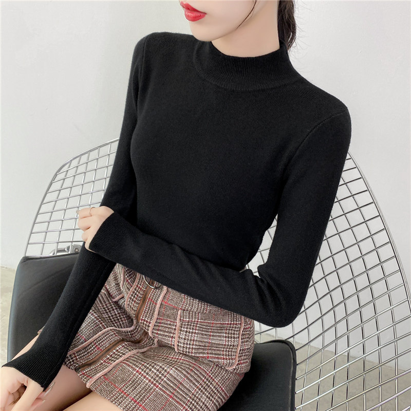Осенний приталенный трикотажный лонгслив, базовый демисезонный свитер, 2020 года, высокий воротник