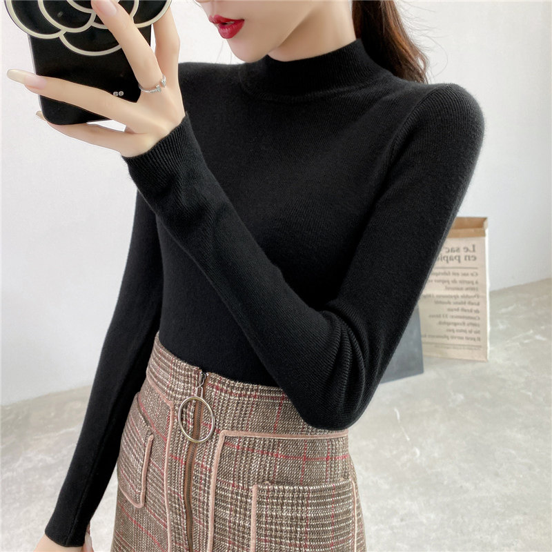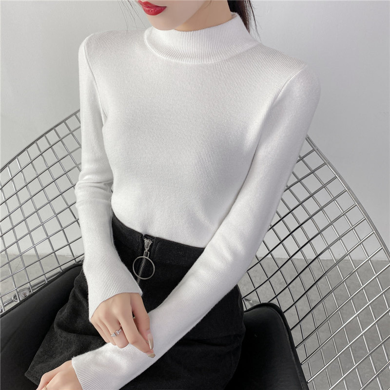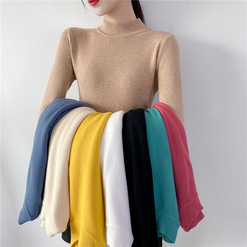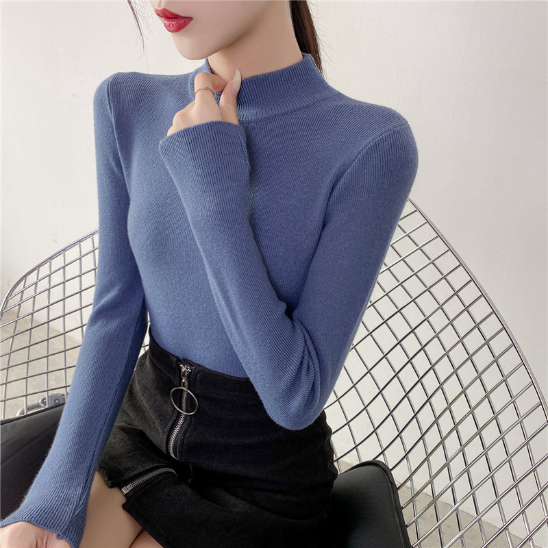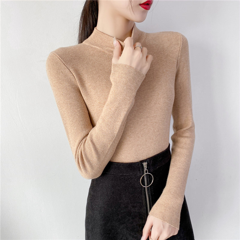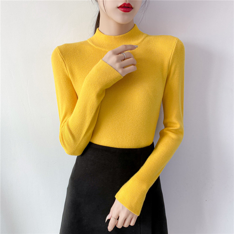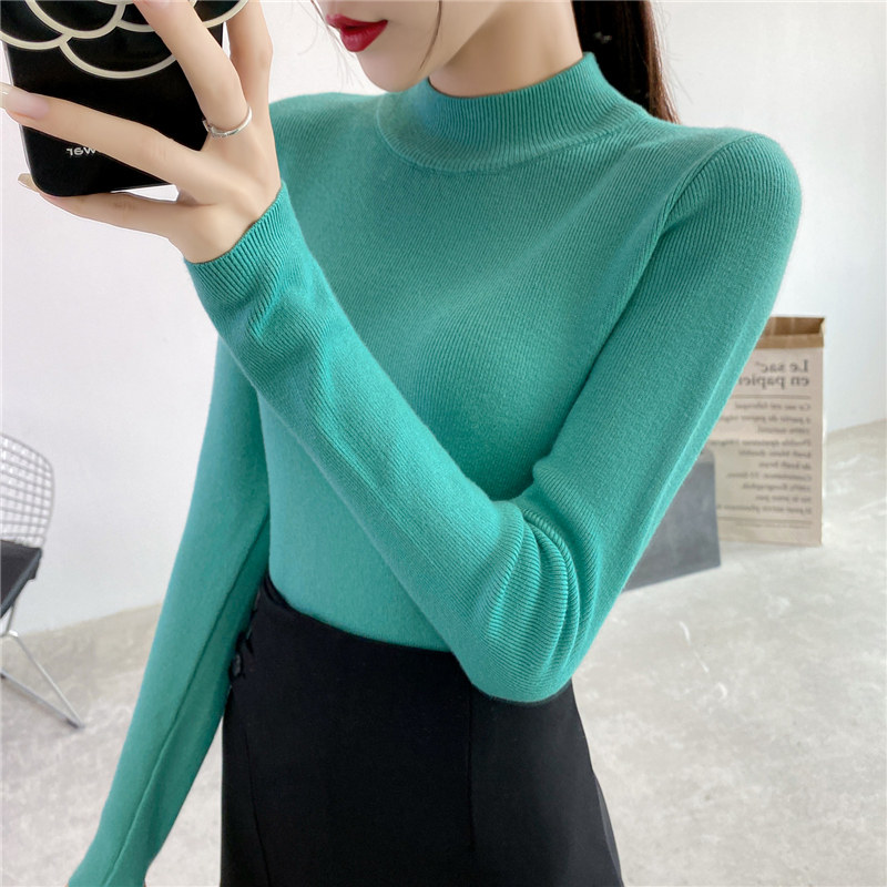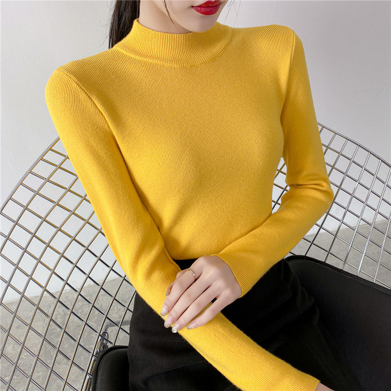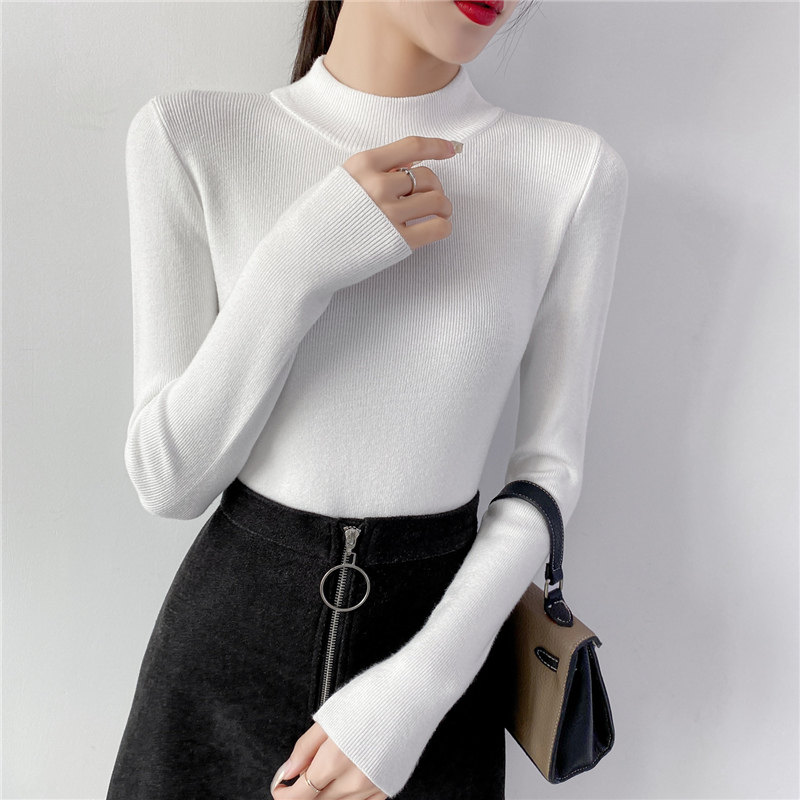 Осенний приталенный трикотажный лонгслив, базовый демисезонный свитер, 2020 года, высокий воротник