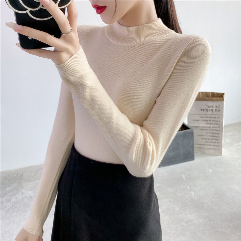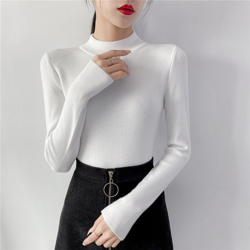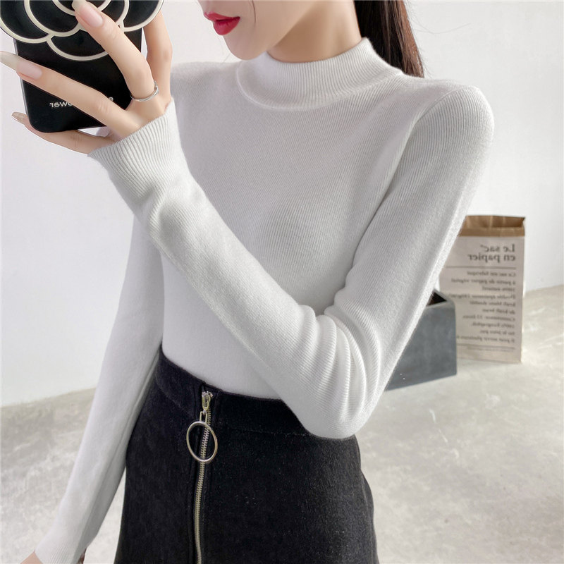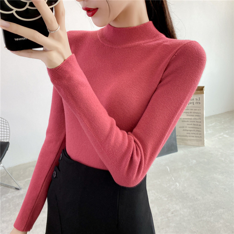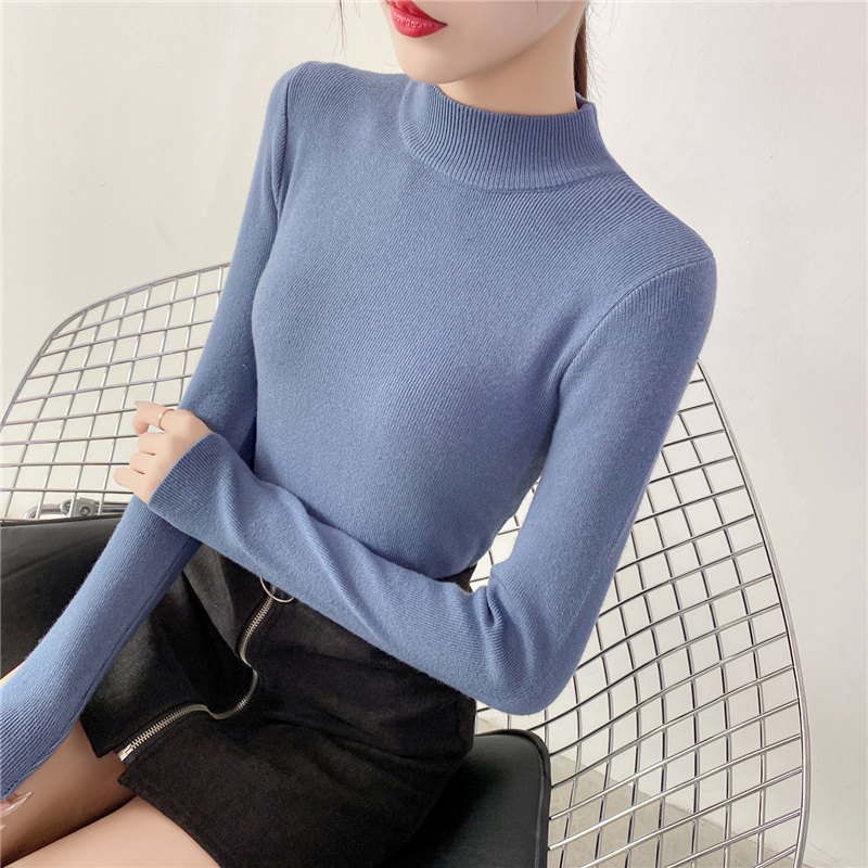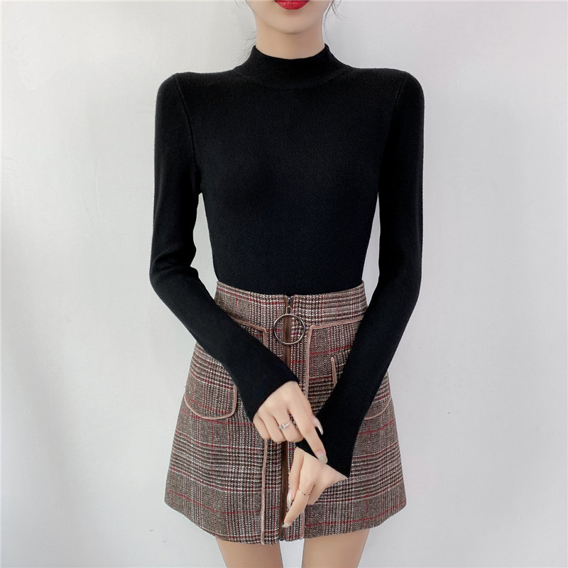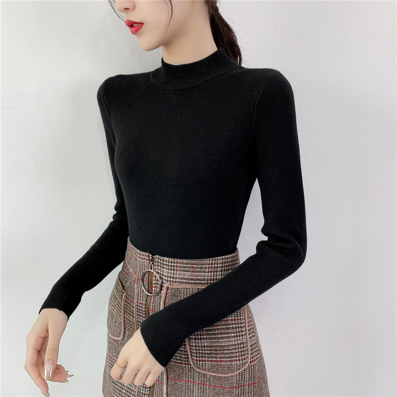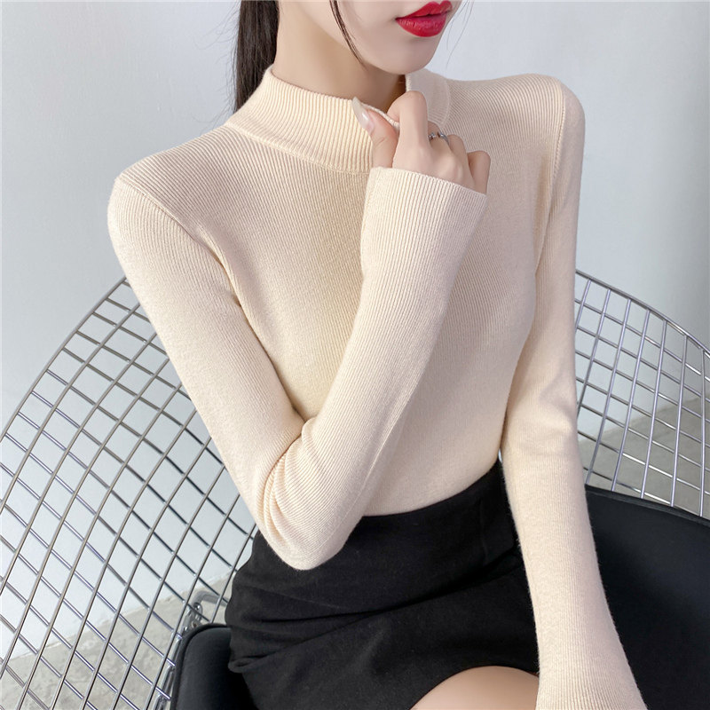 Осенний приталенный трикотажный лонгслив, базовый демисезонный свитер, 2020 года, высокий воротник