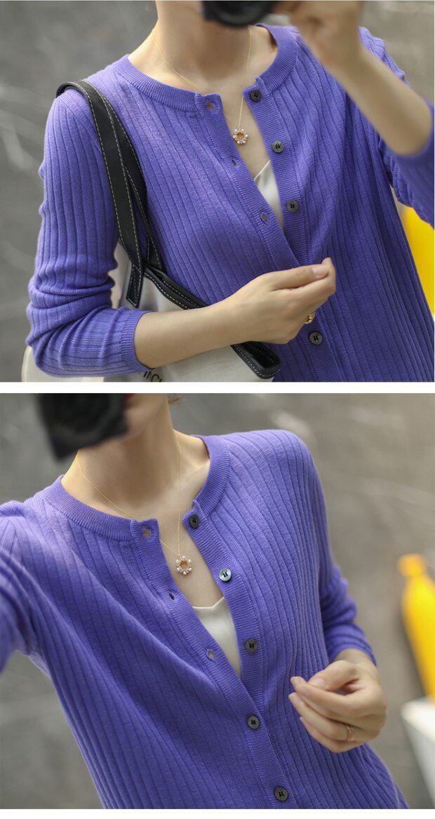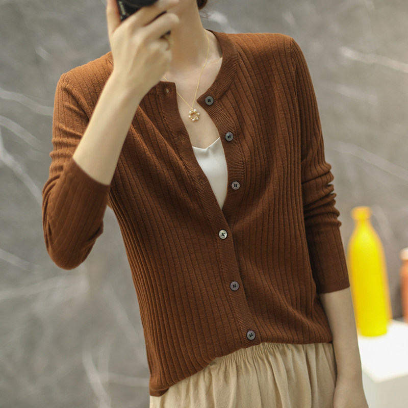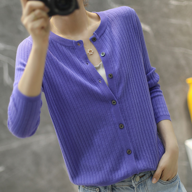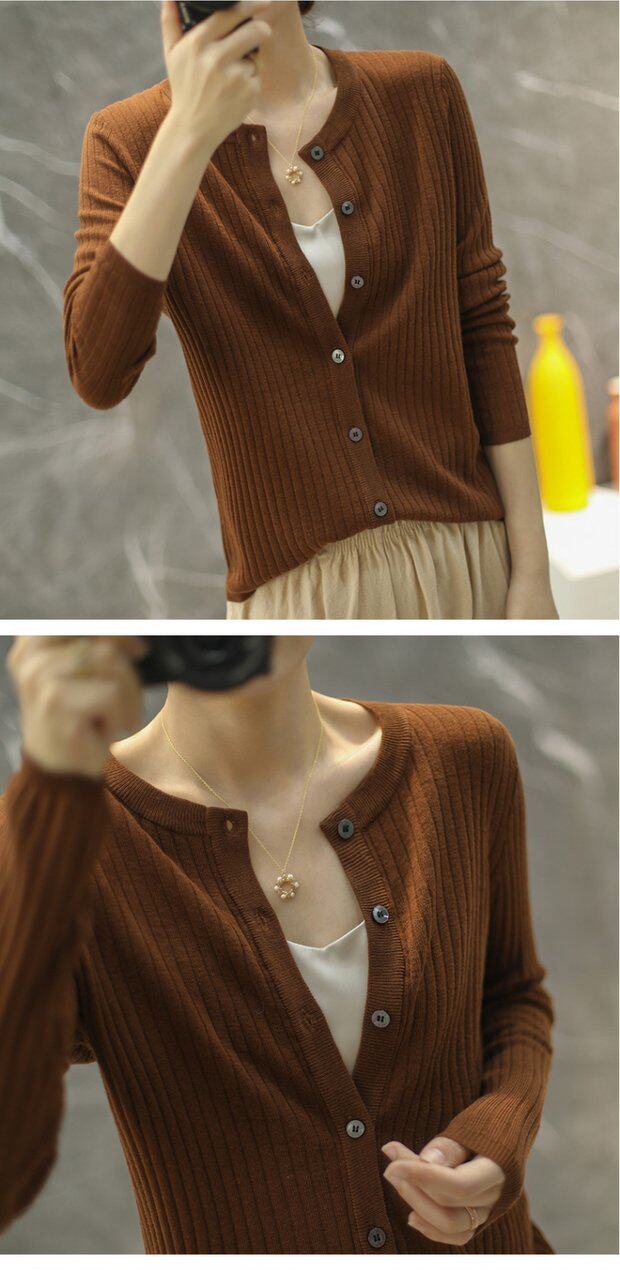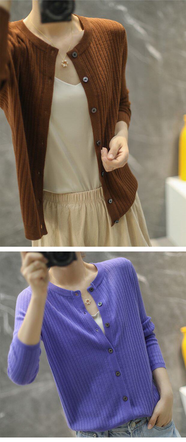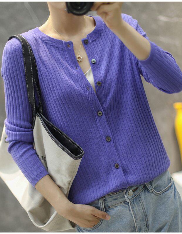 Тонкий кашемировый лонгслив с круглым воротником, однотонный кардиган, шерстяная куртка, 2020