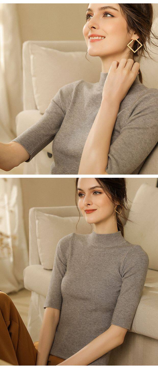 Трикотажный короткий тонкий базовый приятный телу свитер, высокий воротник, облегающий крой, в обтяжку, короткий рукав