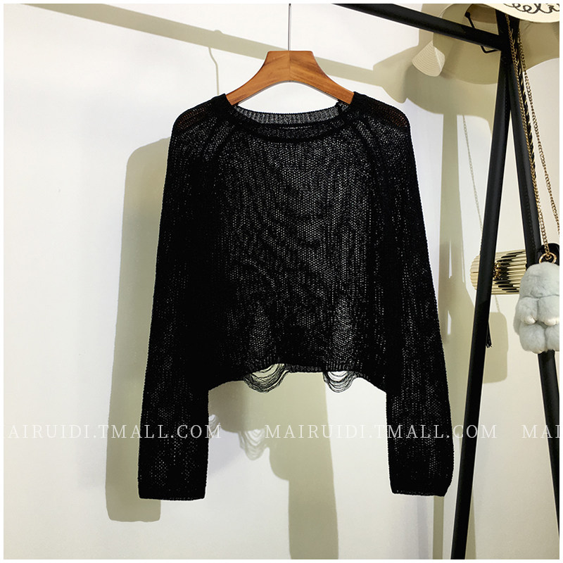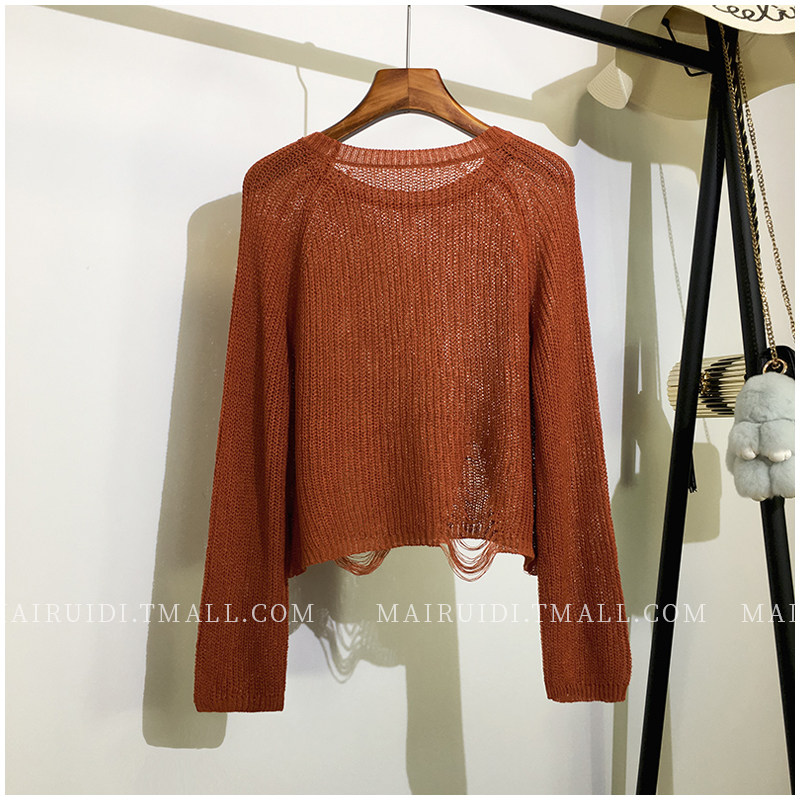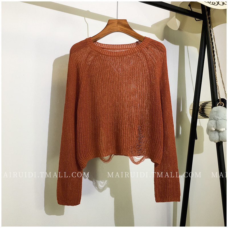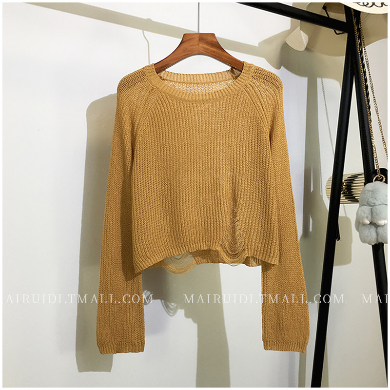 Летний лонгслив, короткий трикотажный свитер с круглым воротником, в корейском стиле