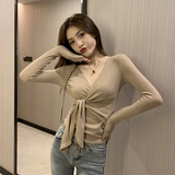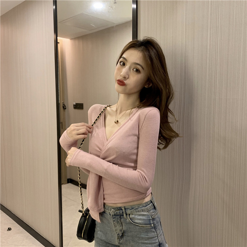 Базовый приятный телу осенний приталенный дизайнерский трикотажный свитер, в корейском стиле, тренд сезона, V-образный вырез