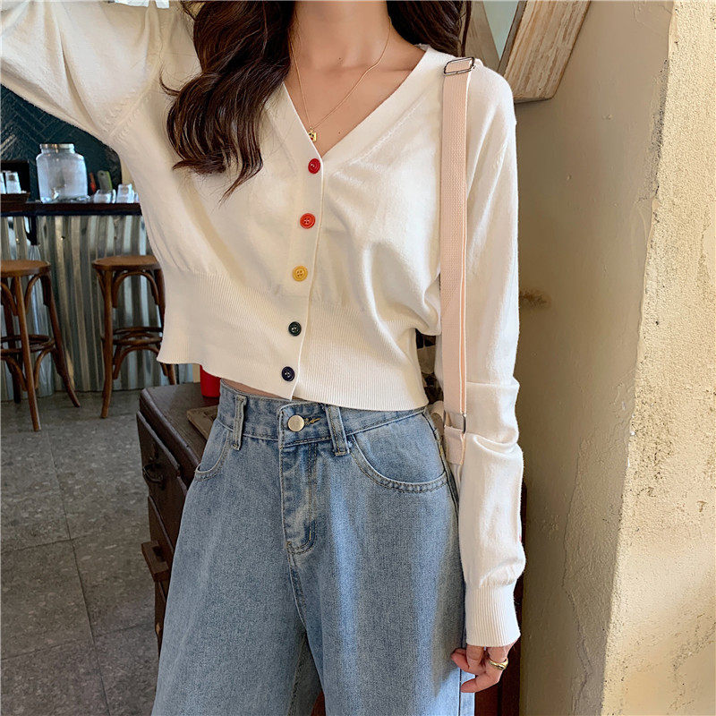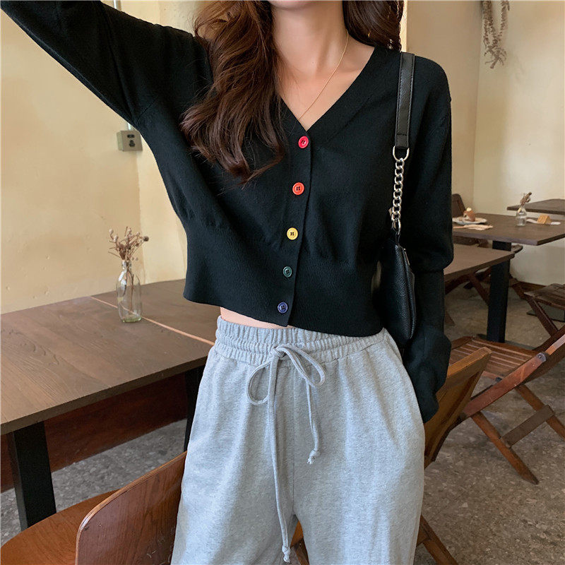 Осенние короткие штаны, тонкий кардиган, футболка, лонгслив, свитер, высокая талия