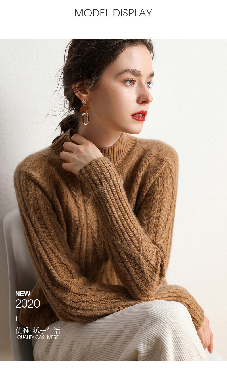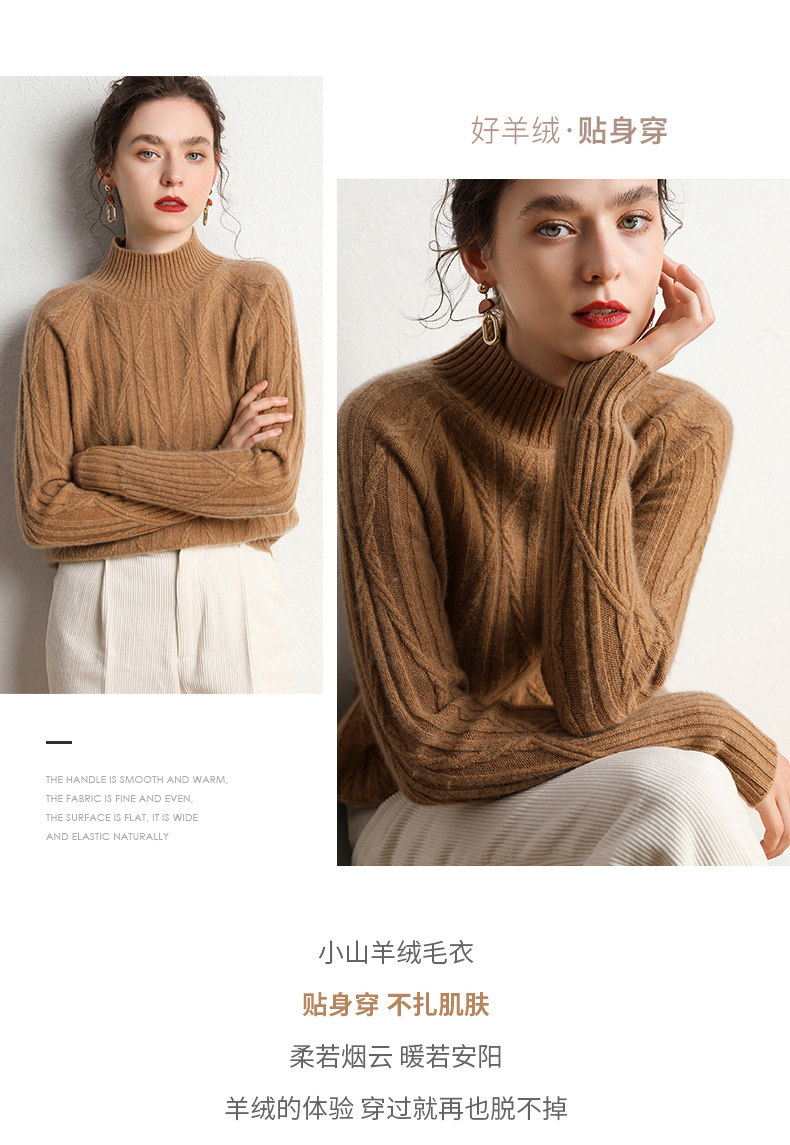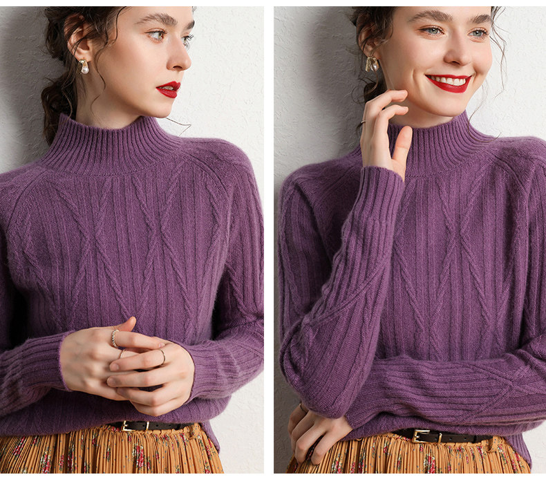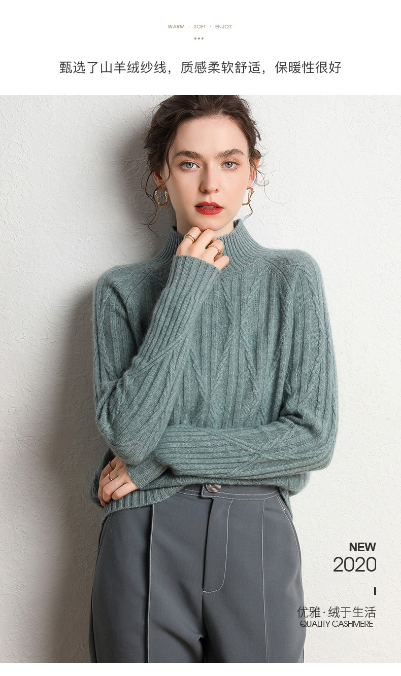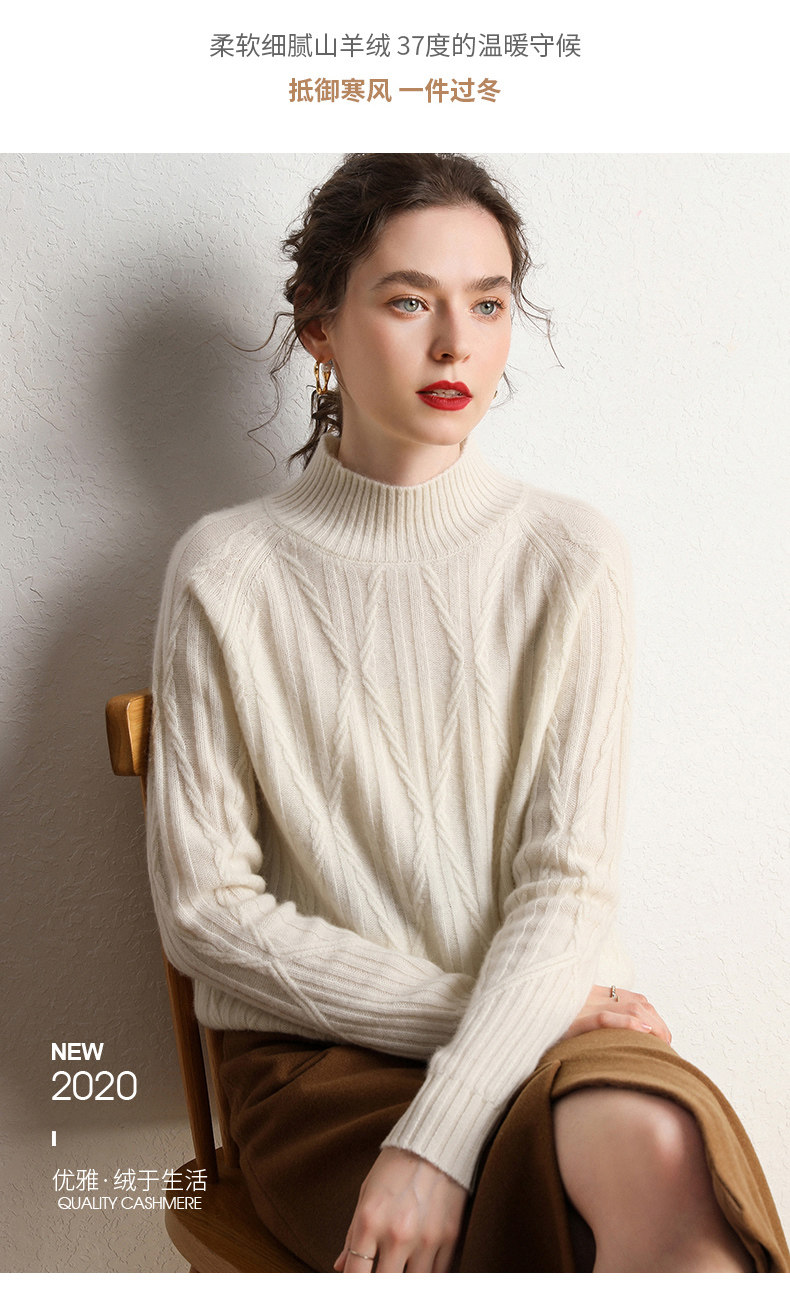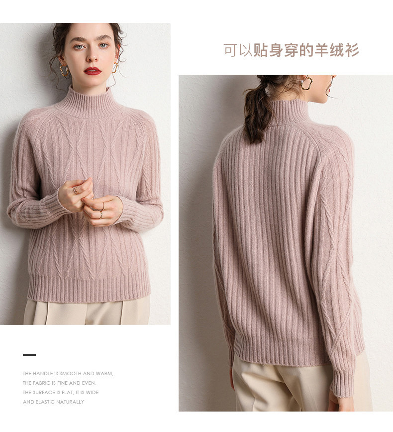 Кашемировый демисезонный свитер, трикотажное термобелье, увеличенная толщина, облегающий крой, высокий воротник