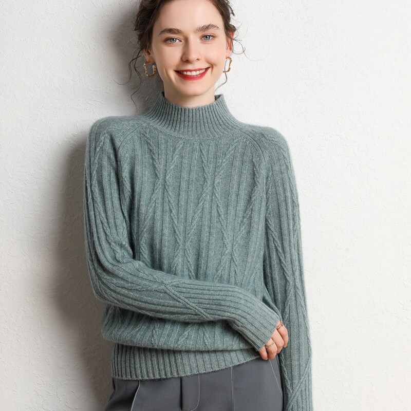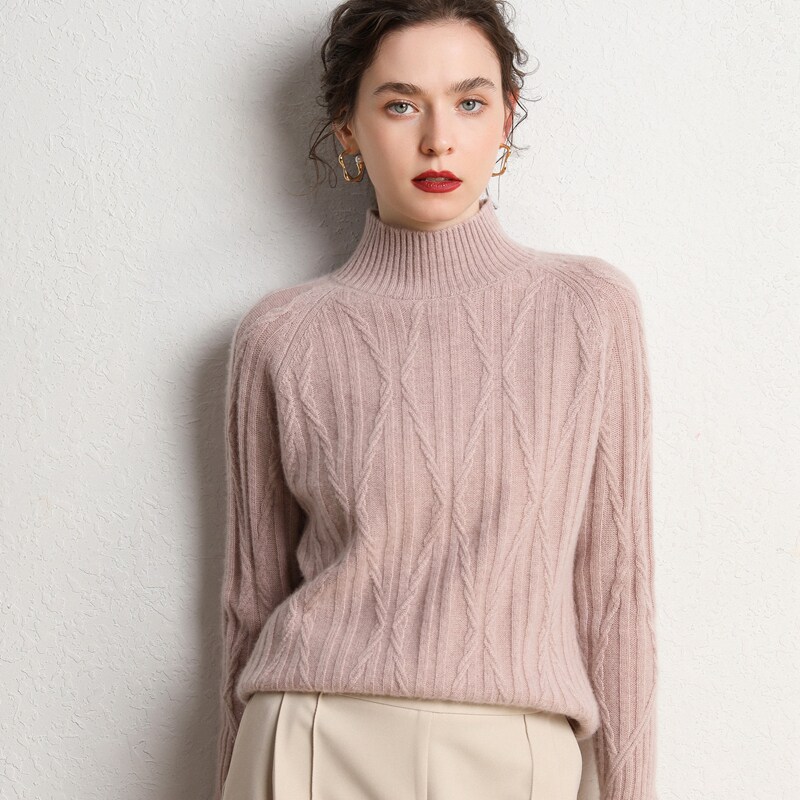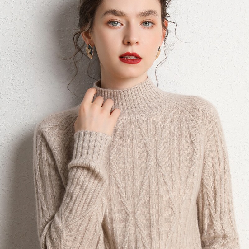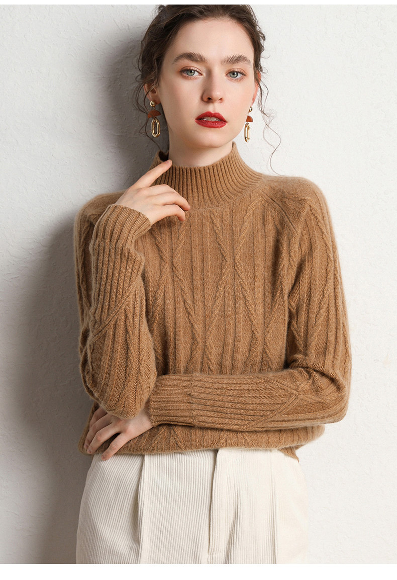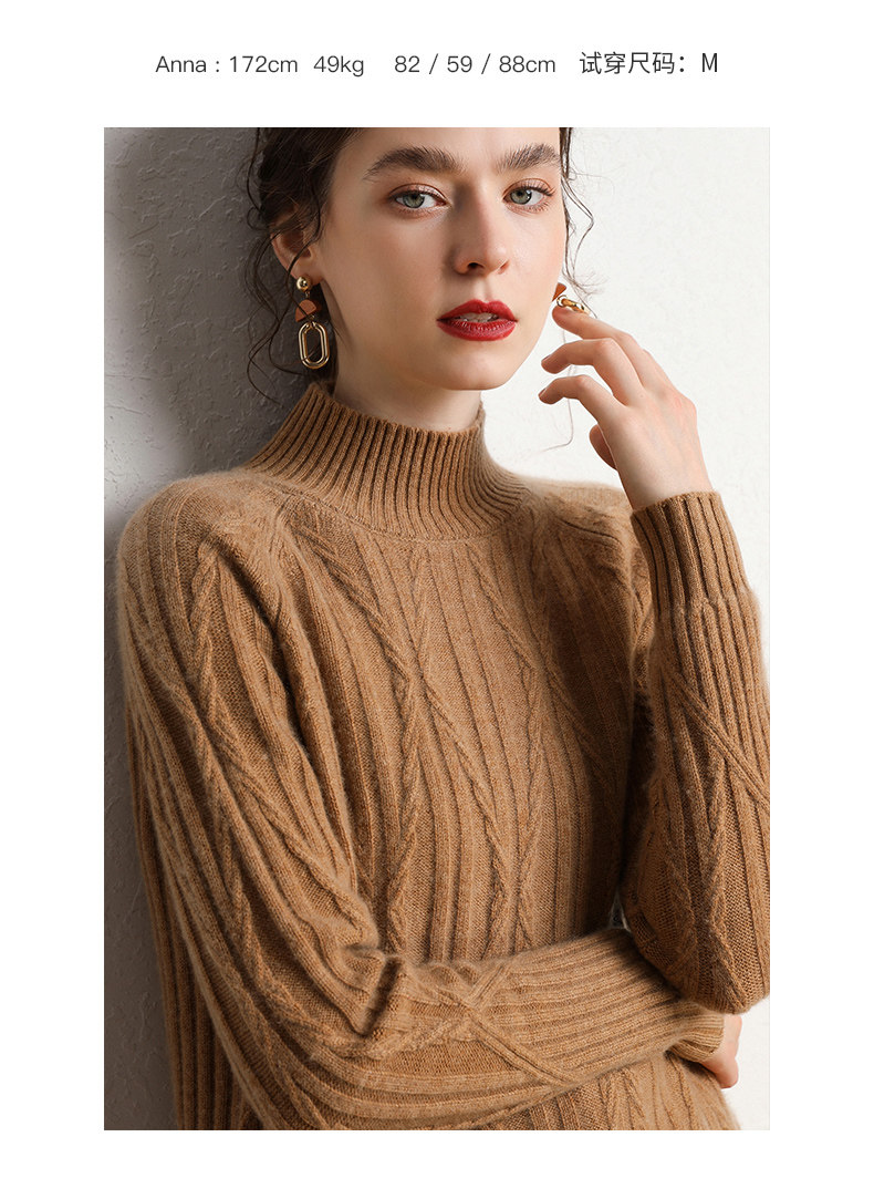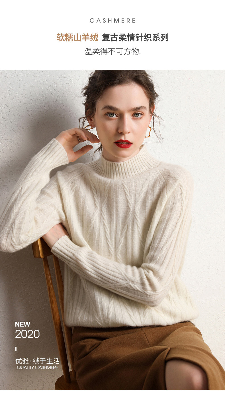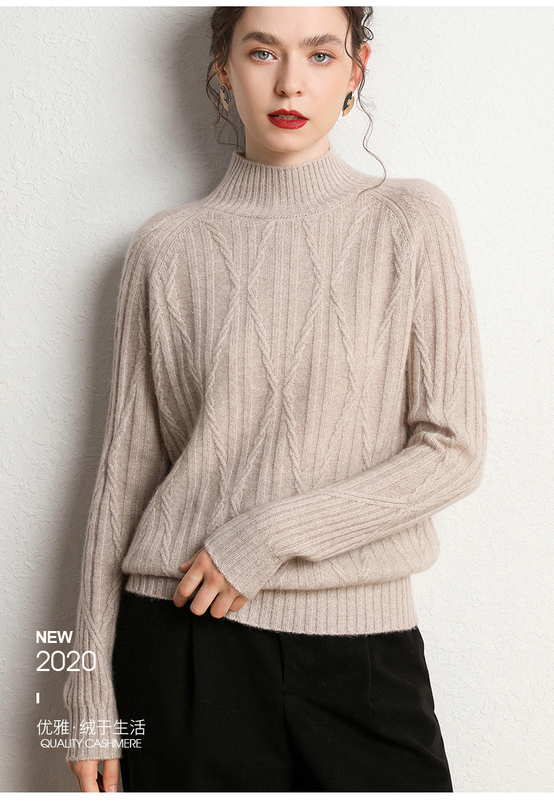 Кашемировый демисезонный свитер, трикотажное термобелье, увеличенная толщина, облегающий крой, высокий воротник