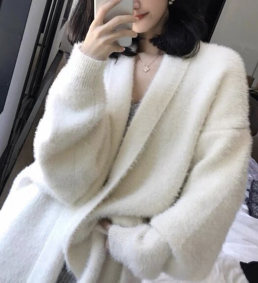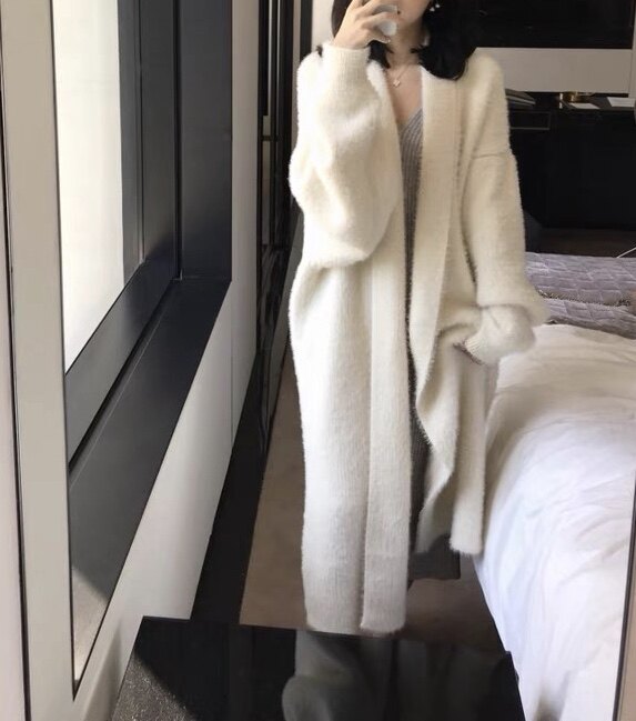 Демисезонный белый трикотажный кардиган, цвет, 2020, длина миди