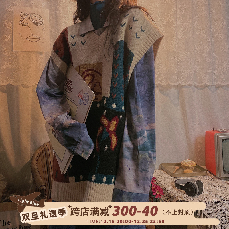 Ретро трикотажный осенний свитер, жилет, свободный крой