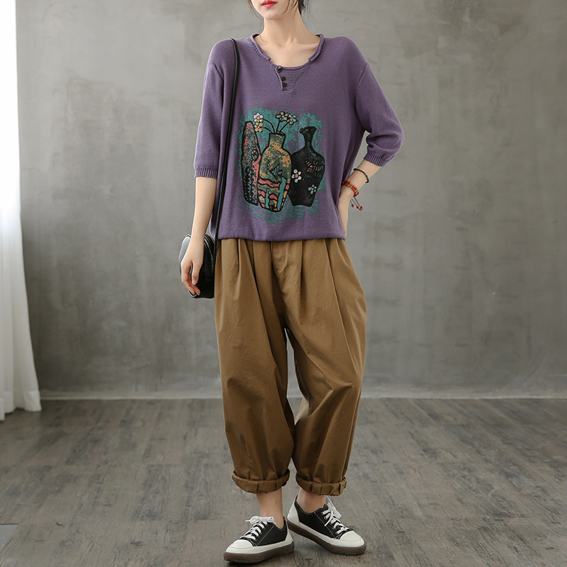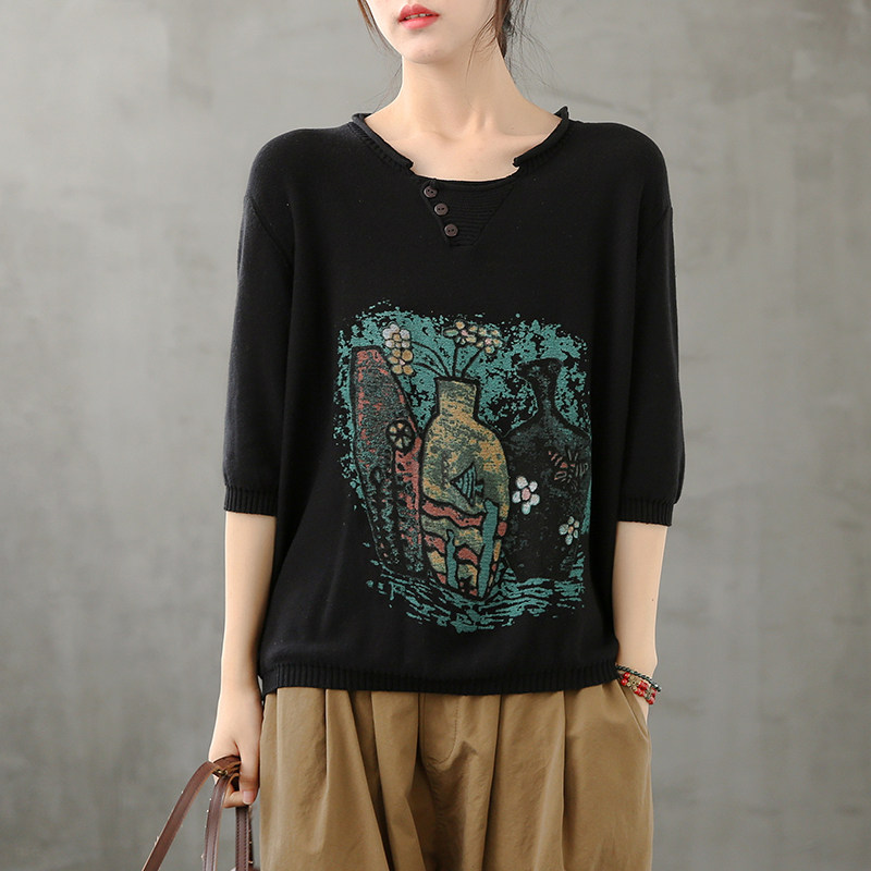 Ретро тонкая трикотажная футболка, весенний свитер для отдыха, оверсайз, коллекция 2021