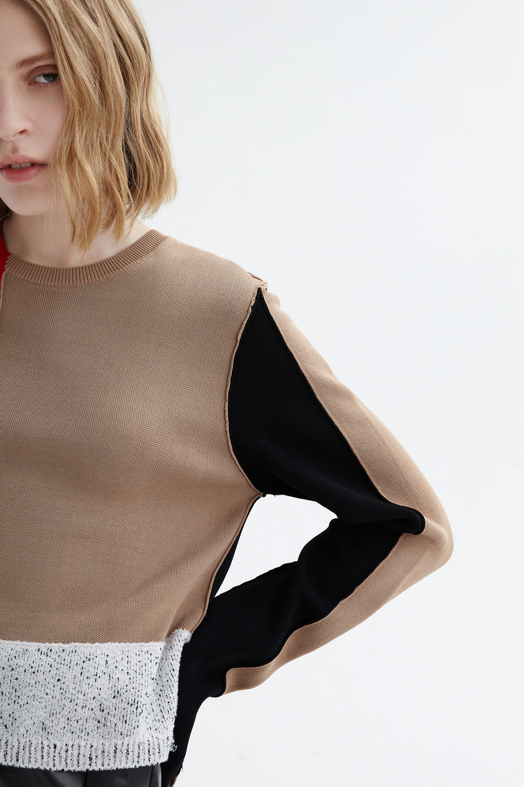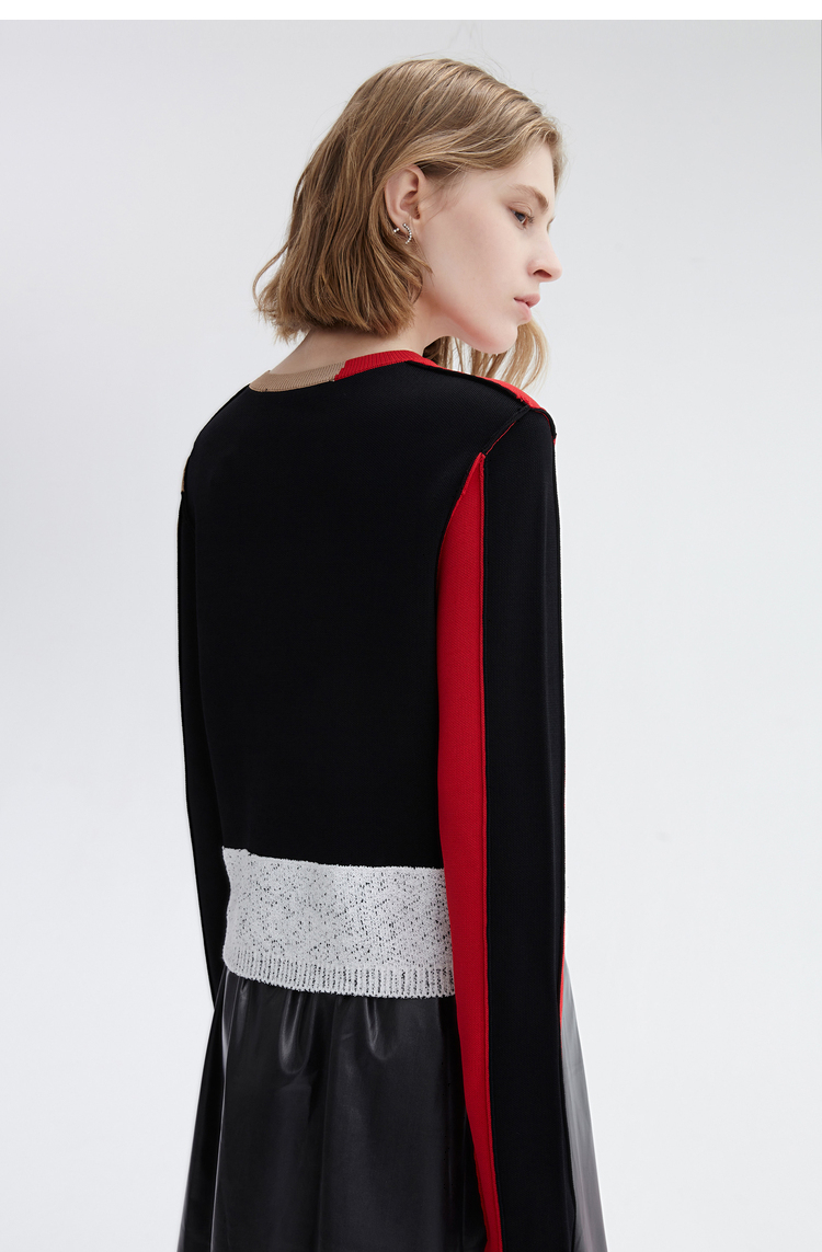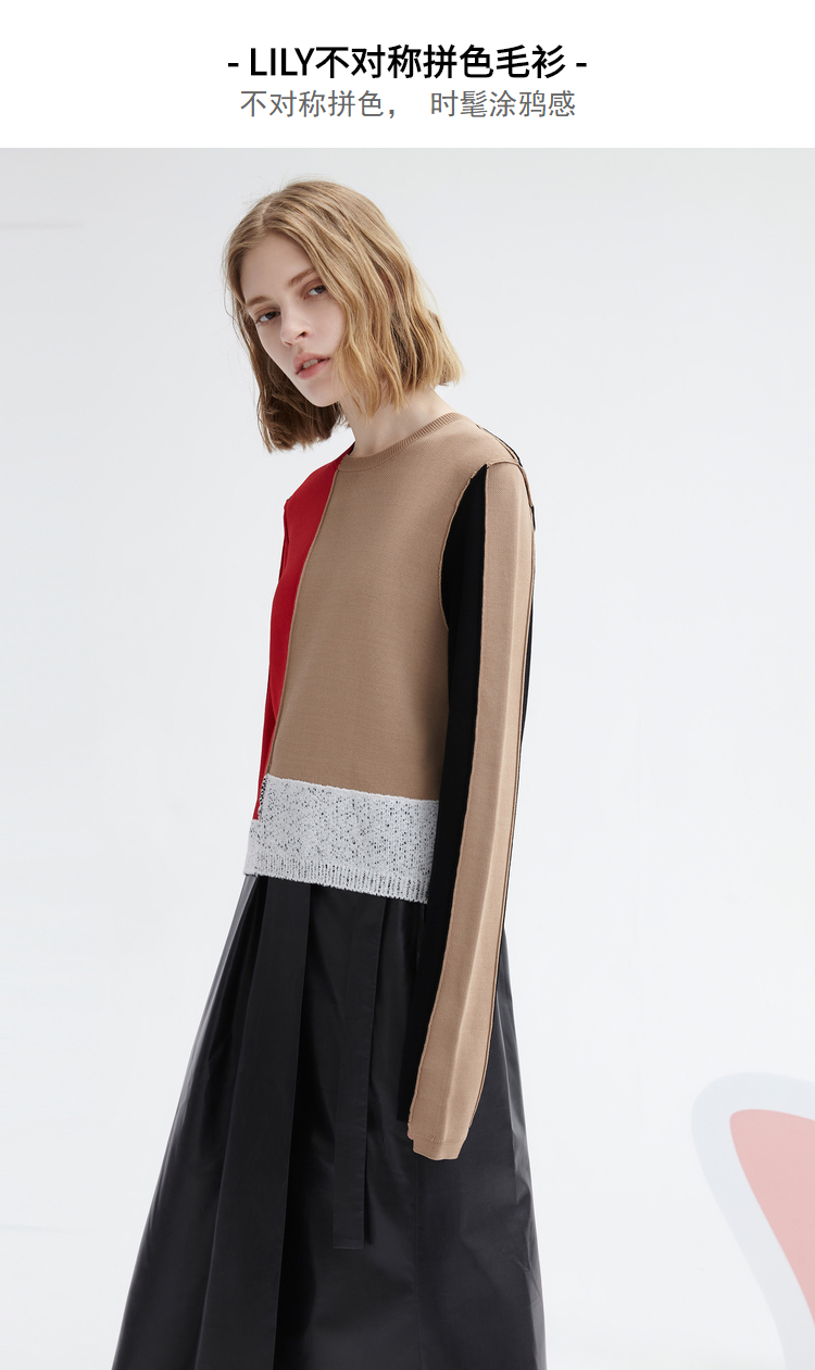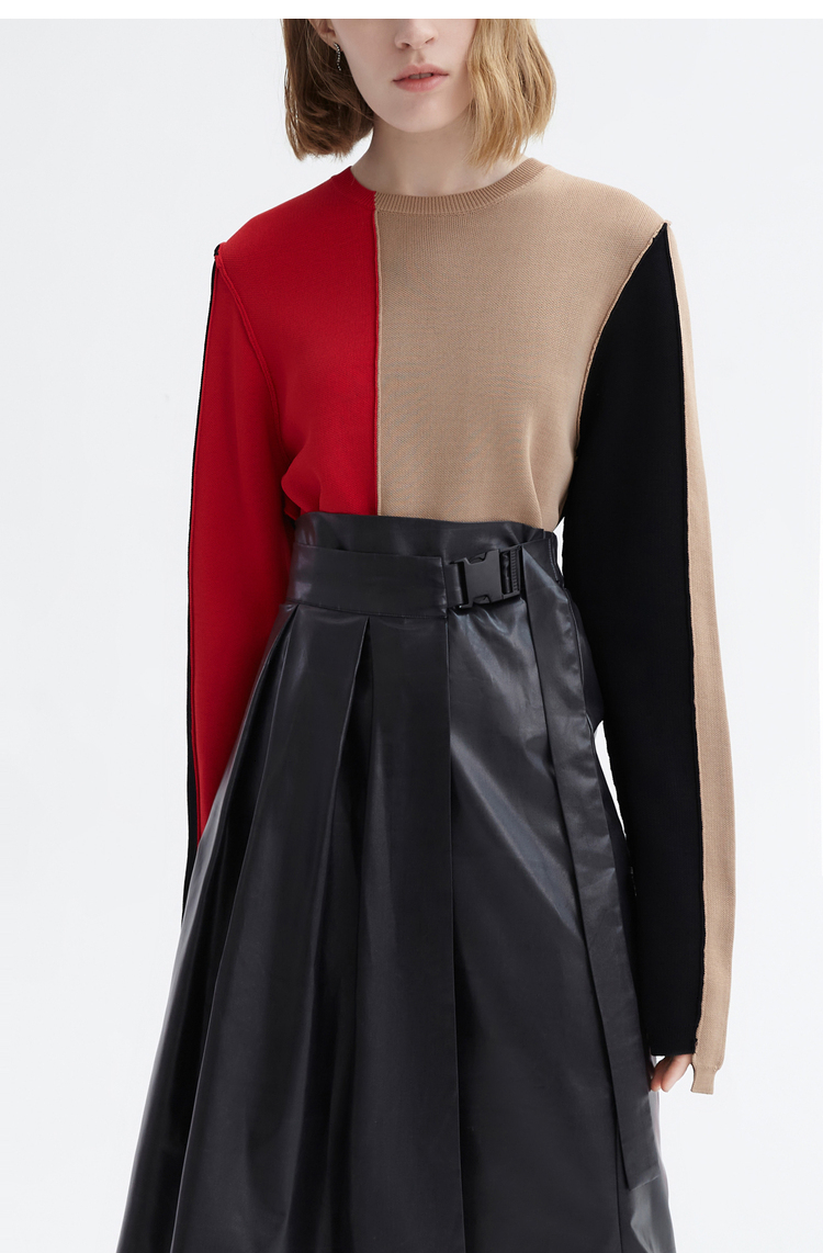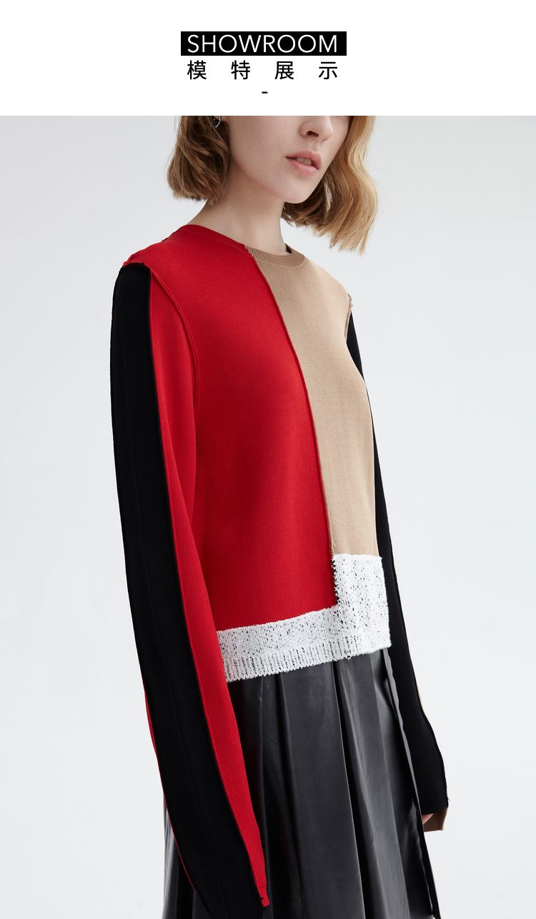 Осенний асимметричный трикотажный свитер, короткий комплект, городской стиль, круглый воротник