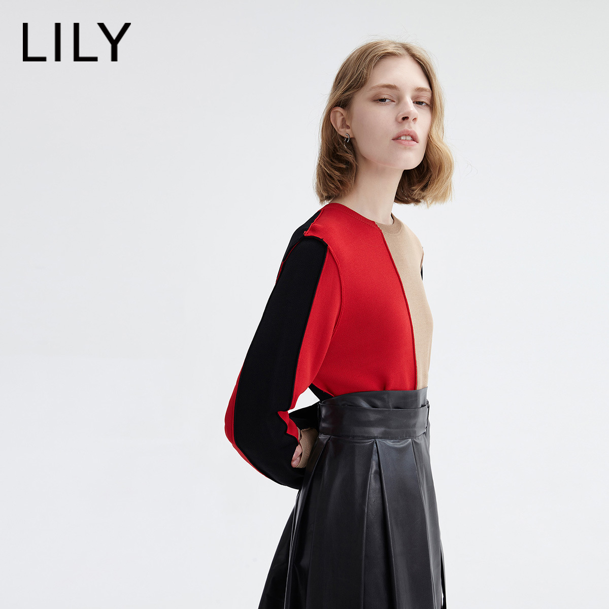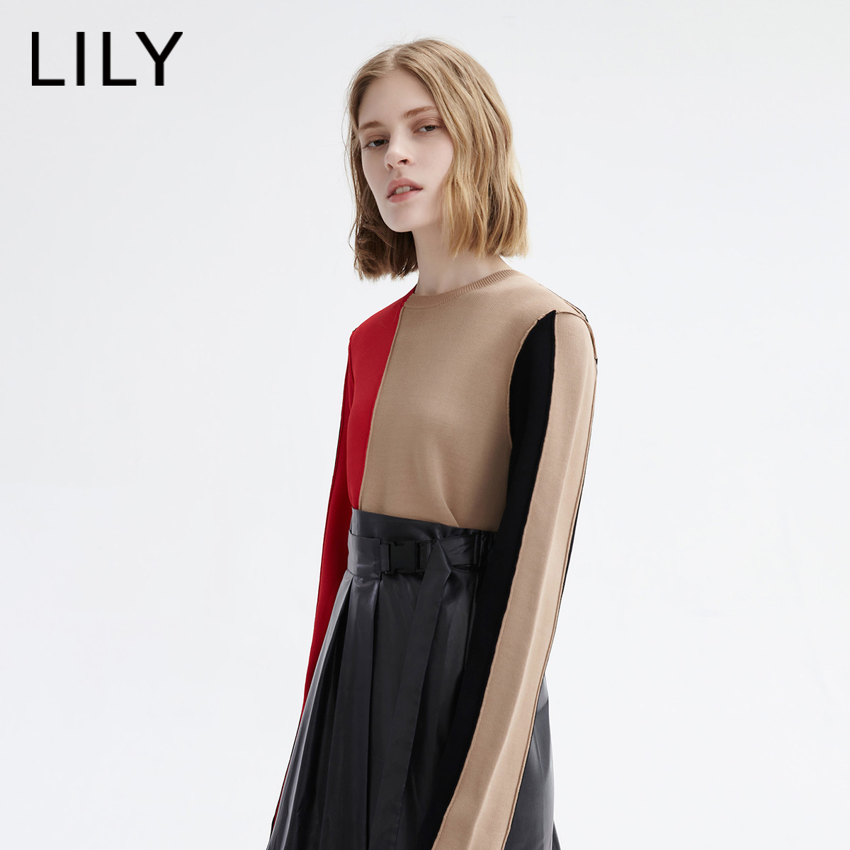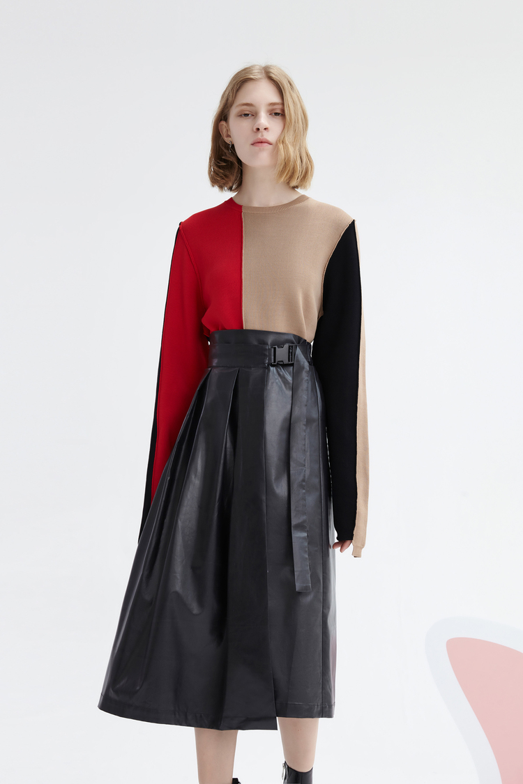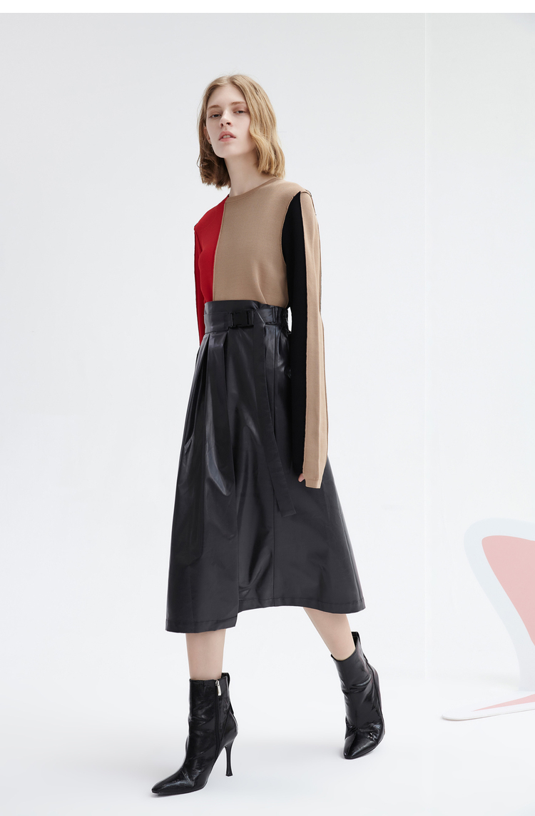 Осенний асимметричный трикотажный свитер, короткий комплект, городской стиль, круглый воротник