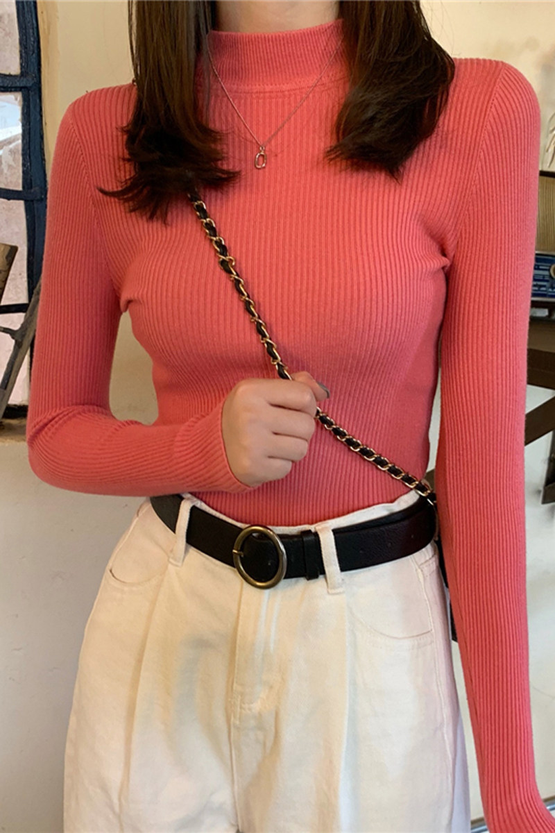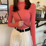 Красный базовый приятный телу осенний лонгслив, трикотажный свитер, коллекция 2021, высокий воротник, с рукавом