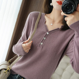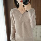 Кашемировый демисезонный трикотажный свитер, V-образный вырез, большой размер