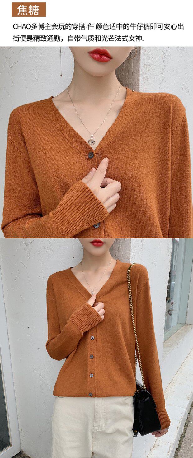 Кашемировый кардиган, шерстяной короткий свитер, трикотажная куртка, V-образный вырез, большой размер