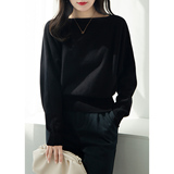 Демисезонный трикотажный черный базовый приятный телу свитер, коллекция 2022, в западном стиле, оверсайз