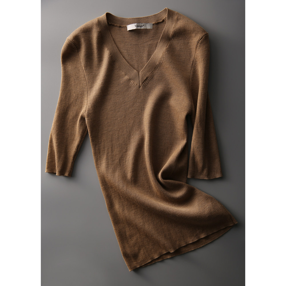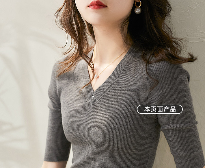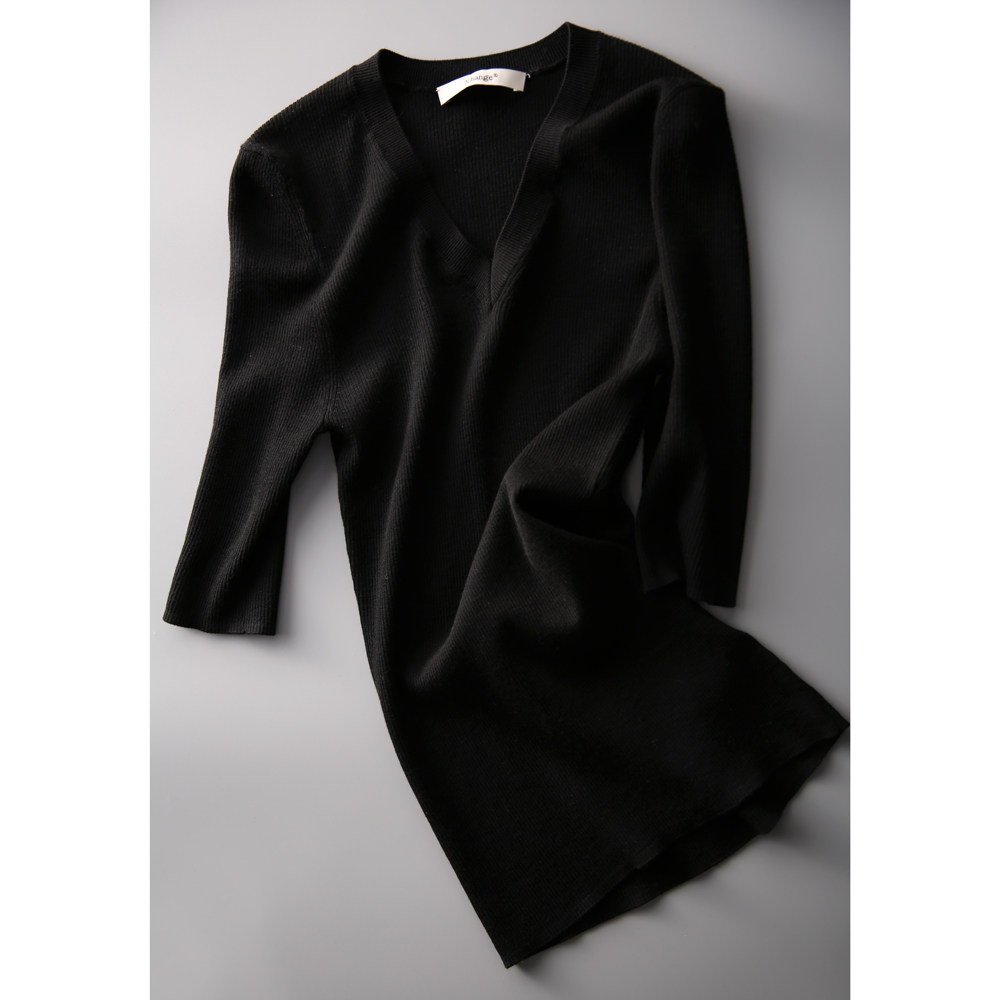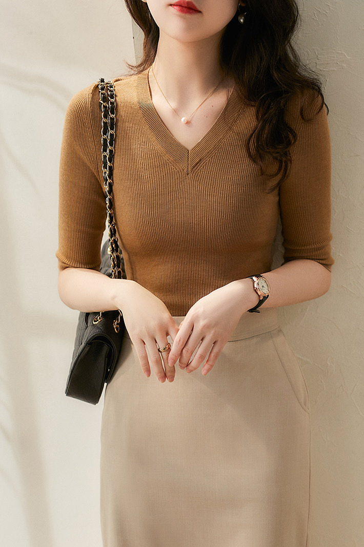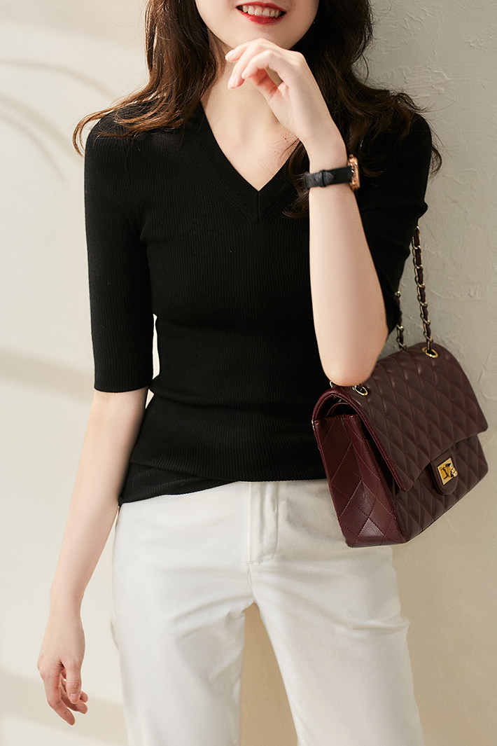 & [ZY259251AG] Павильон Сяохан Павильон Павильон в течение четырех сезонов Высокая эластичность, тонкая v -neck, средний рубашка с средним рубашкой.
