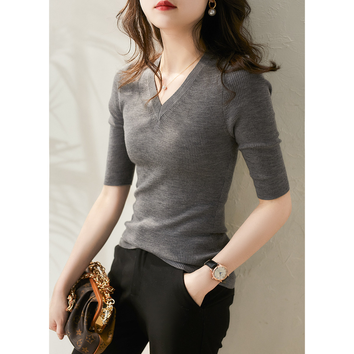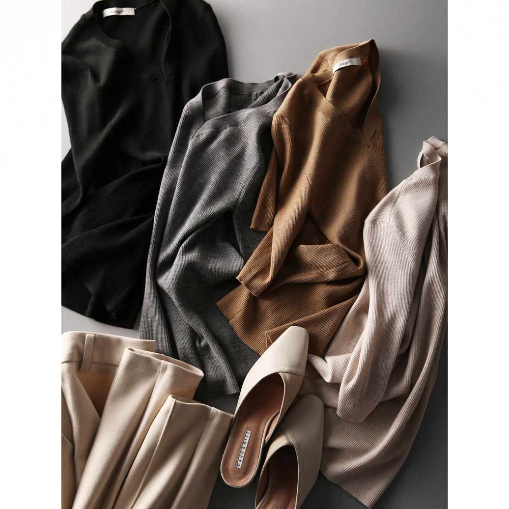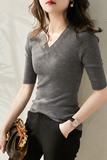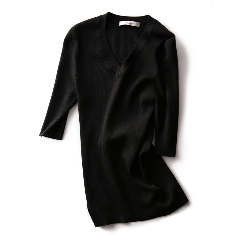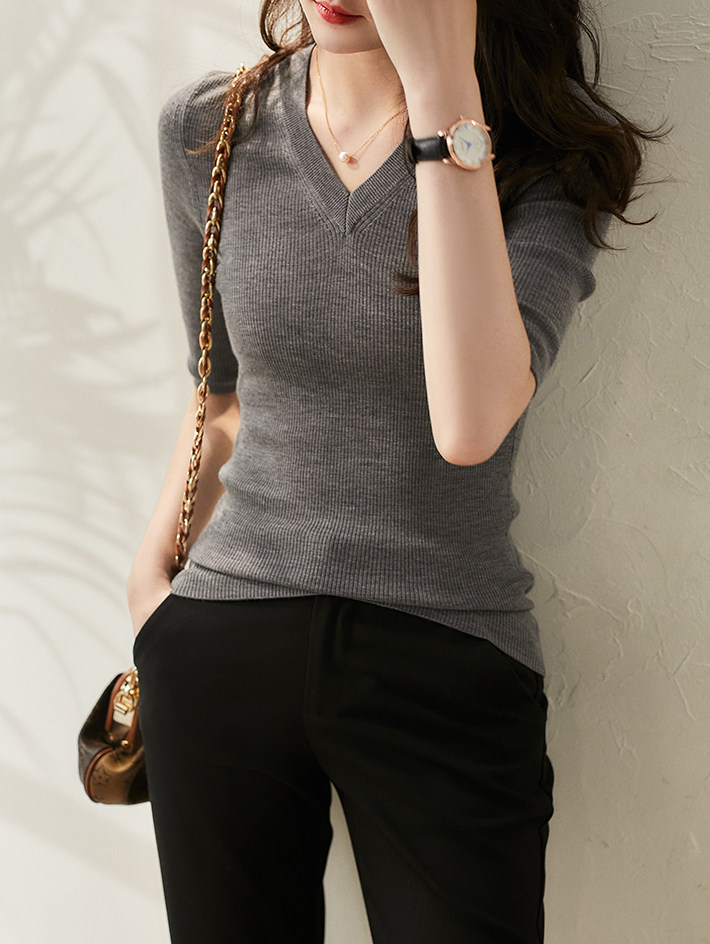& [ZY259251AG] Павильон Сяохан Павильон Павильон в течение четырех сезонов Высокая эластичность, тонкая v -neck, средний рубашка с средним рубашкой.
