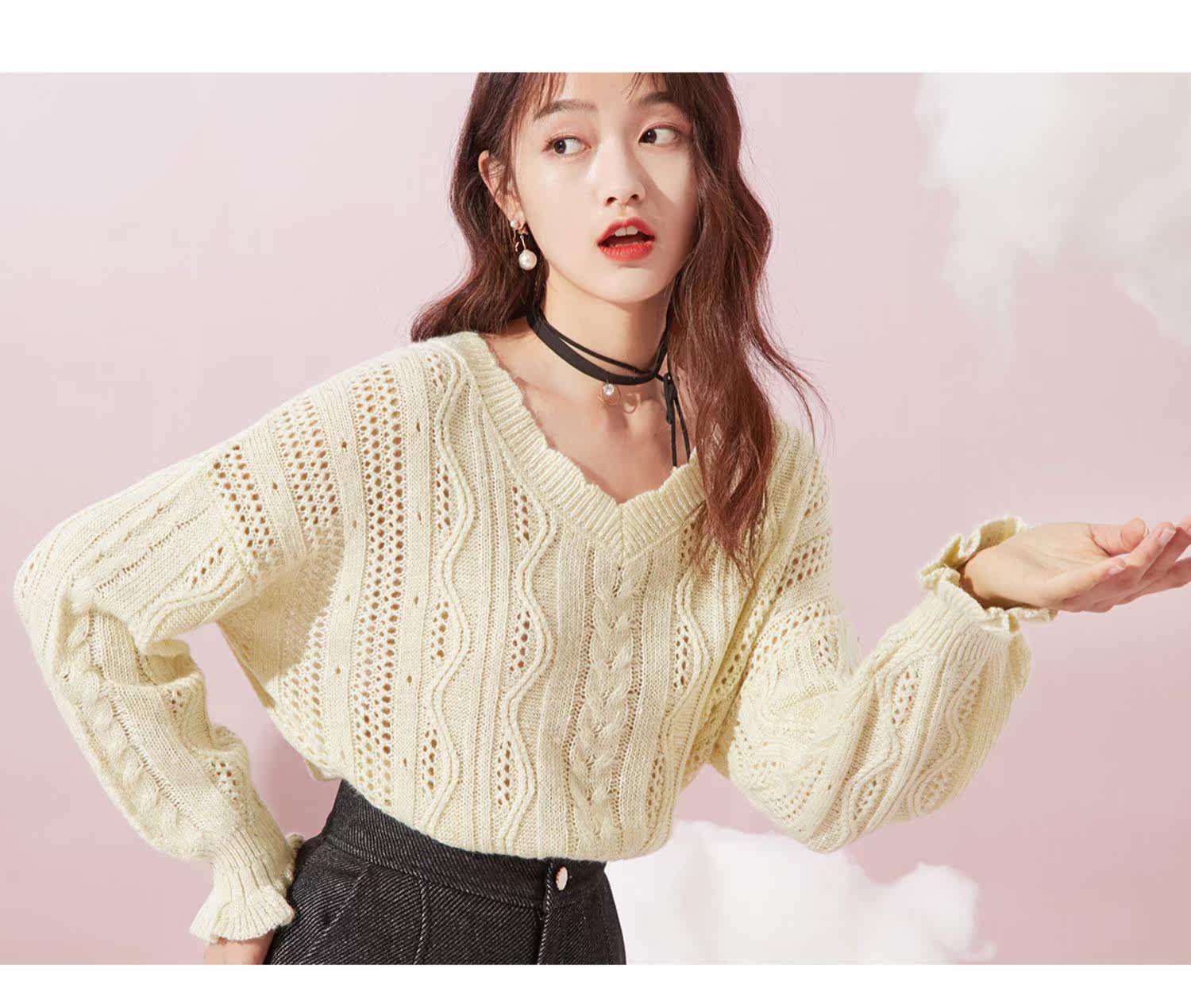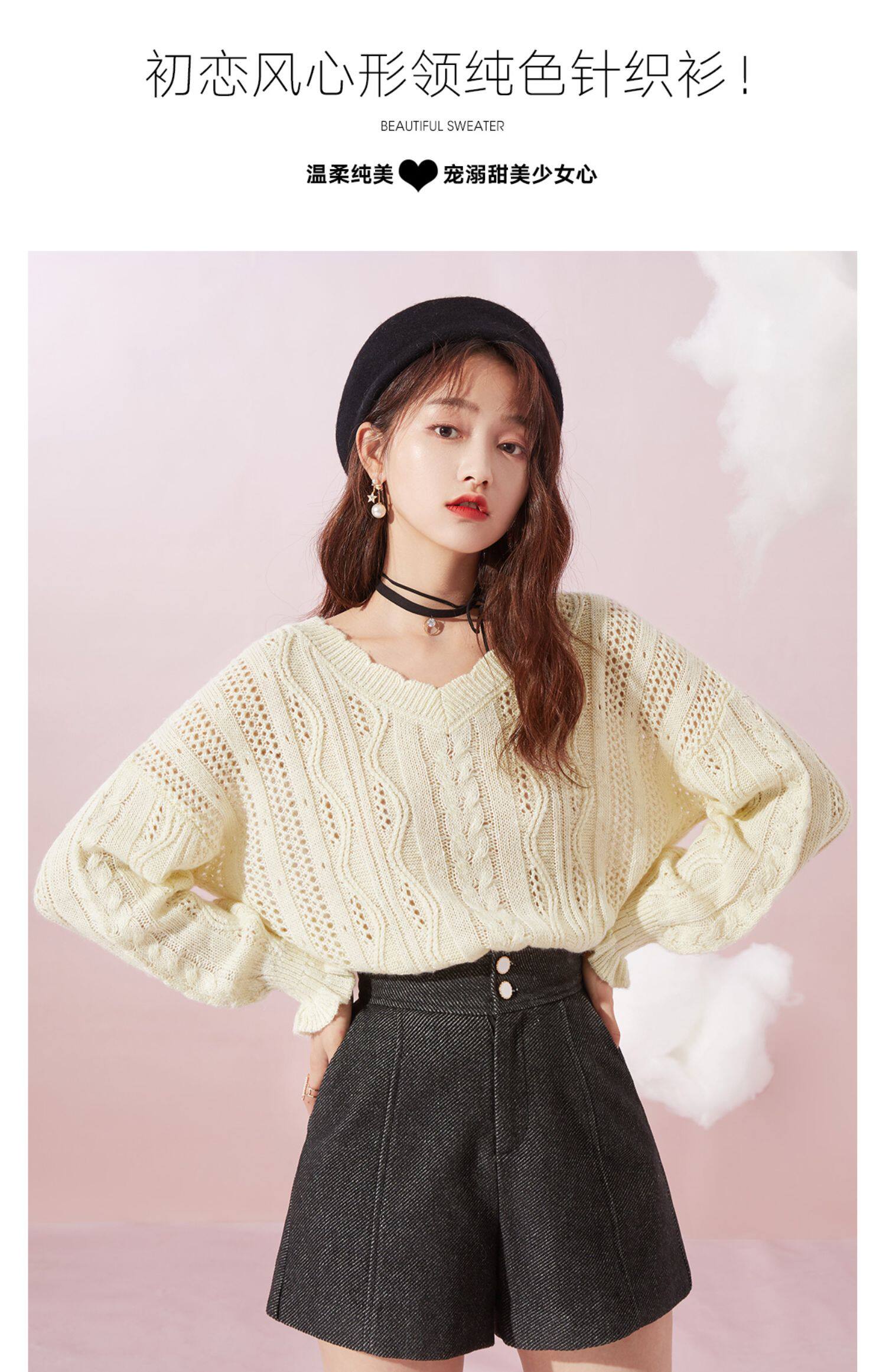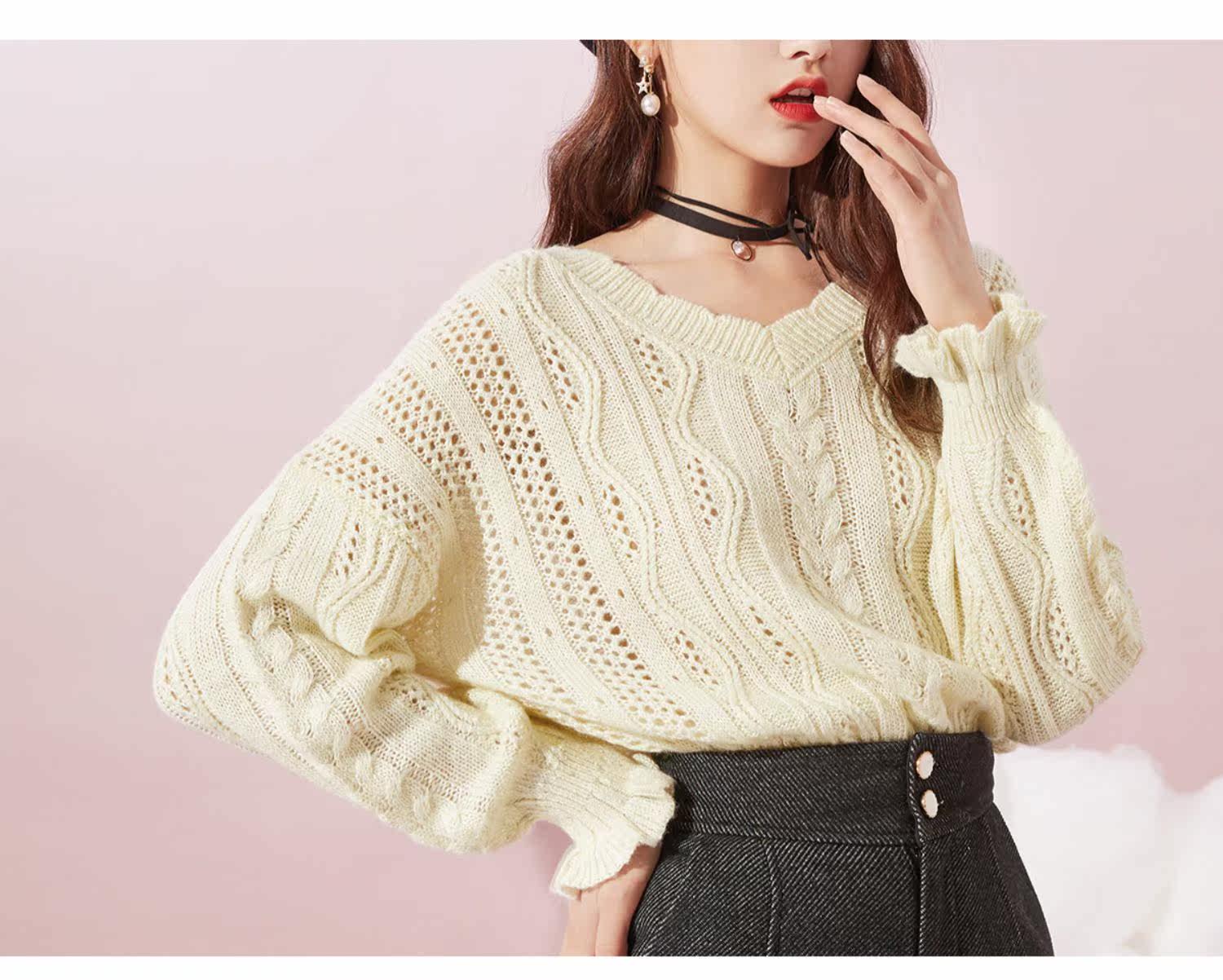 Осенний трикотажный свитер, V-образный вырез, оверсайз