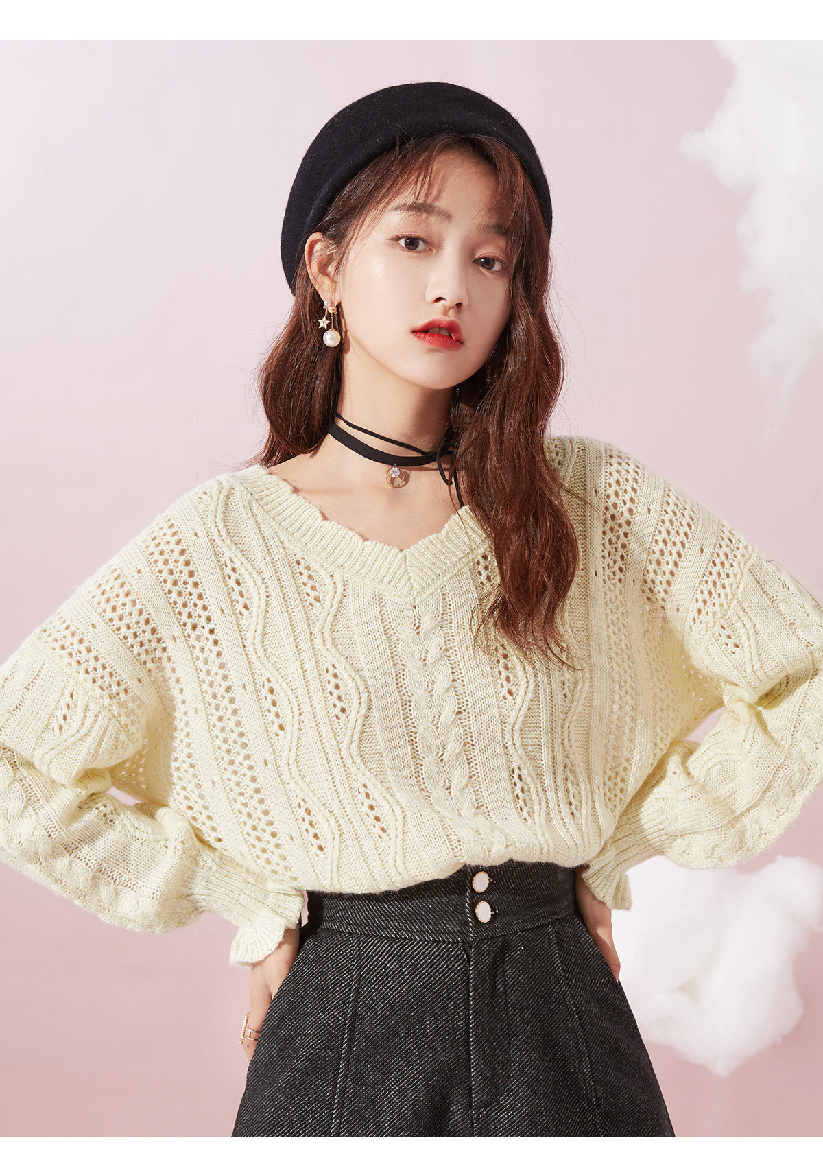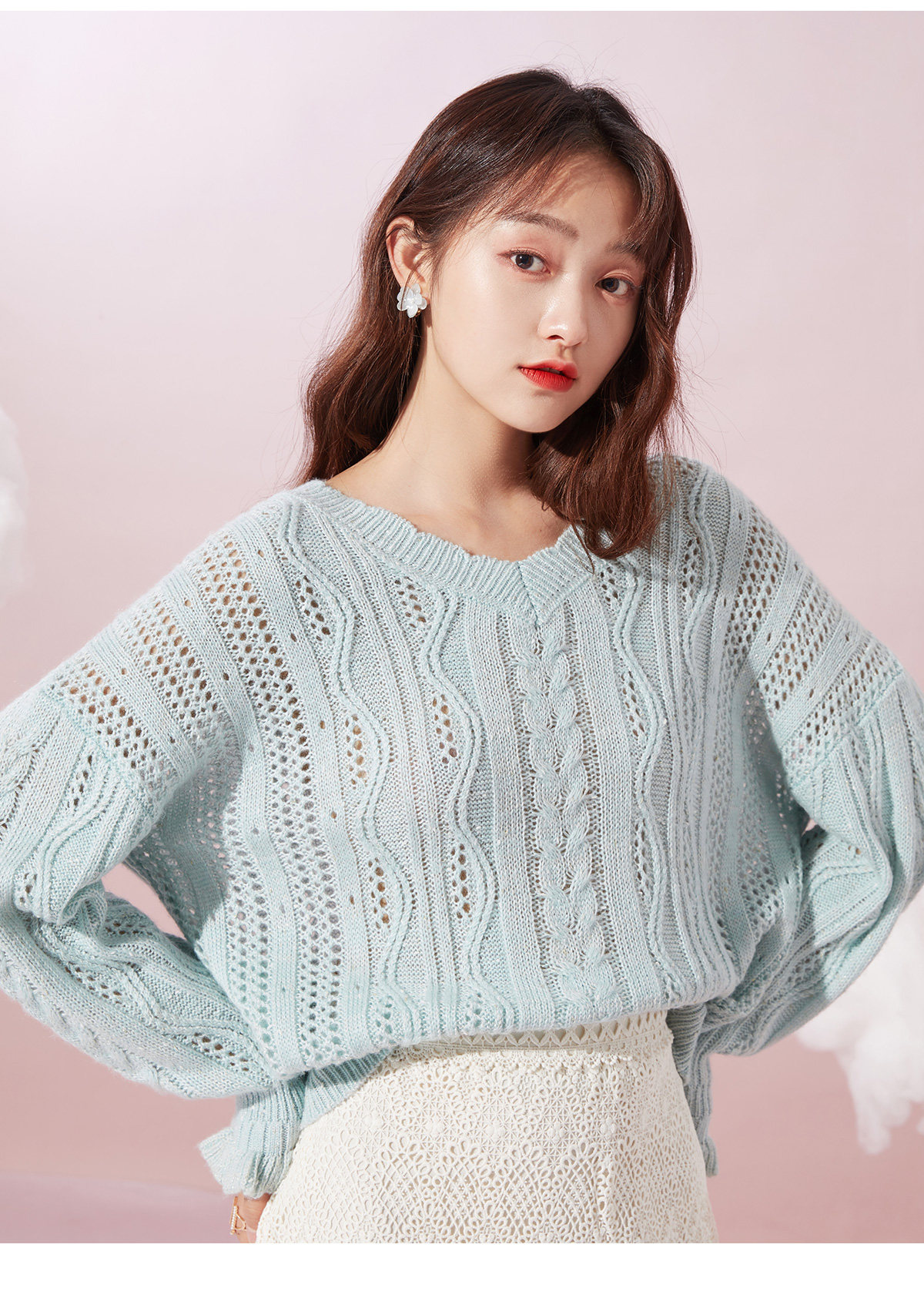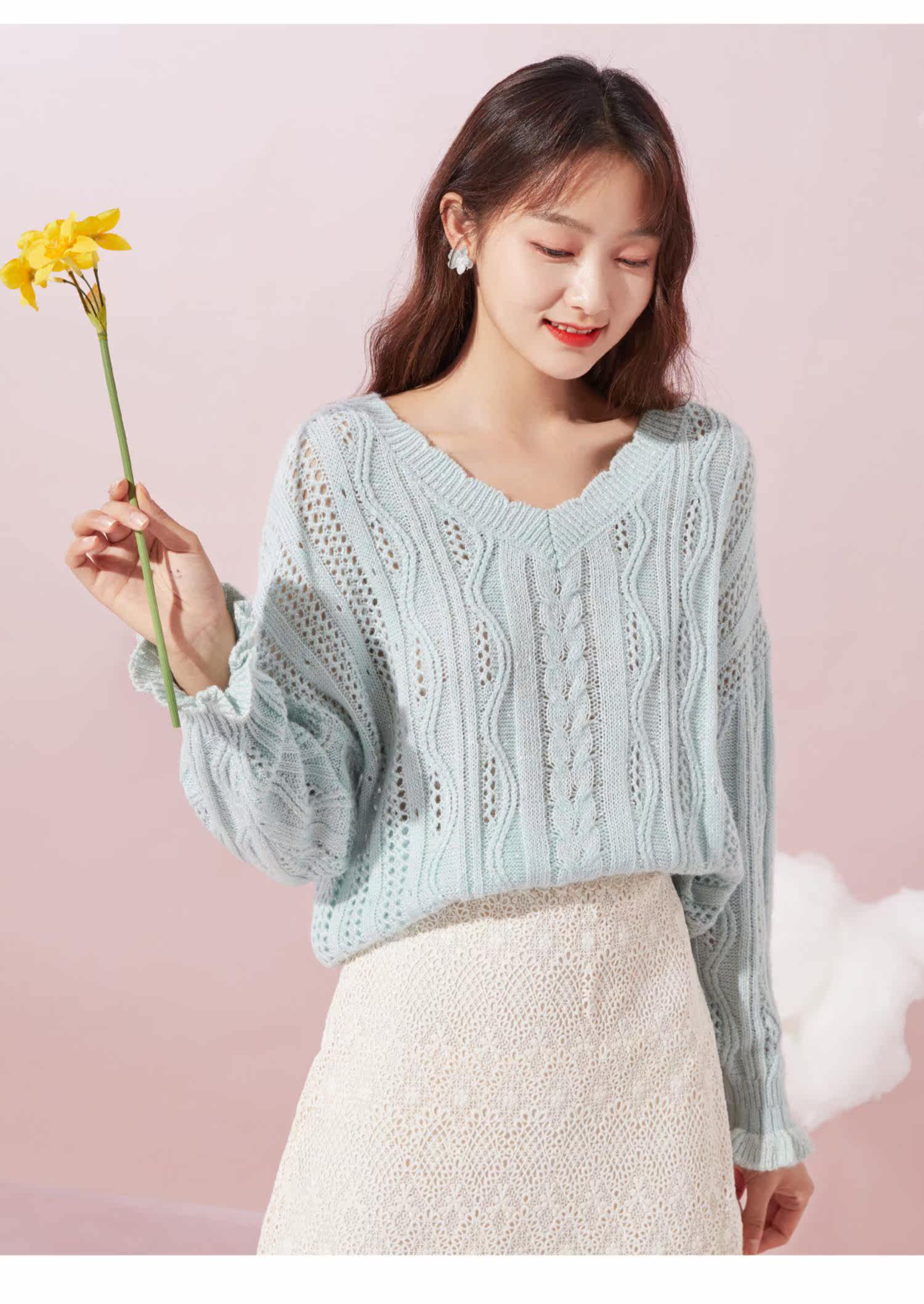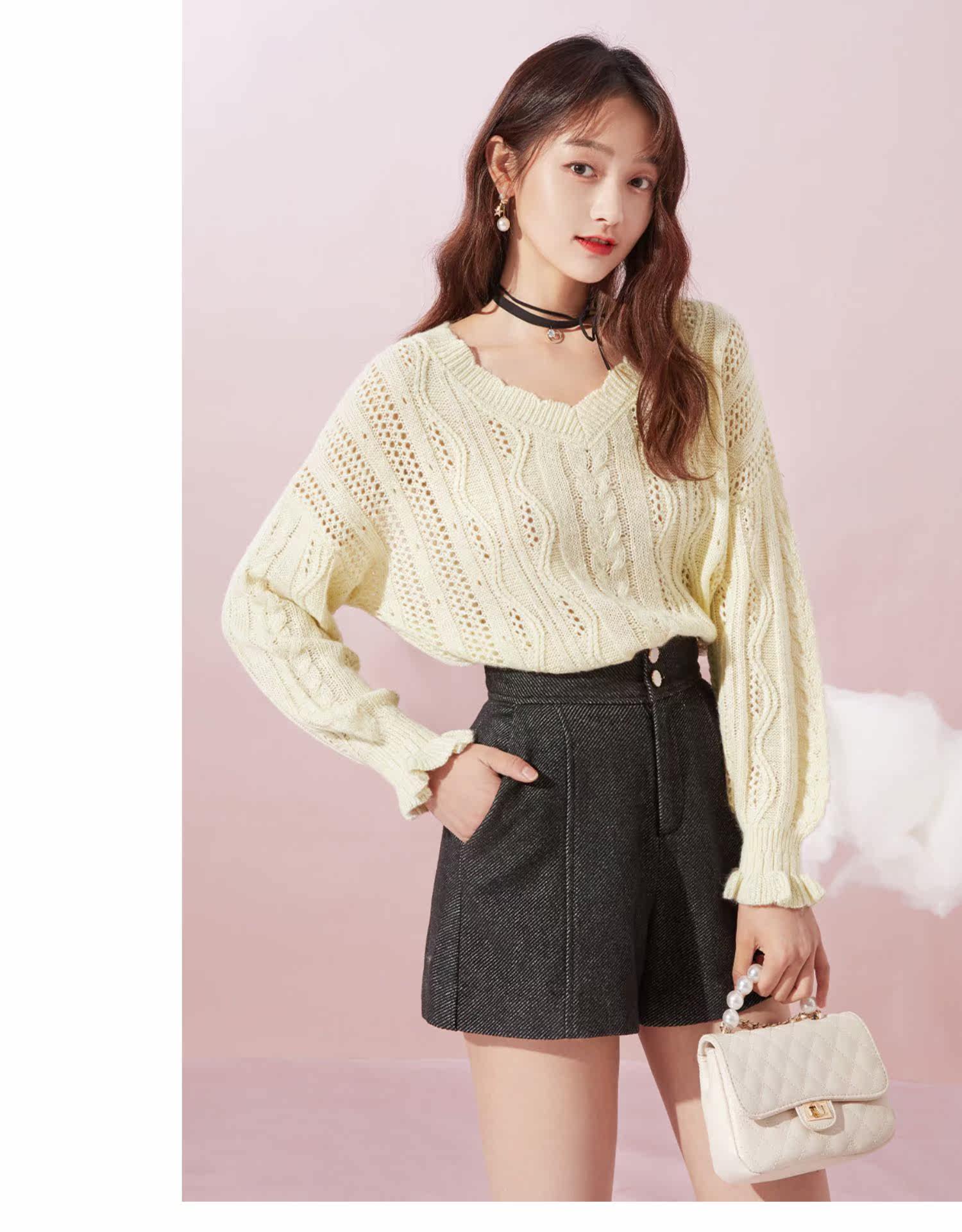 Осенний трикотажный свитер, V-образный вырез, оверсайз