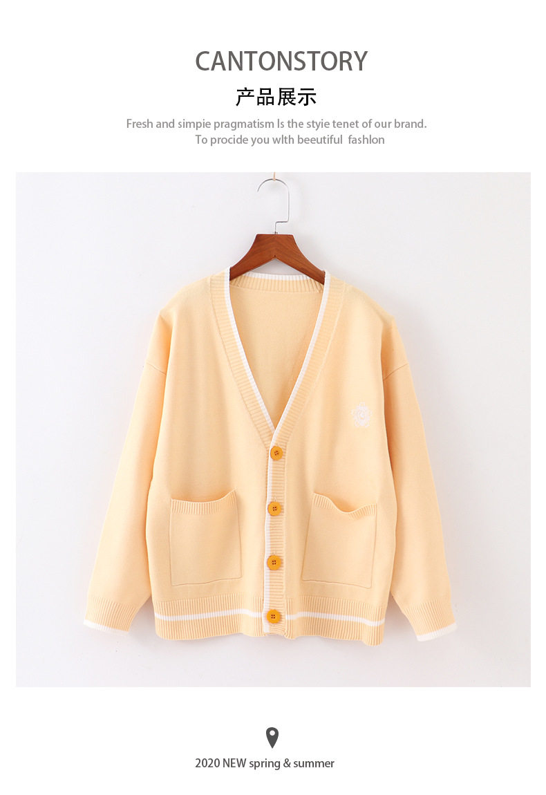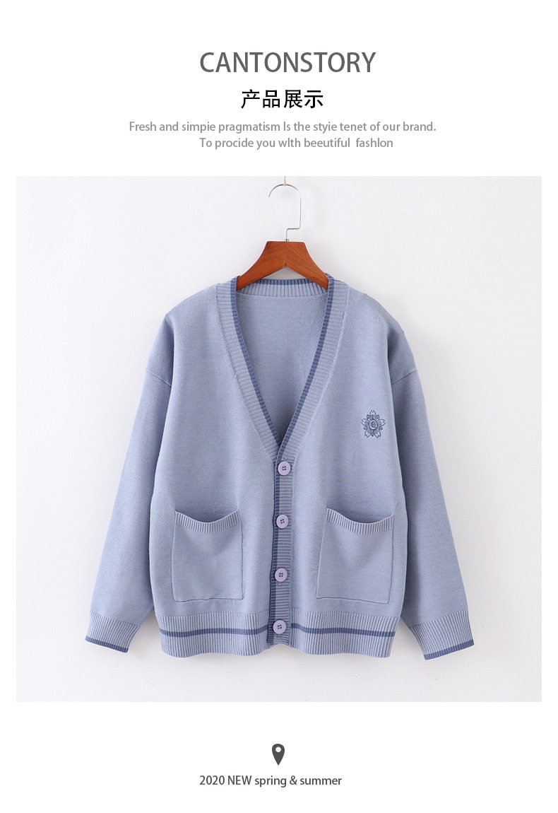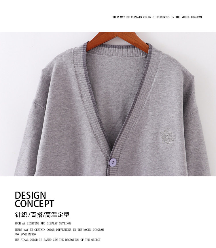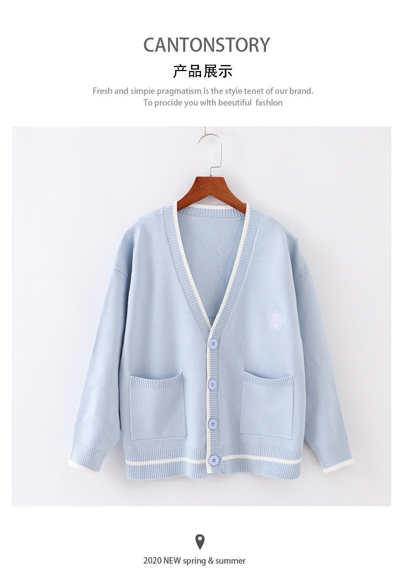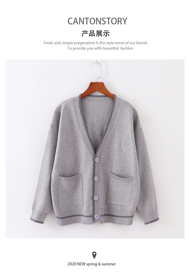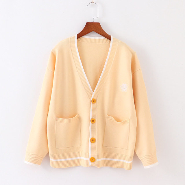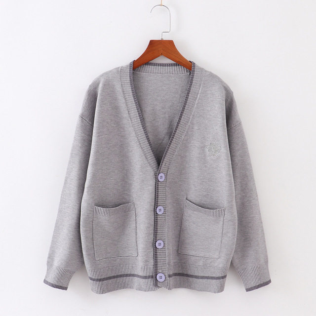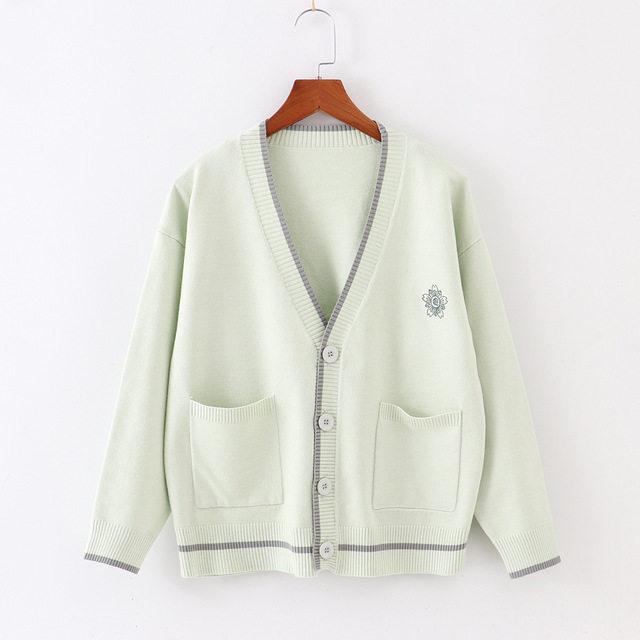 Японская студенческая юбка в складку, свитер, трикотажная куртка, демисезонный хлопковый кардиган, с вышивкой, оверсайз