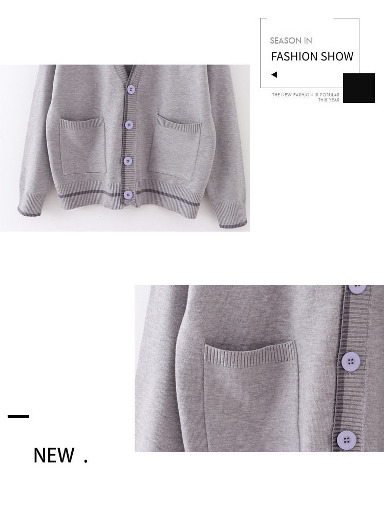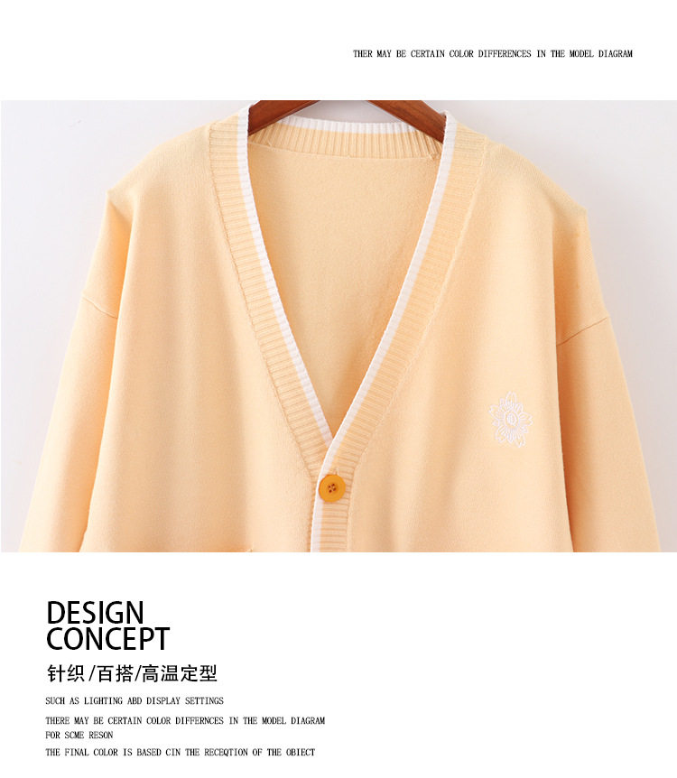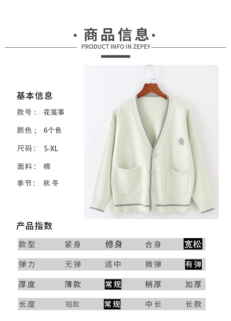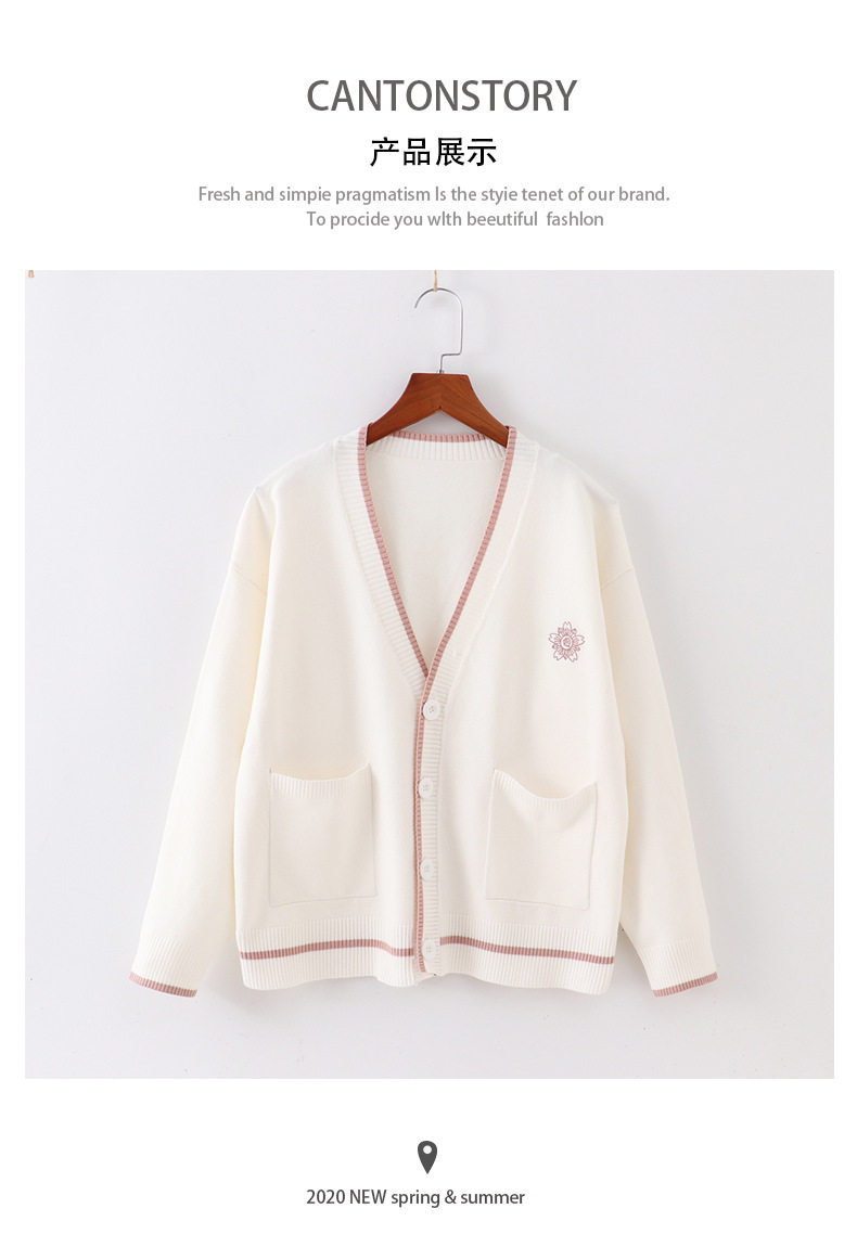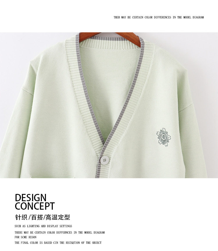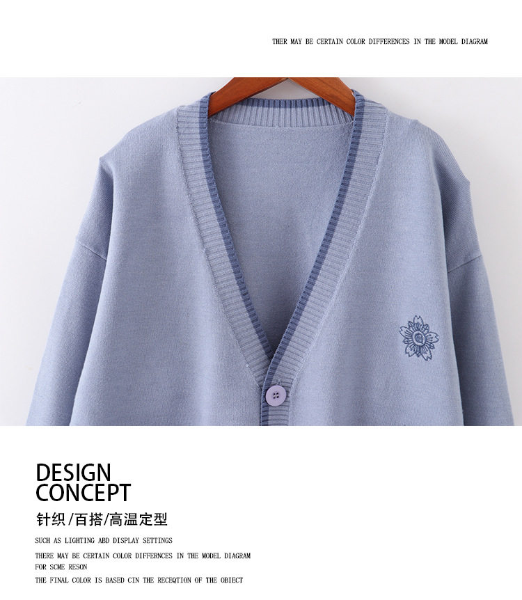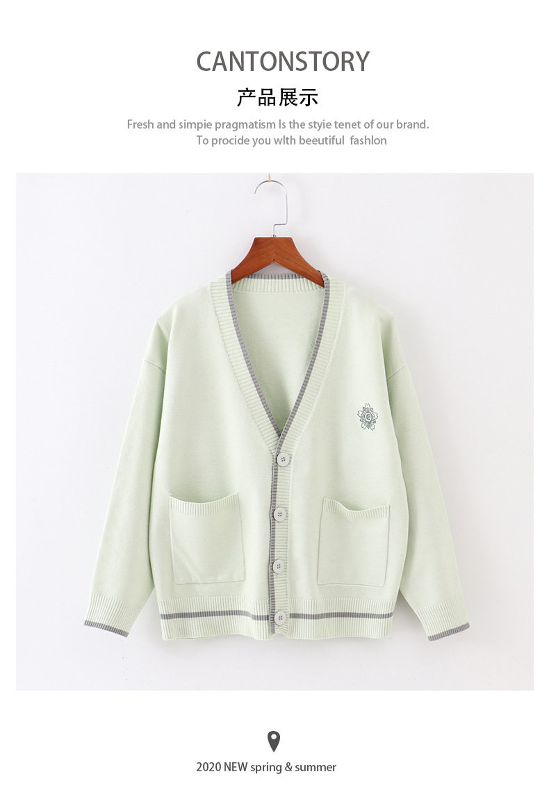 Японская студенческая юбка в складку, свитер, трикотажная куртка, демисезонный хлопковый кардиган, с вышивкой, оверсайз