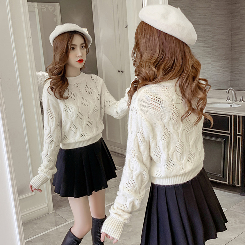 Трикотажный свитер, утепленный лонгслив, короткие нарукавники, коллекция 2021, в западном стиле, в корейском стиле
