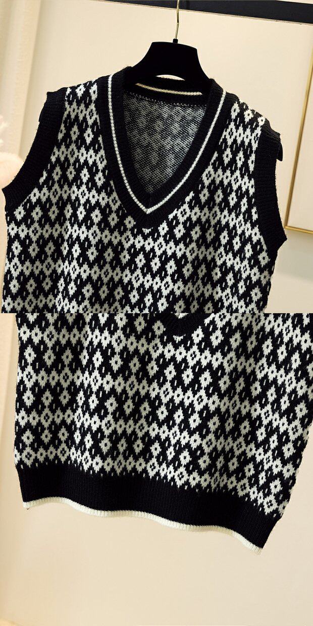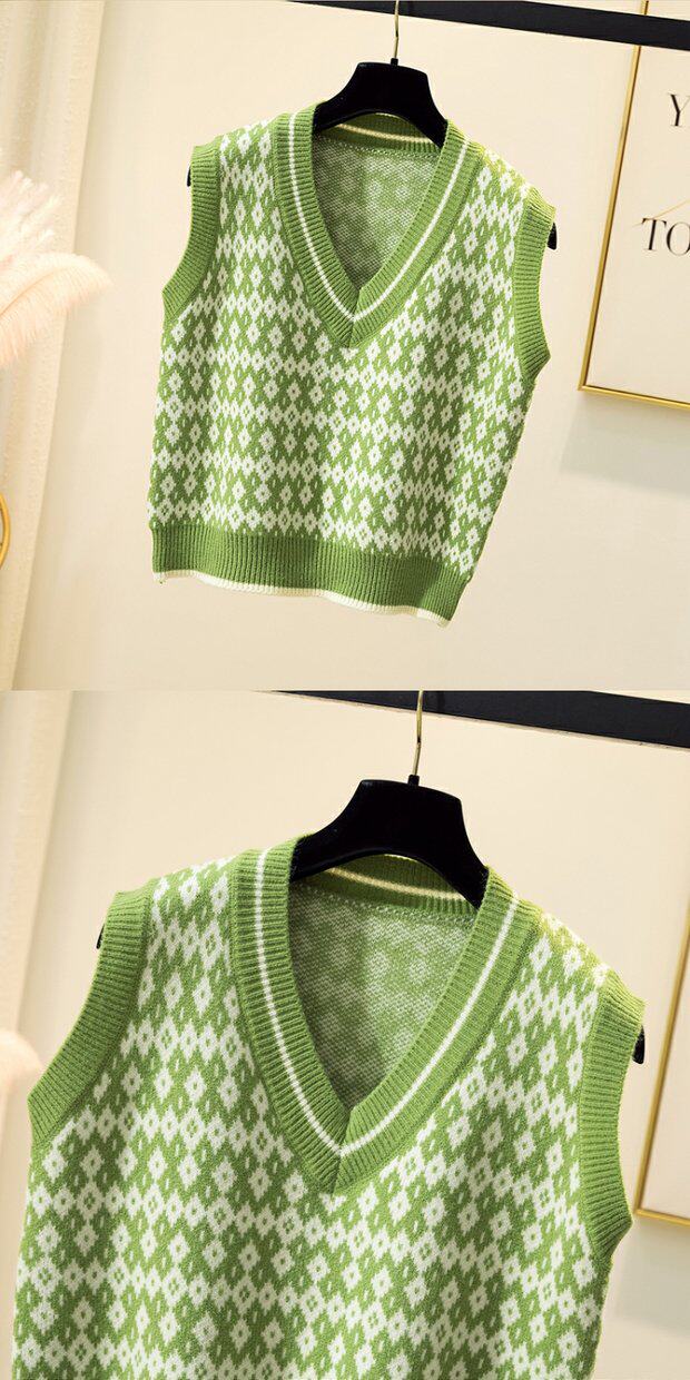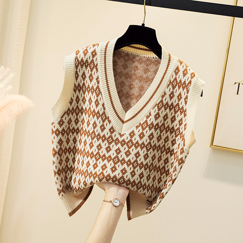 Трикотажный демисезонный жилет с ромбовидным узором, ретро свитер без рукавов, майка топ, V-образный вырез