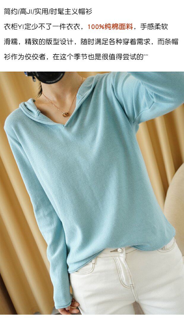 Осенняя хлопковая трикотажная толстовка с капюшоном, свитер, лонгслив, балахон, оверсайз