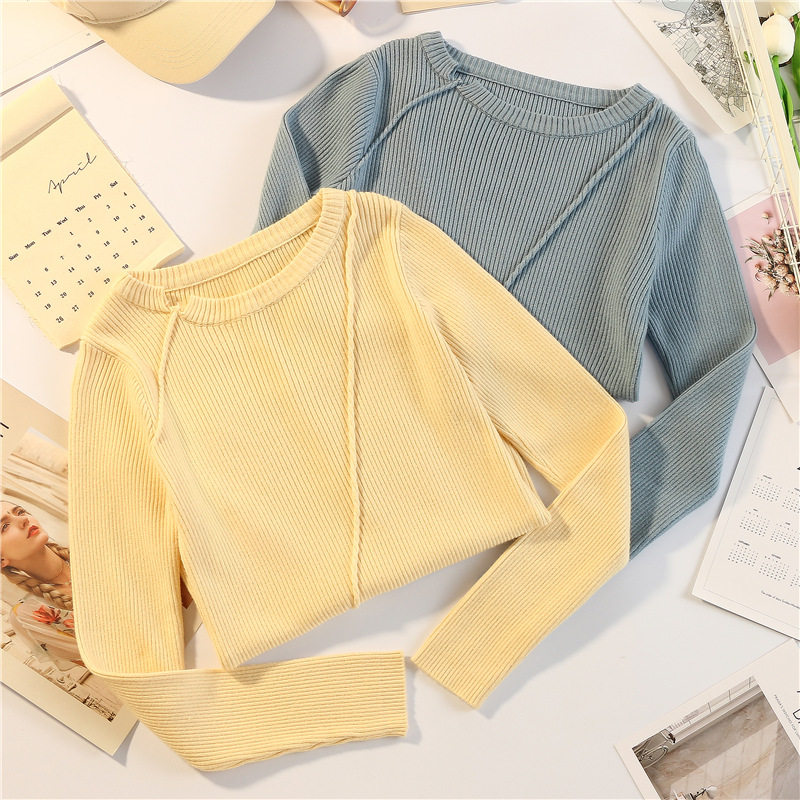 Демисезонный базовый свитер, тонкий короткий лонгслив, облегающий крой, в обтяжку