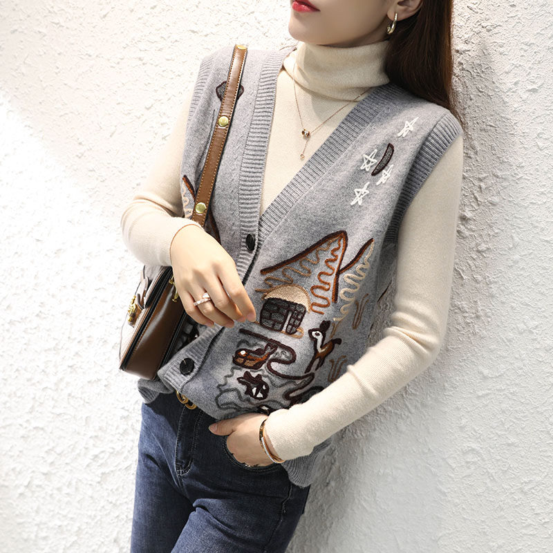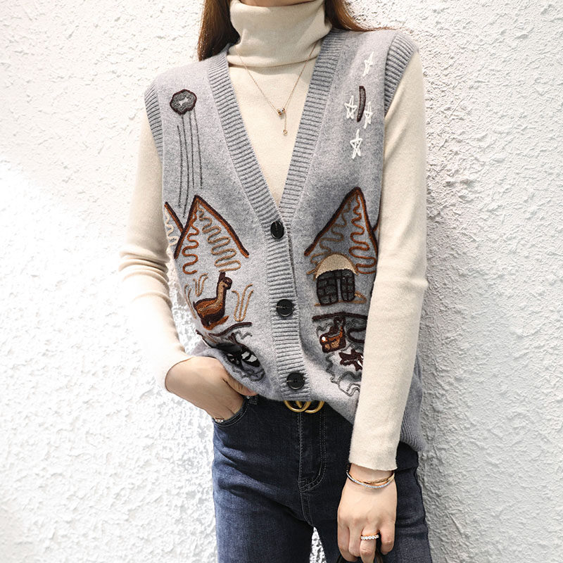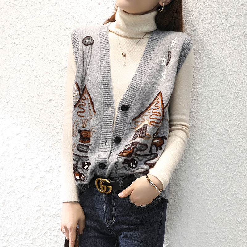 Осенний кашемировый свитер, трикотажный кардиган, жилет, майка топ, куртка, европейский стиль, коллекция 2021, с вышивкой