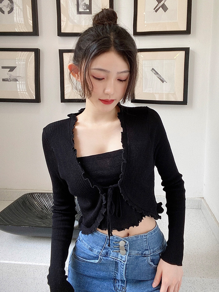 Весенний сексуальный тонкий лонгслив, комплект, трикотажный кардиган, свитер, V-образный вырез, защита от солнца