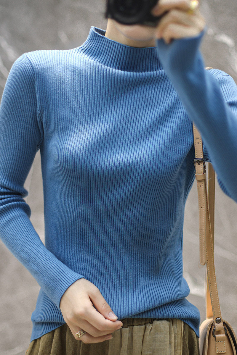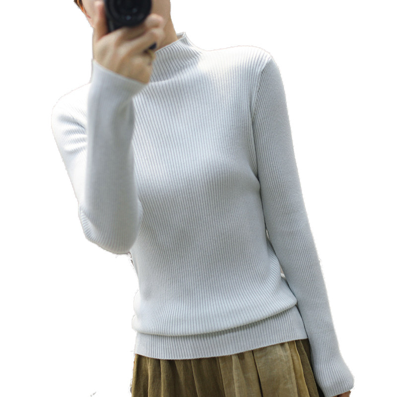 Демисезонный кашемировый свитер, трикотажный лонгслив, высокий воротник