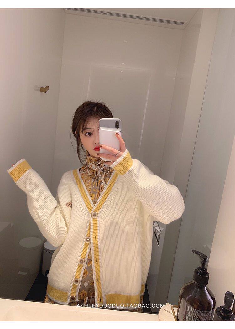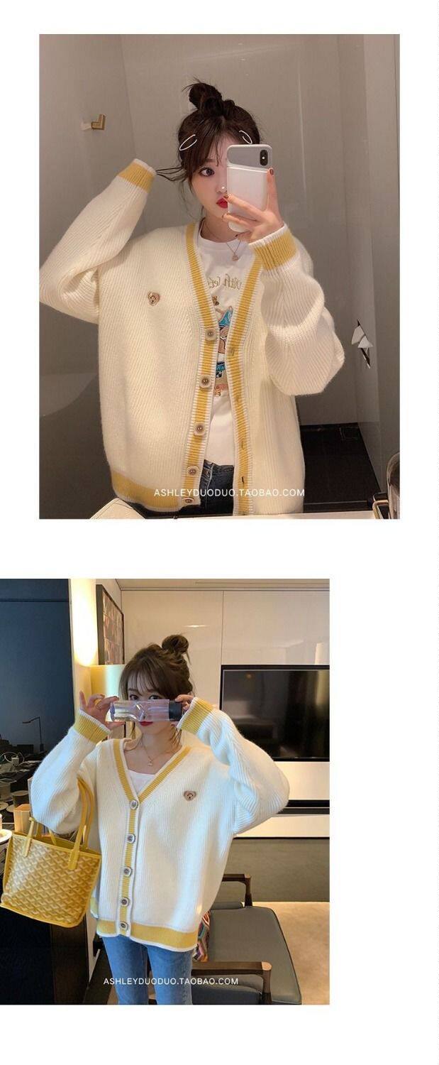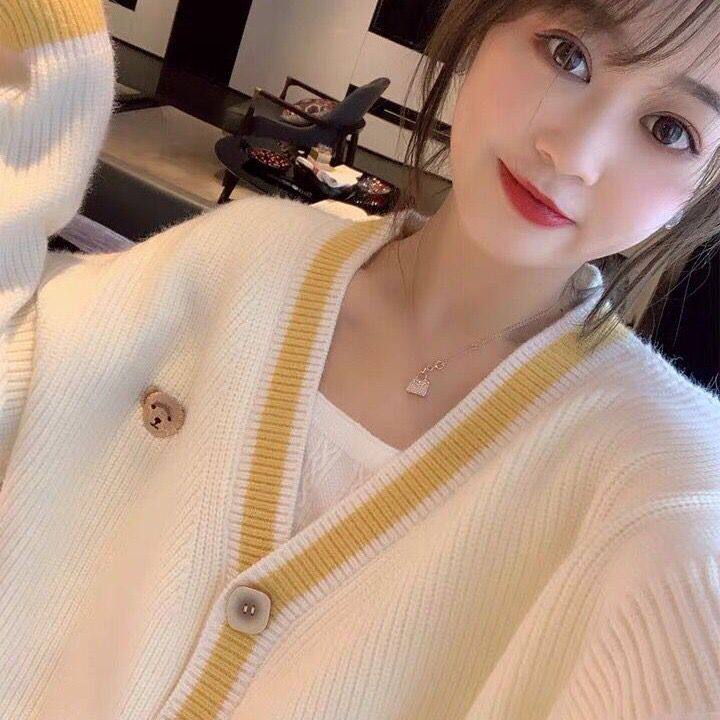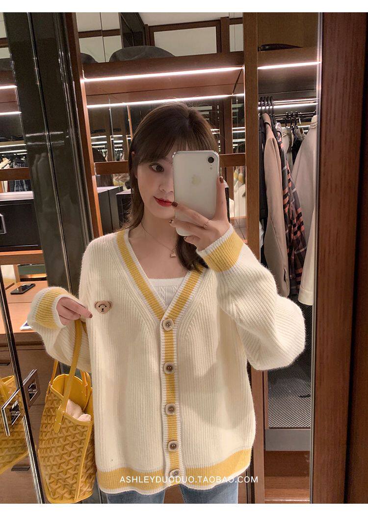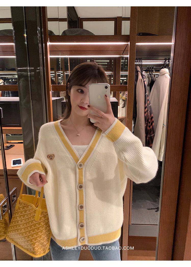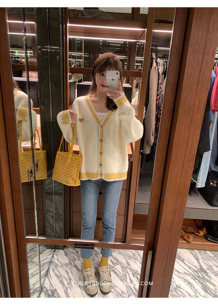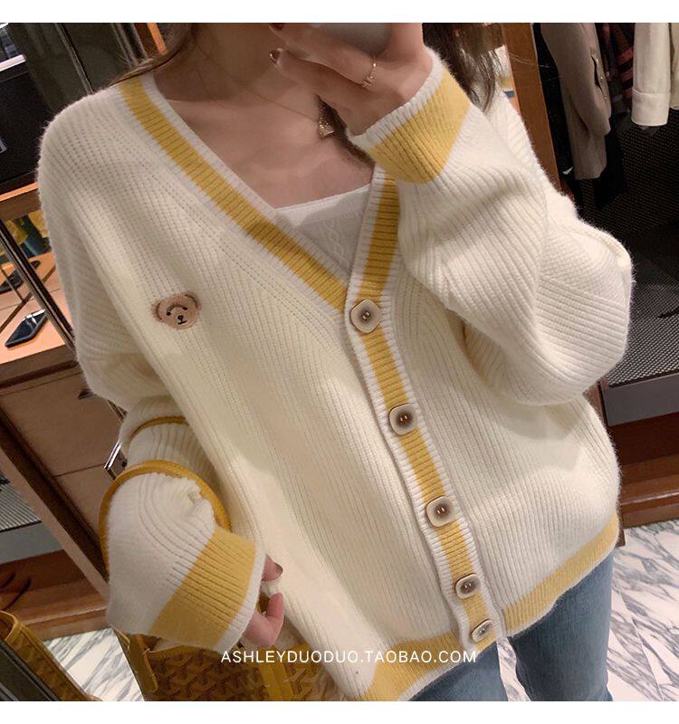Осенний демисезонный свитер, трикотажный кардиган, популярно в интернете, в корейском стиле, V-образный вырез