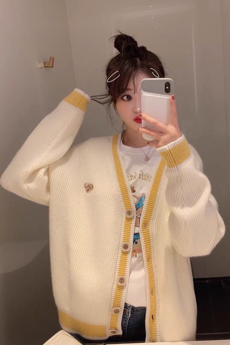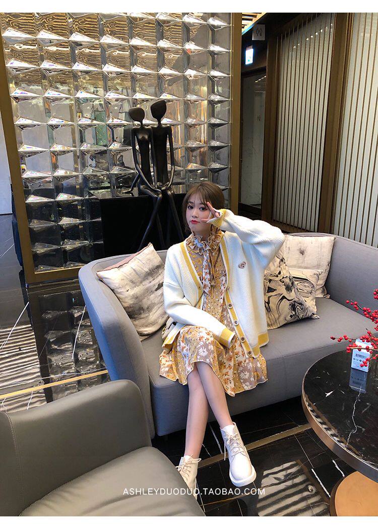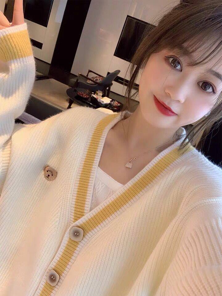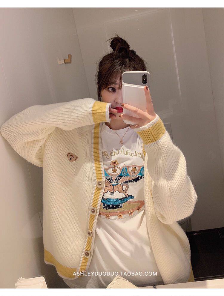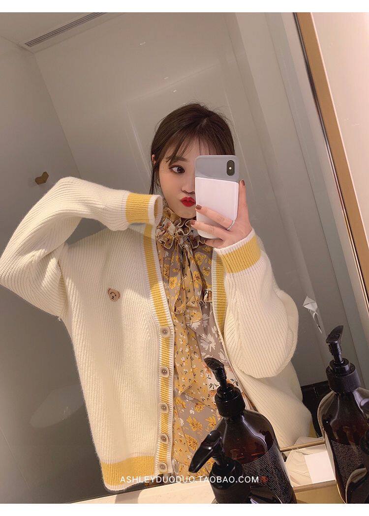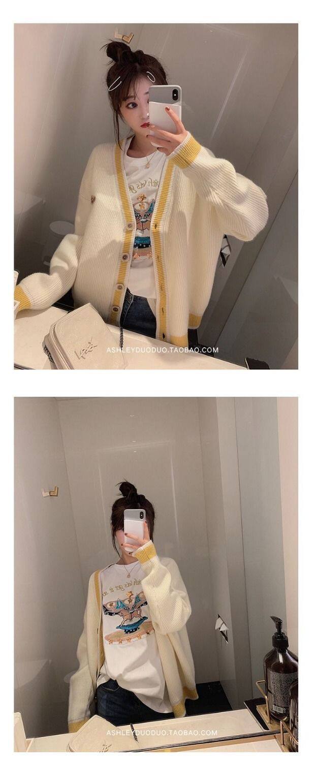 Осенний демисезонный свитер, трикотажный кардиган, популярно в интернете, в корейском стиле, V-образный вырез
