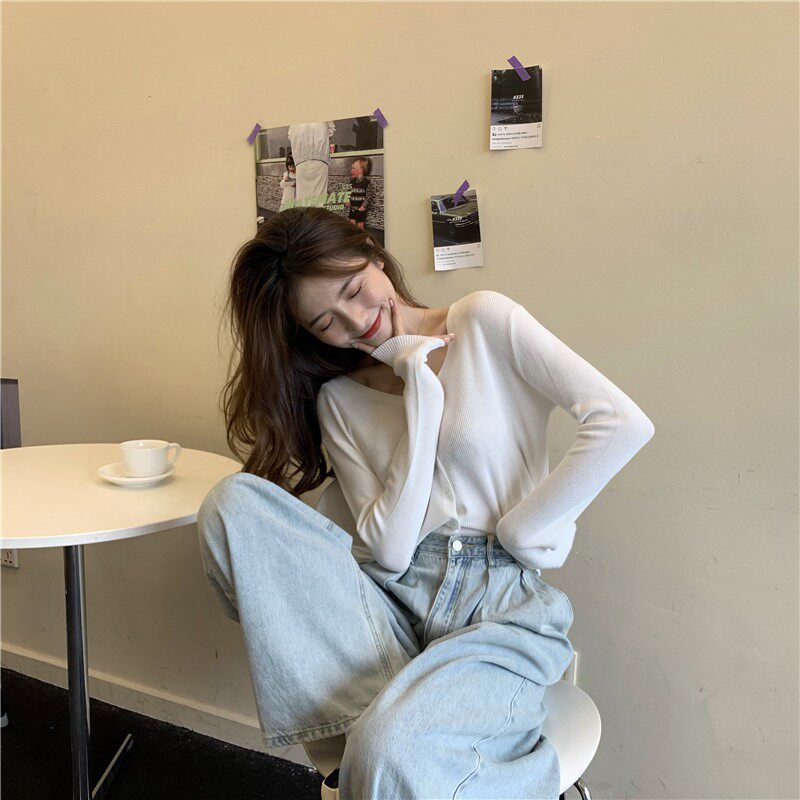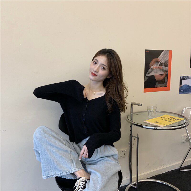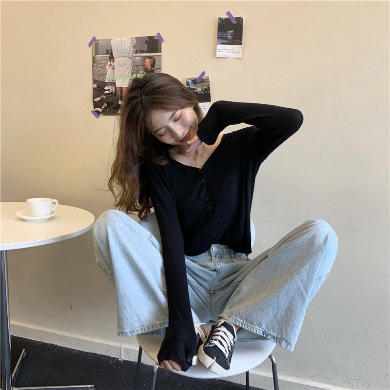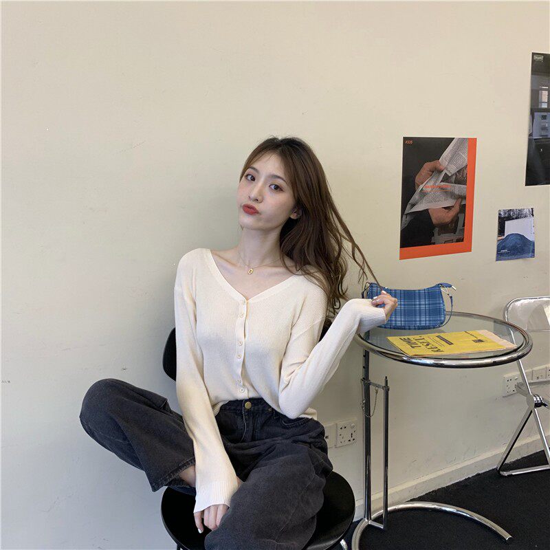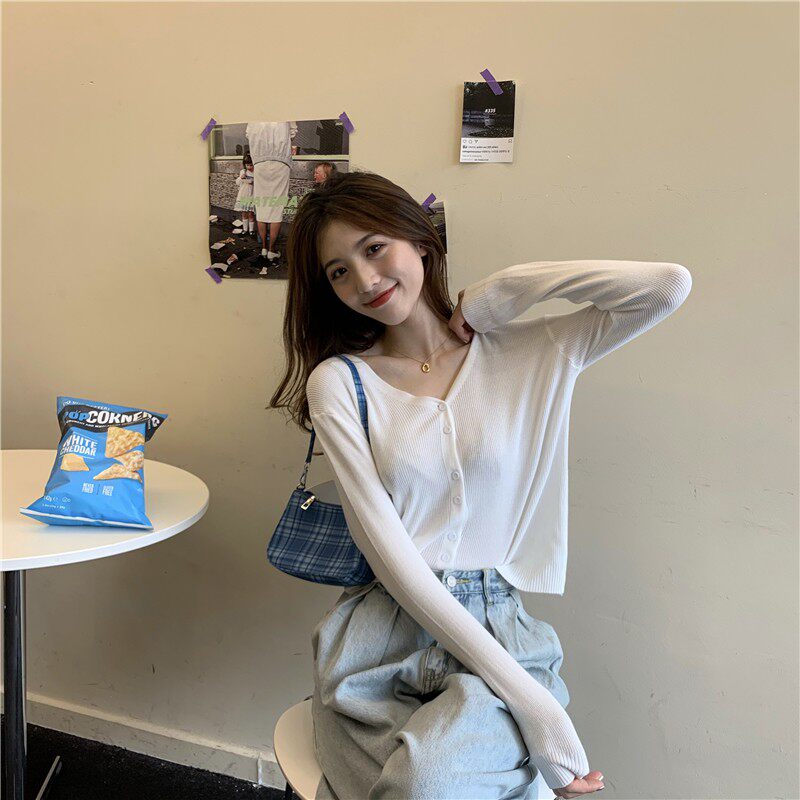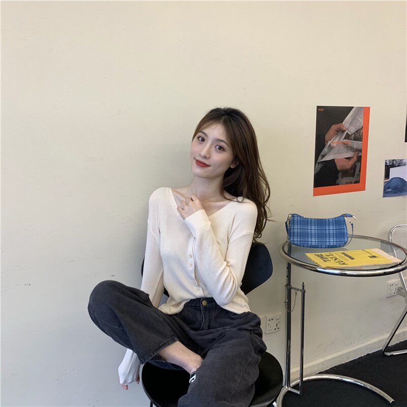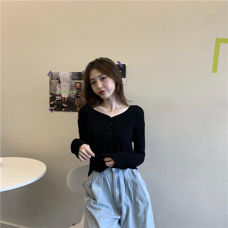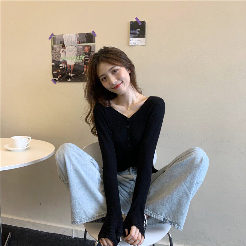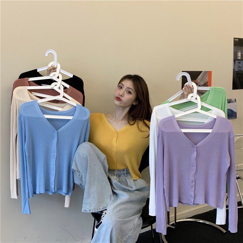 Тонкий однотонный кардиган, осенний лонгслив, свитер, 2020, в корейском стиле